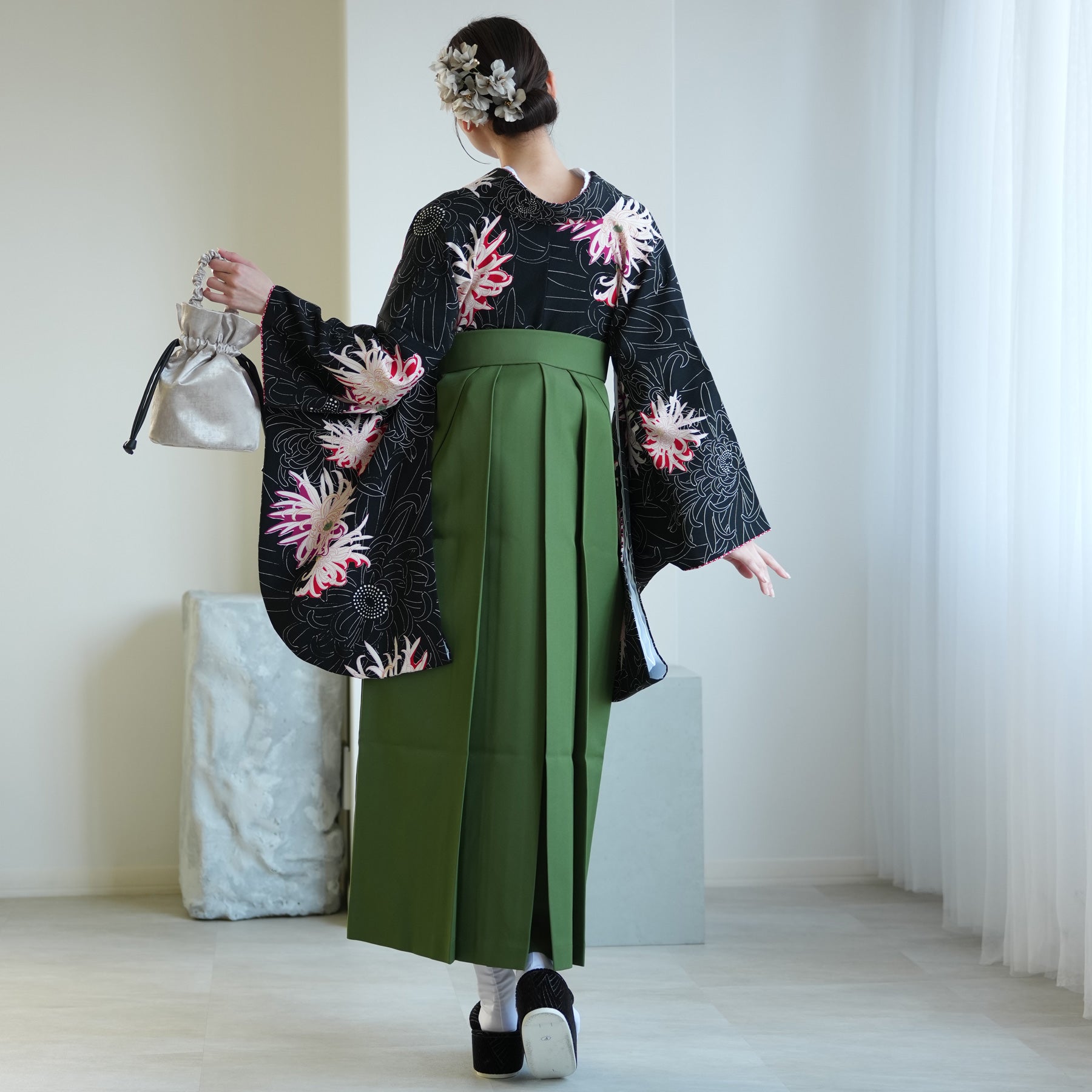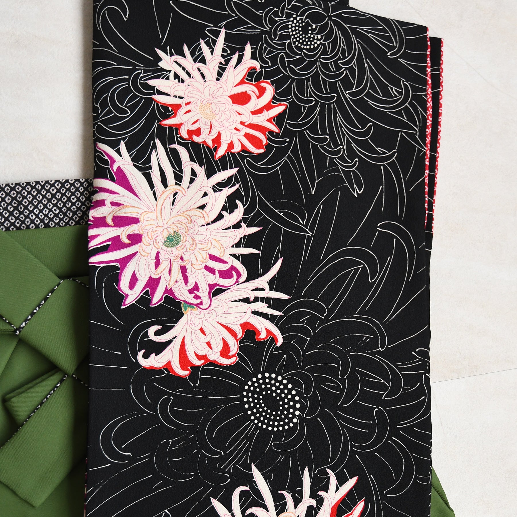 黒をベースに咲き誇る菊が大人っぽい印象。