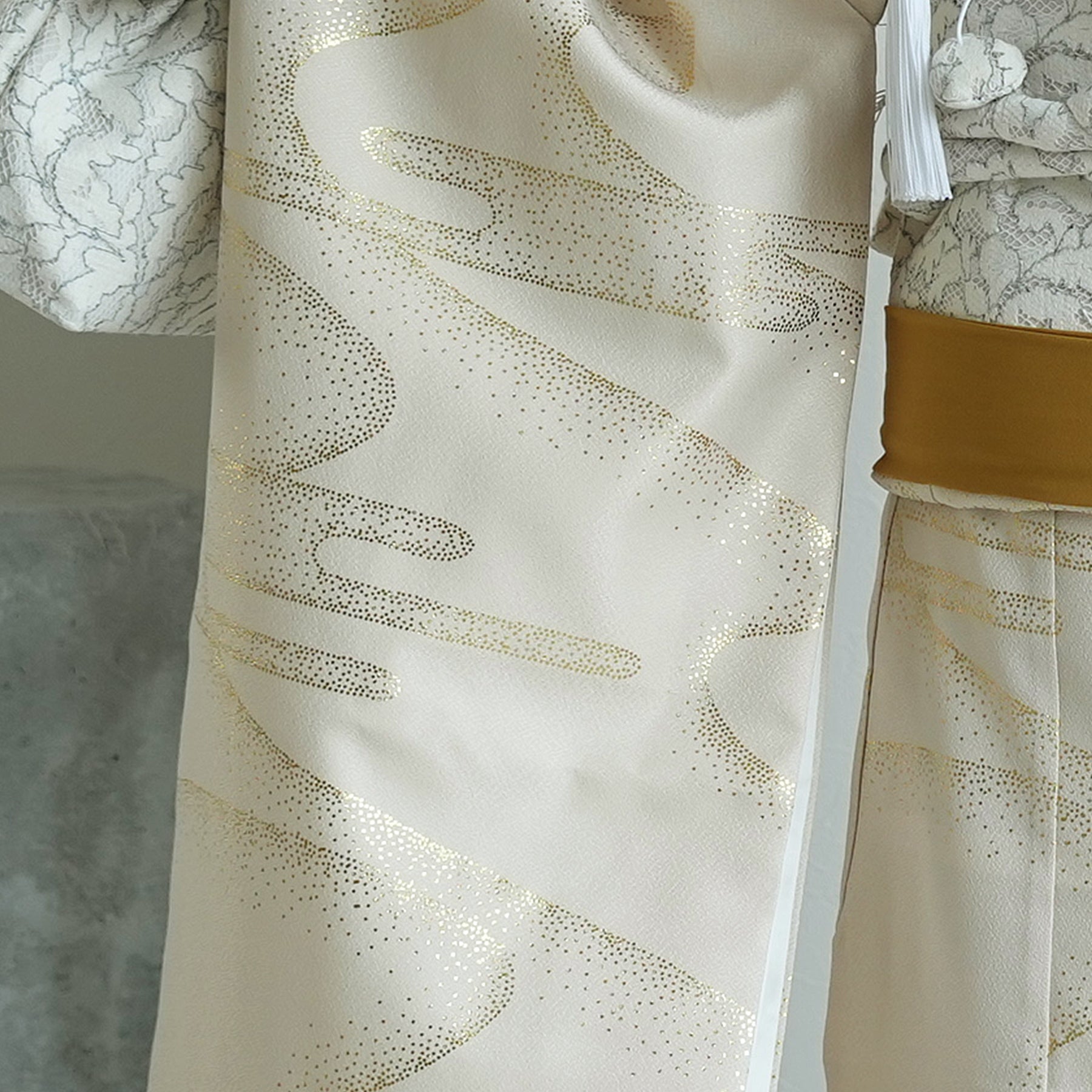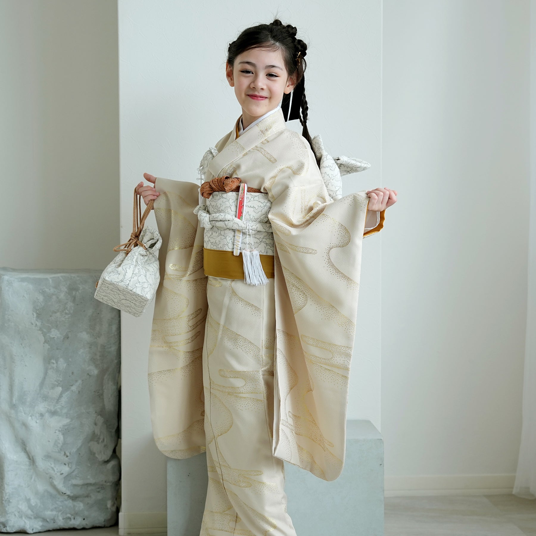 【七五三着物 7歳 女の子 着物セット】販売品 四つ身 ベージュ金彩・流水 ひよこ商店(6728614100)