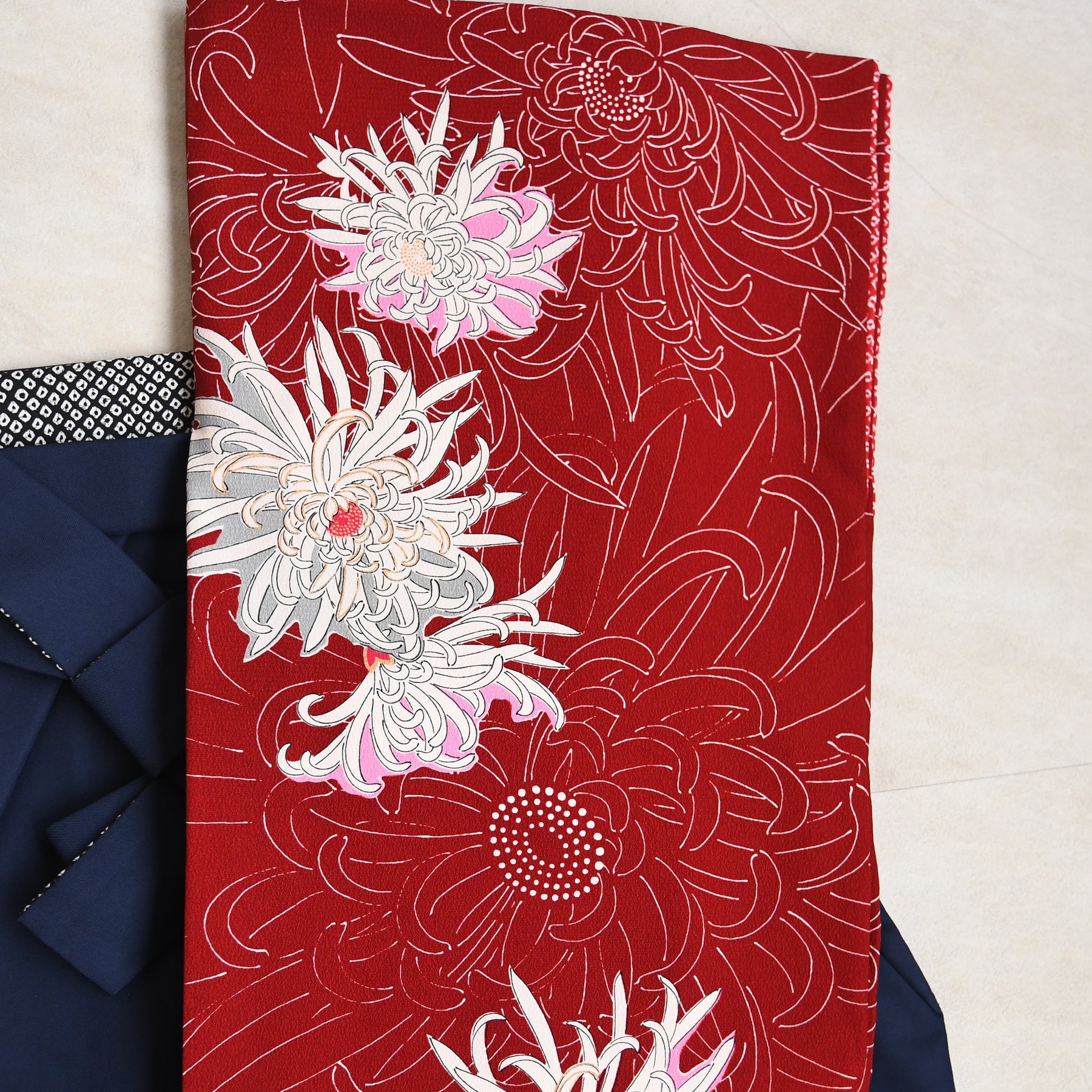 赤をベースに咲き誇る菊が大人っぽい印象。