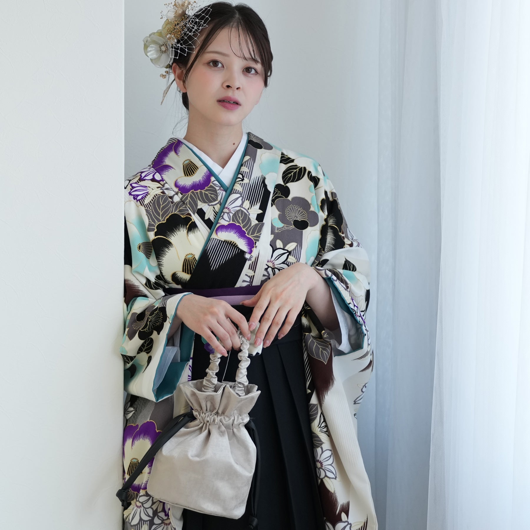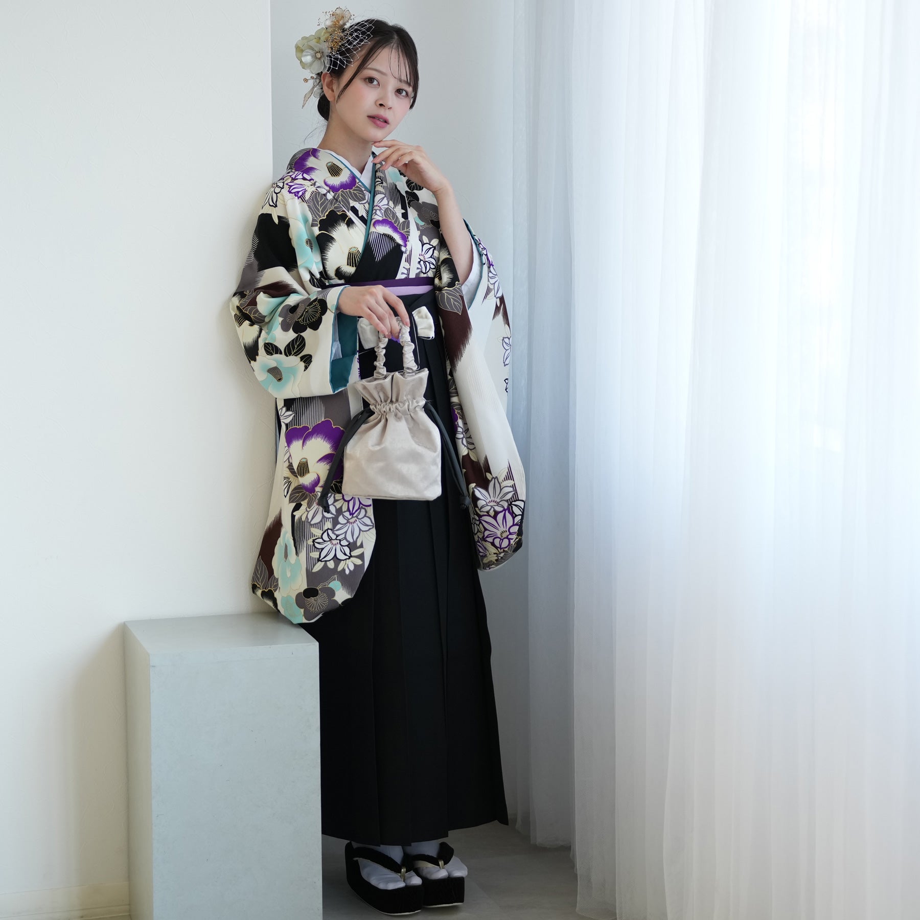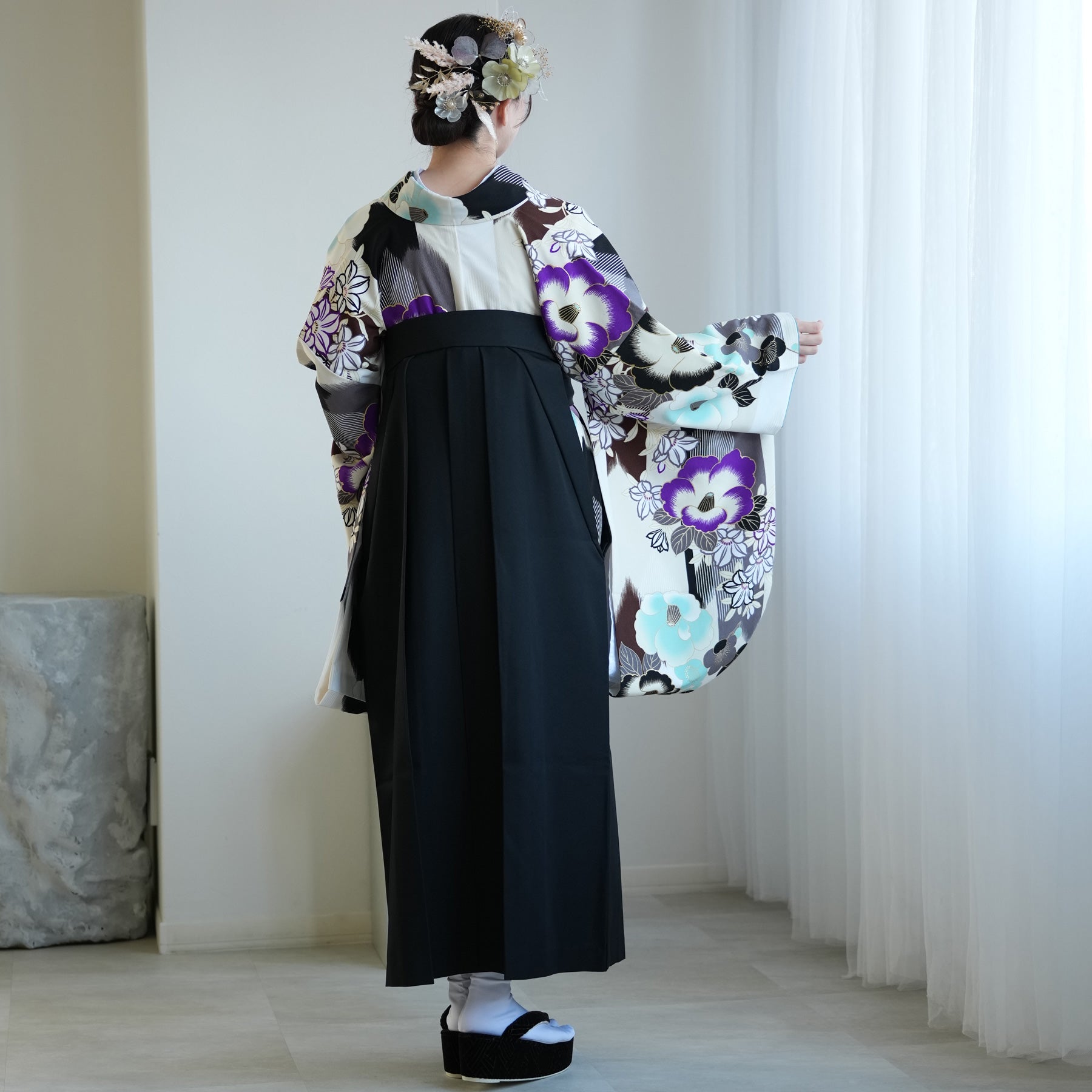 着物・袴・草履・バッグ・重ね襟(着物に縫い付済)・半巾帯・肌襦袢+長襦袢一体化インナー(白無地半襟付き)・前板・着付けベルト・ウエストベルト・腰ひも3本セット・伊達締め ・マジックベルト・衿芯・足袋(プレゼント)