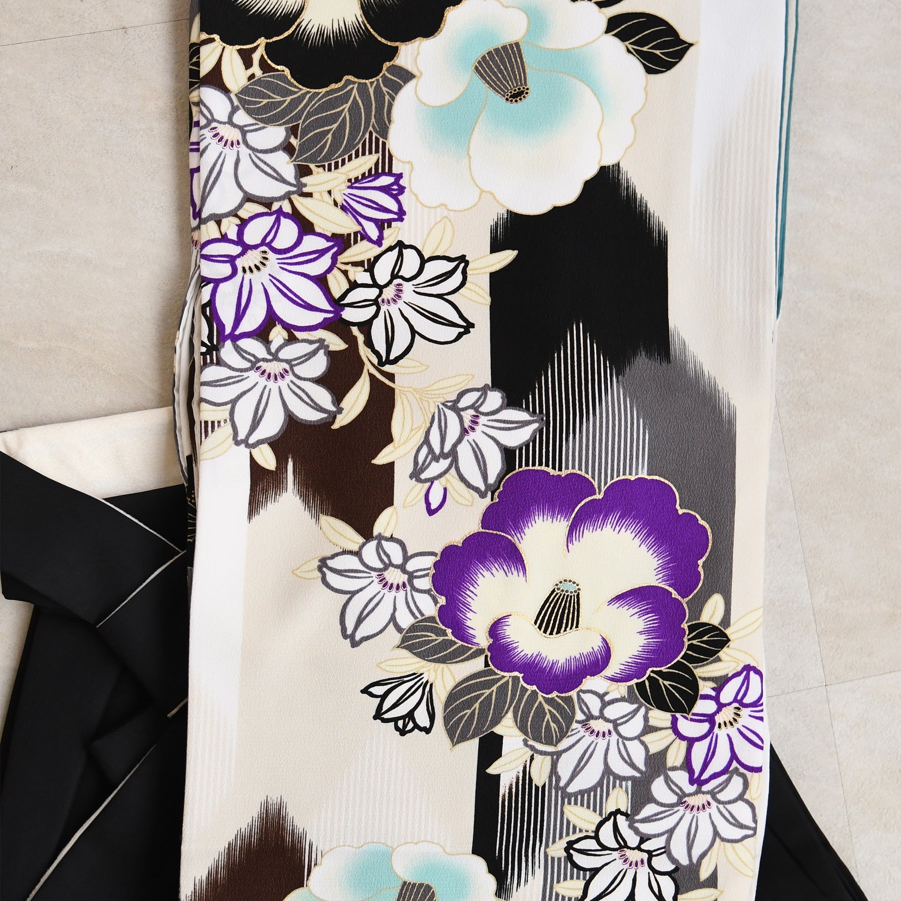 | [ 実寸サイズ ] | 着物:身丈 約108cm・袖丈 約76cm・裄丈 約68cm 袴丈91cm・95cm・99cm 足袋・草履 ワンサイズ(フリーサイズ) ※約23cm-24cm前後に対応 ※ソックスタイプストレッチ足袋 |