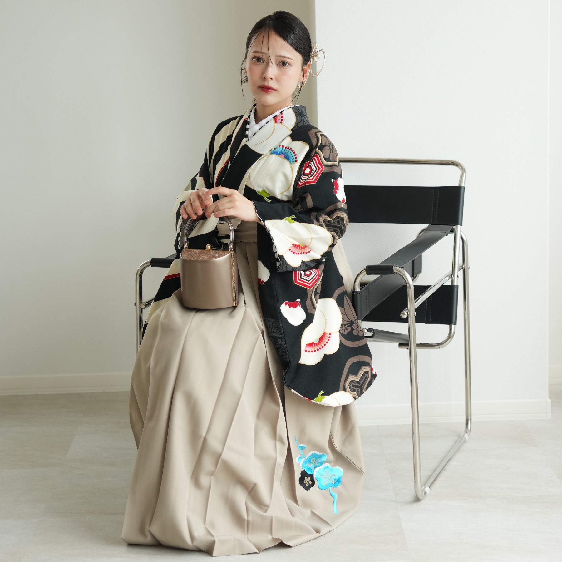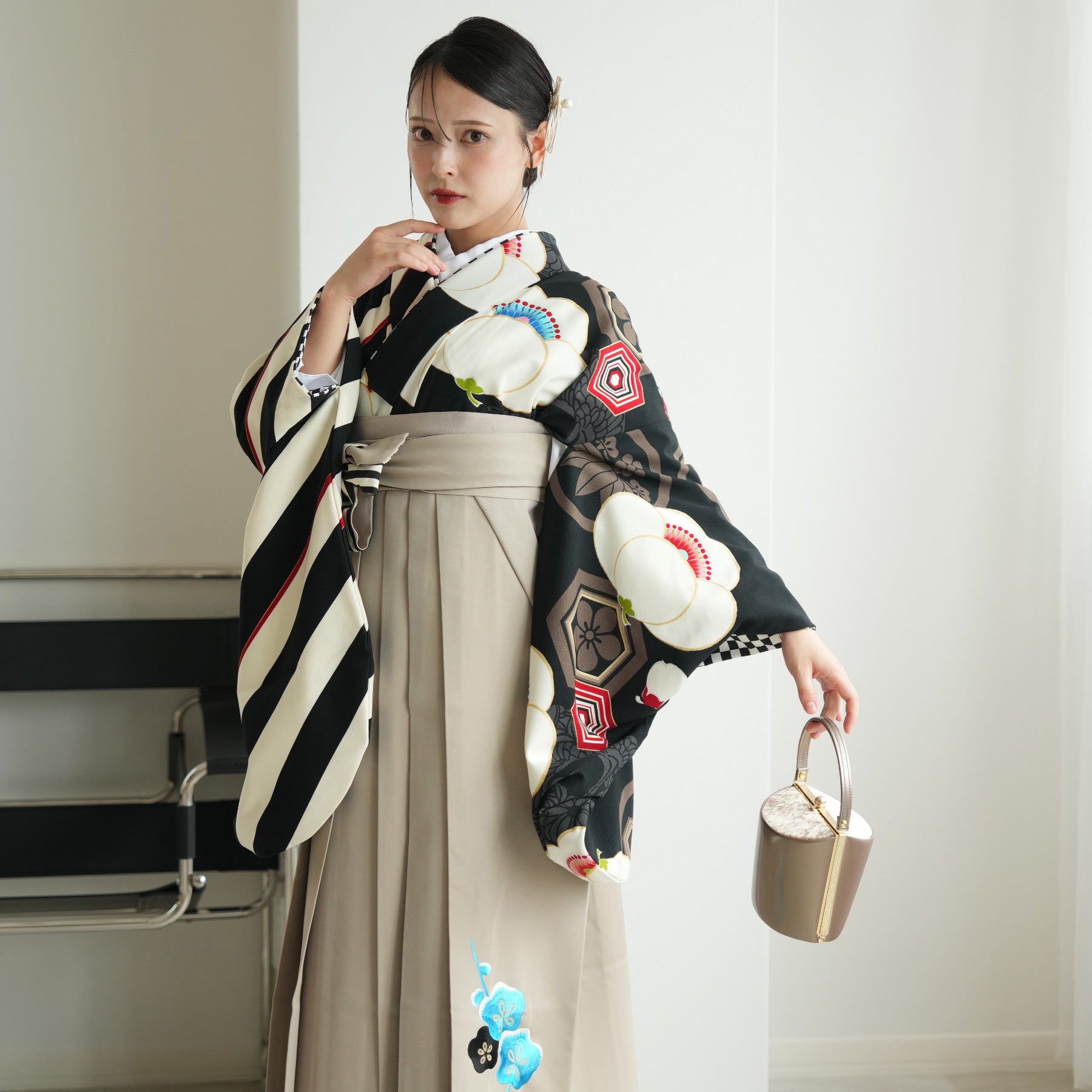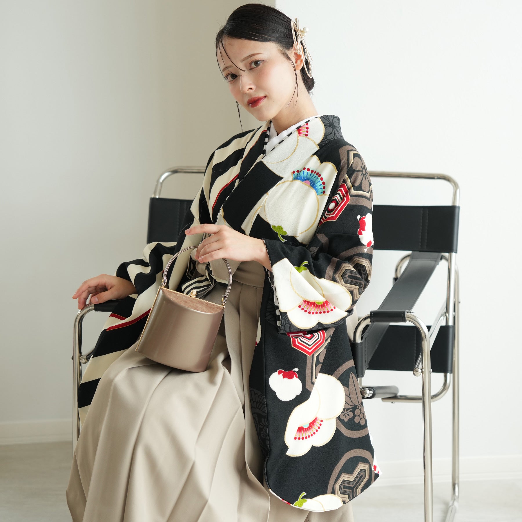 着物・袴・草履・バッグ・重ね襟(着物に縫い付済)・半巾帯・肌襦袢+長襦袢一体化インナー(白無地半襟付き)・前板・着付けベルト・ウエストベルト・腰ひも3本セット・伊達締め ・マジックベルト・衿芯・足袋(プレゼント)