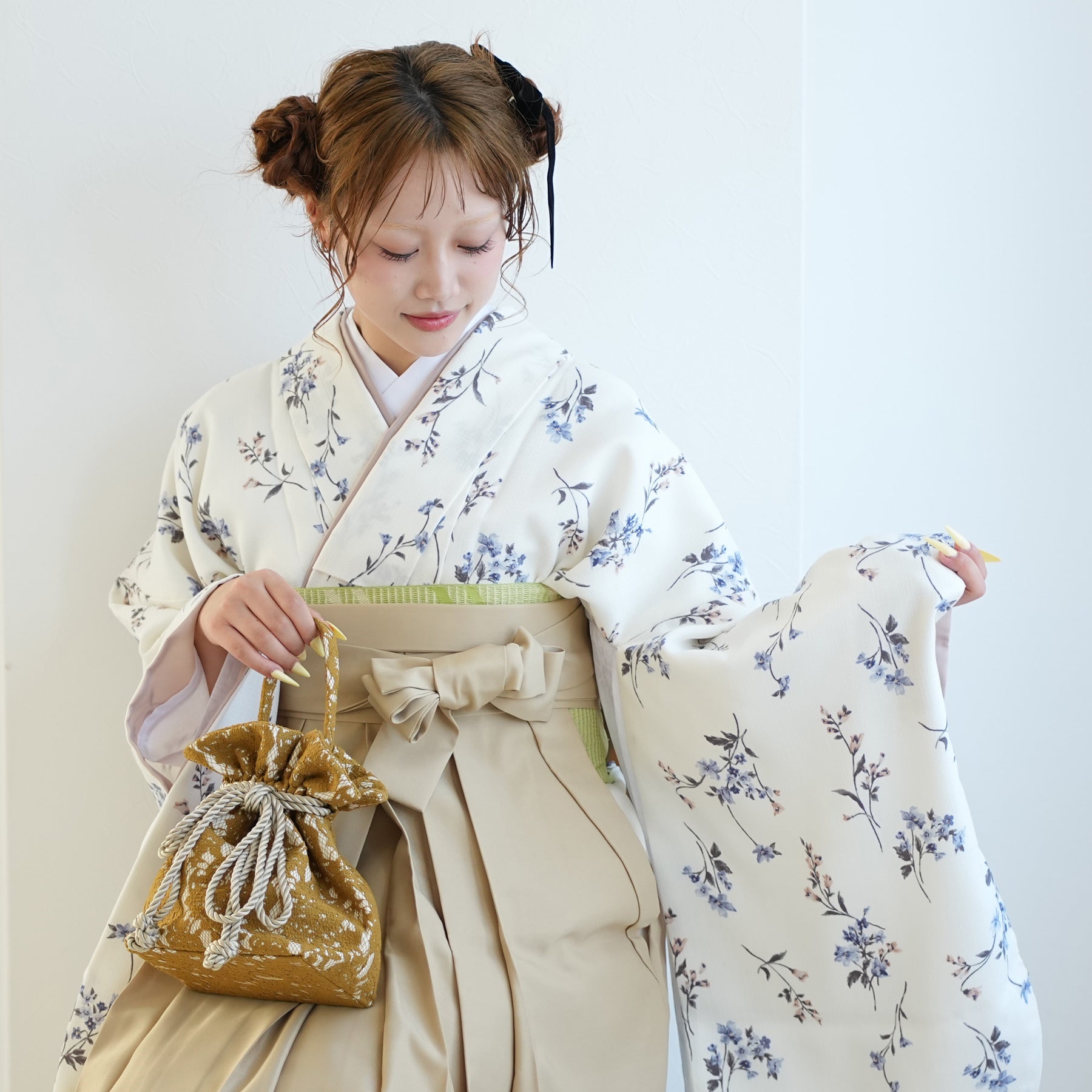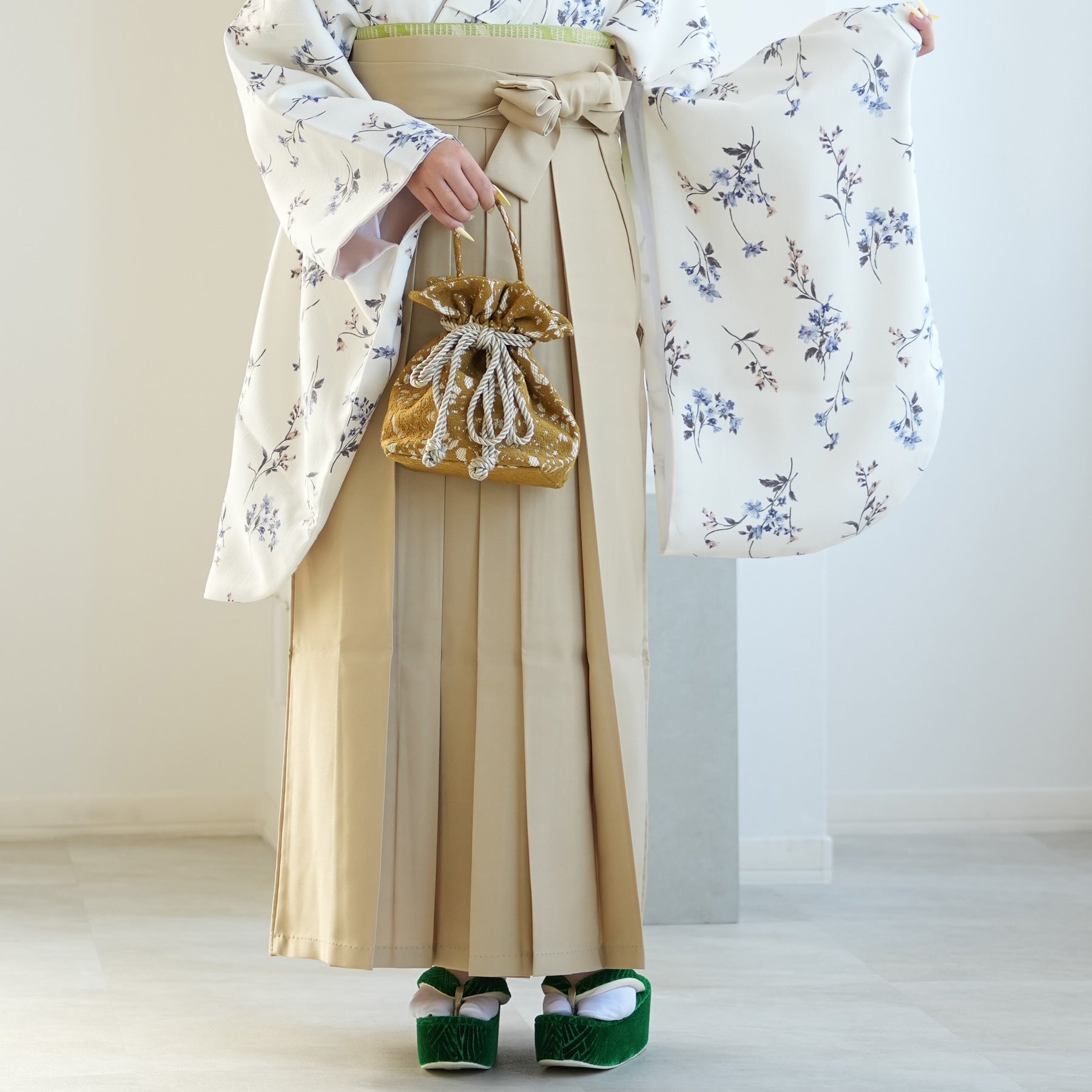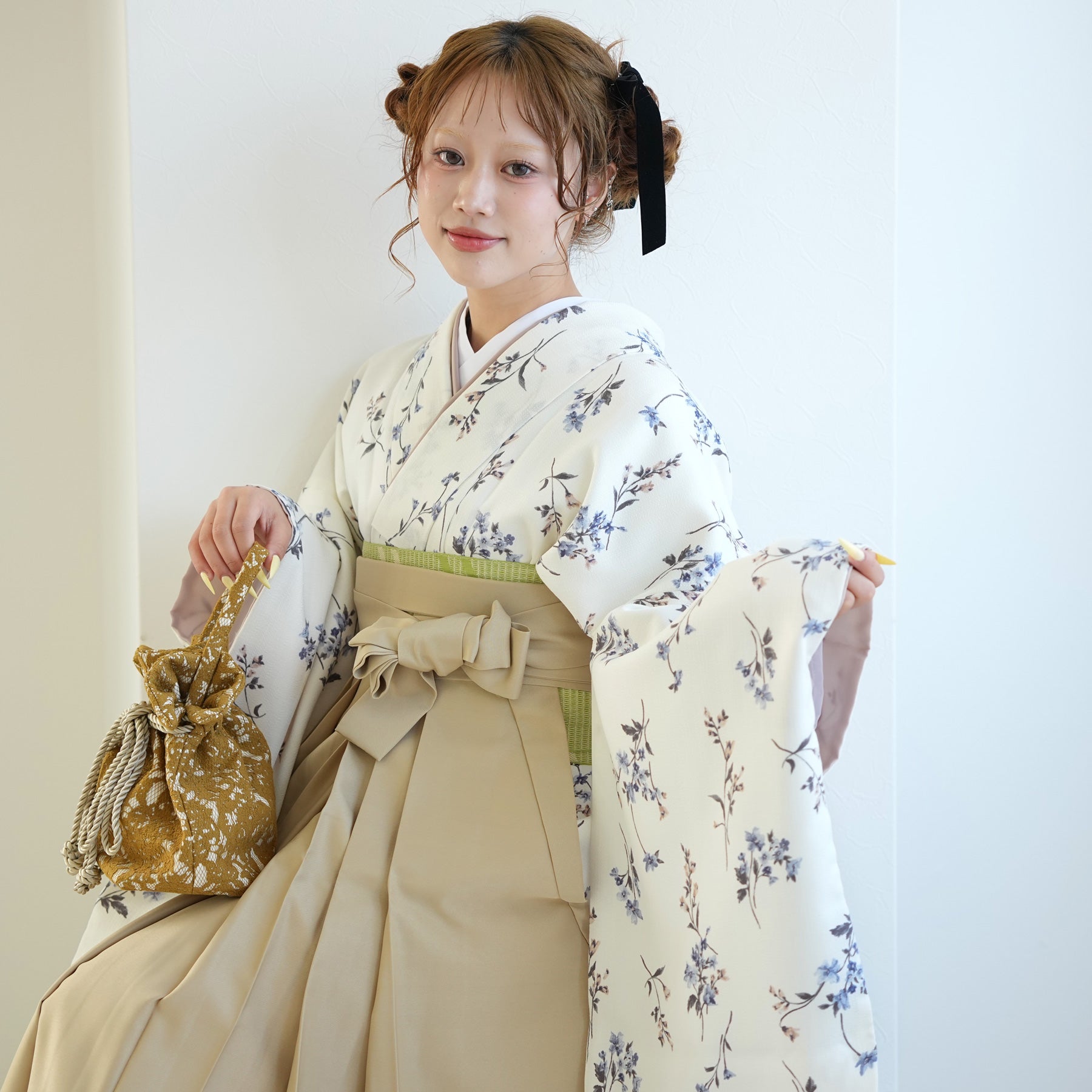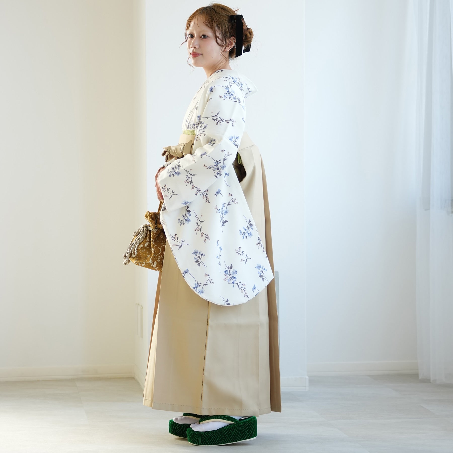 着物・袴・草履・バッグ・重ね襟(着物に縫い付済)・半巾帯・肌襦袢+長襦袢一体化インナー(白無地半襟付き)・前板・着付けベルト・ウエストベルト・腰ひも3本セット・伊達締め ・マジックベルト・衿芯・足袋(プレゼント)