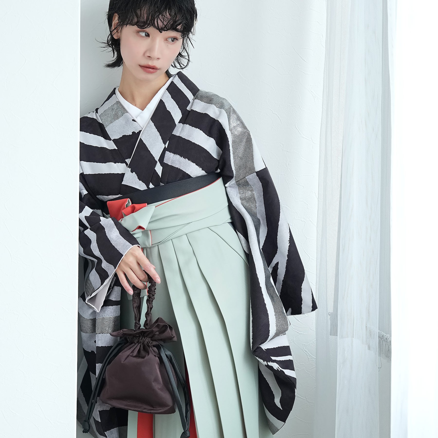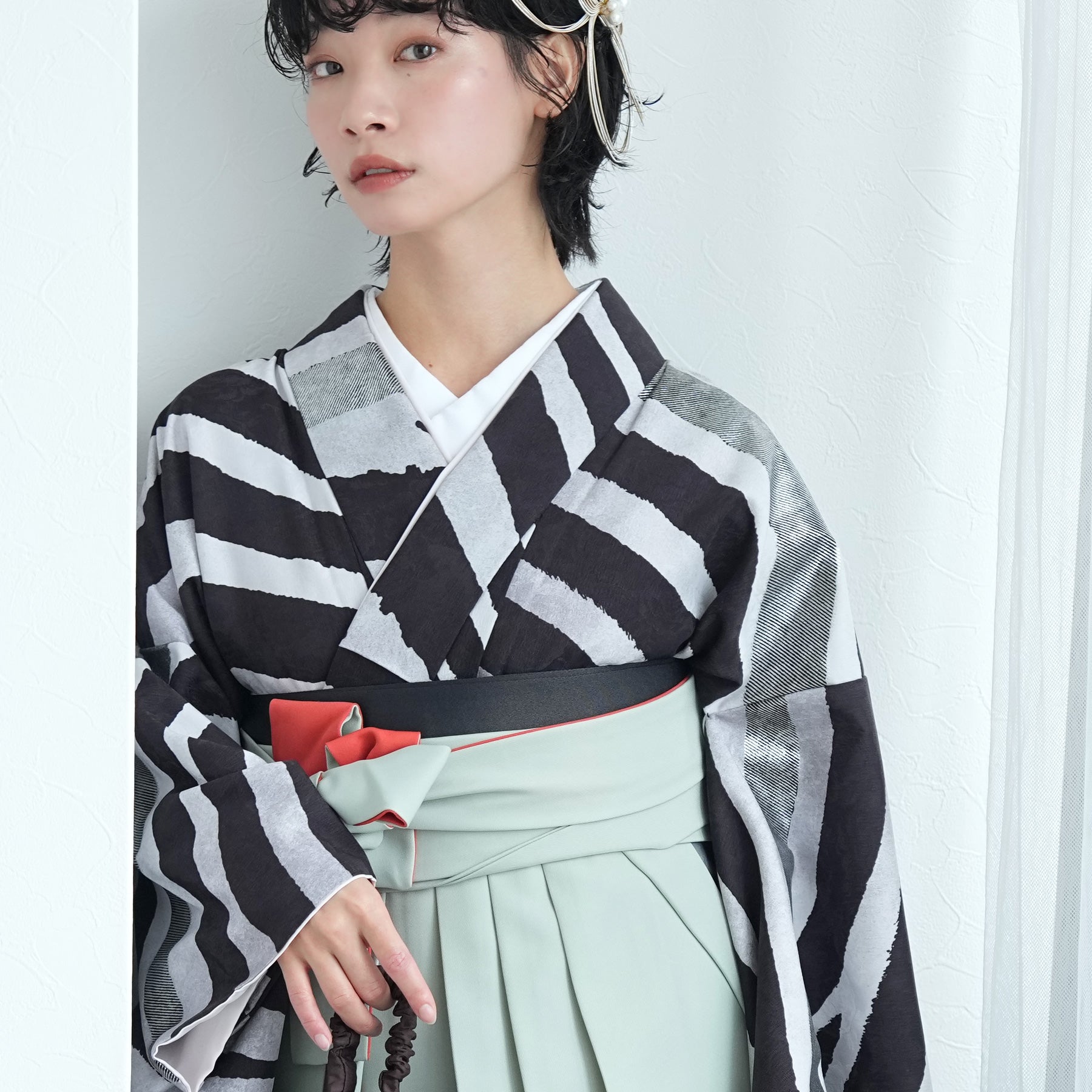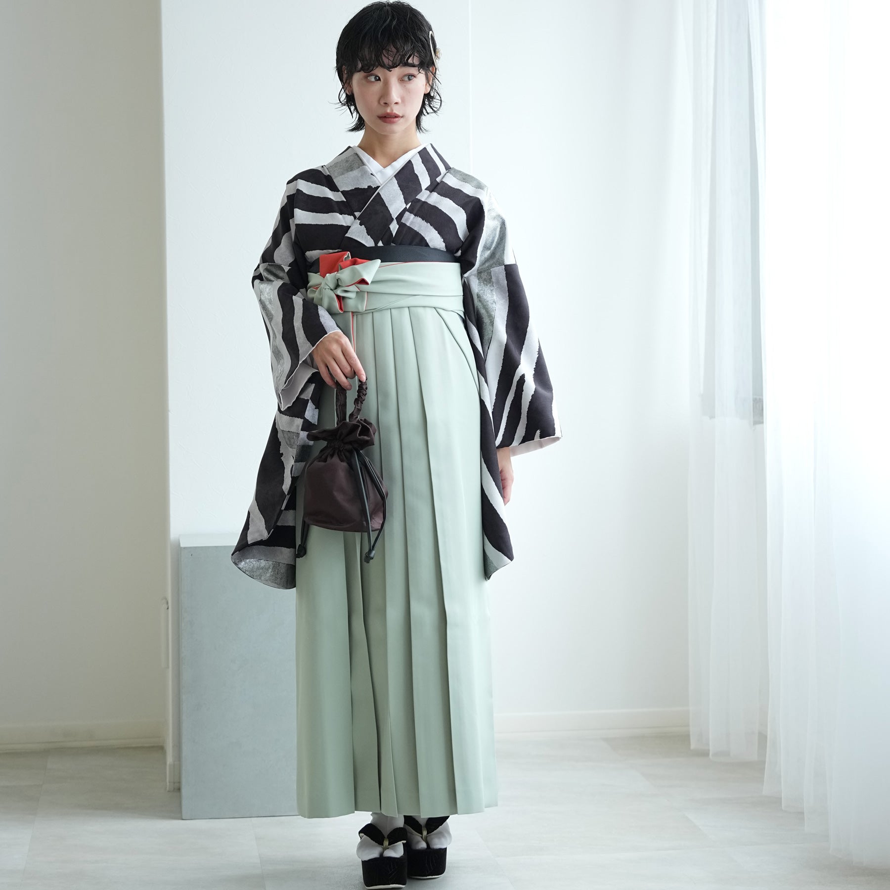 【レンタル】 袴 17点セット モダンアンテナ 袴91-99cm(身長153-170cm) 二尺袖着物 フルセット レディース 大学生 卒業式 日本製 (1020697001)