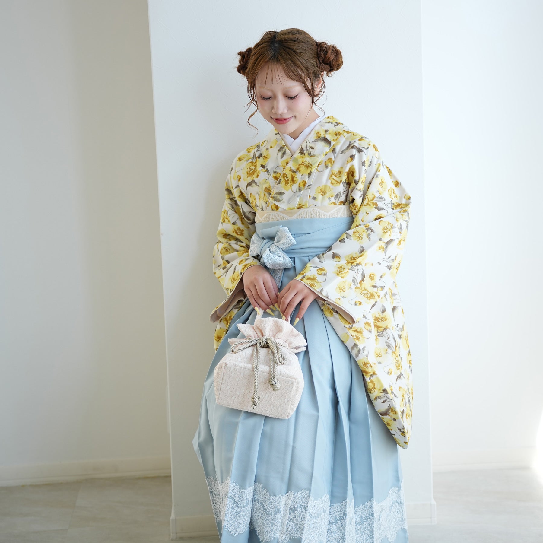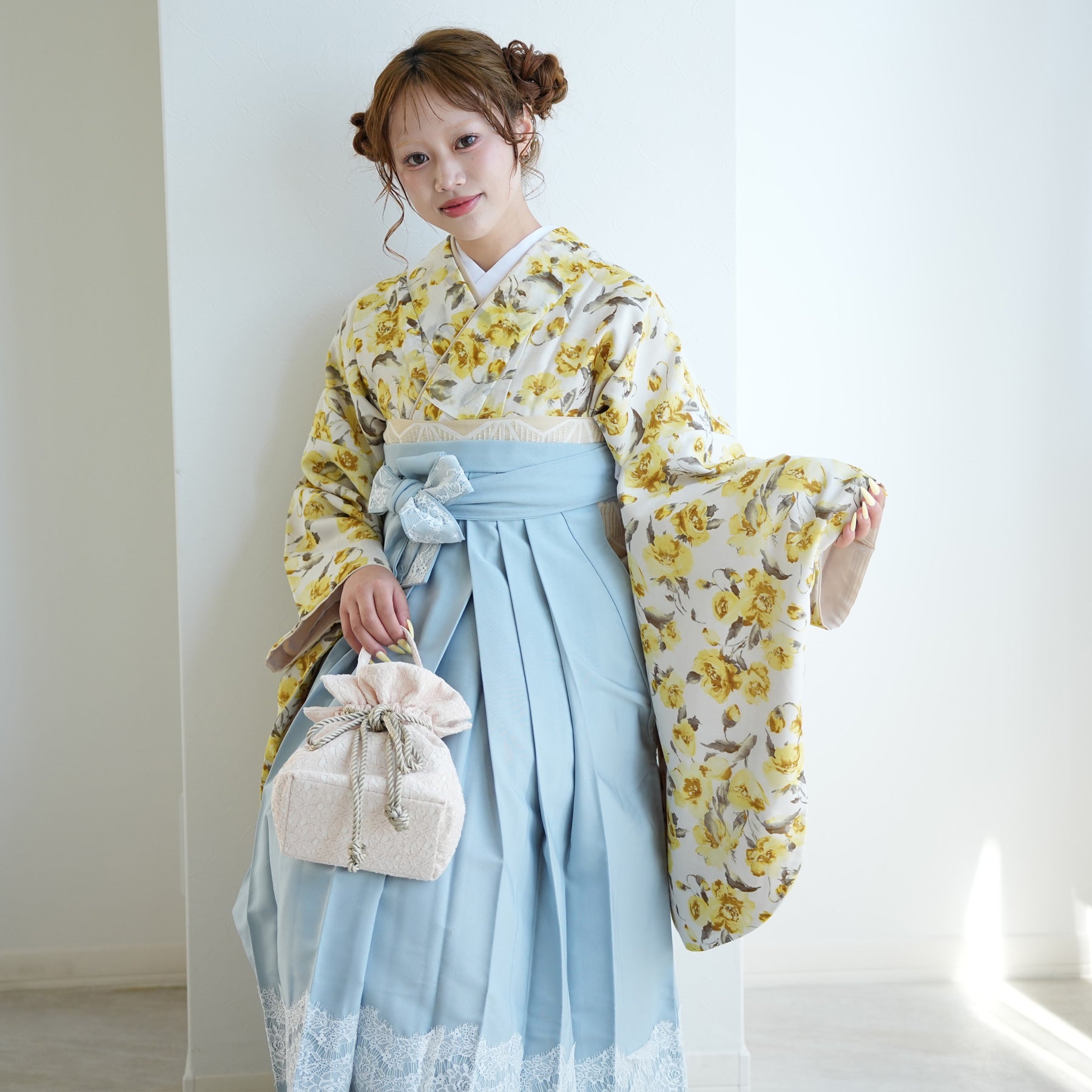 着物・袴・草履・バッグ・重ね襟(着物に縫い付済)・半巾帯・肌襦袢+長襦袢一体化インナー(白無地半襟付き)・前板・着付けベルト・ウエストベルト・腰ひも3本セット・伊達締め ・マジックベルト・衿芯・足袋(プレゼント)