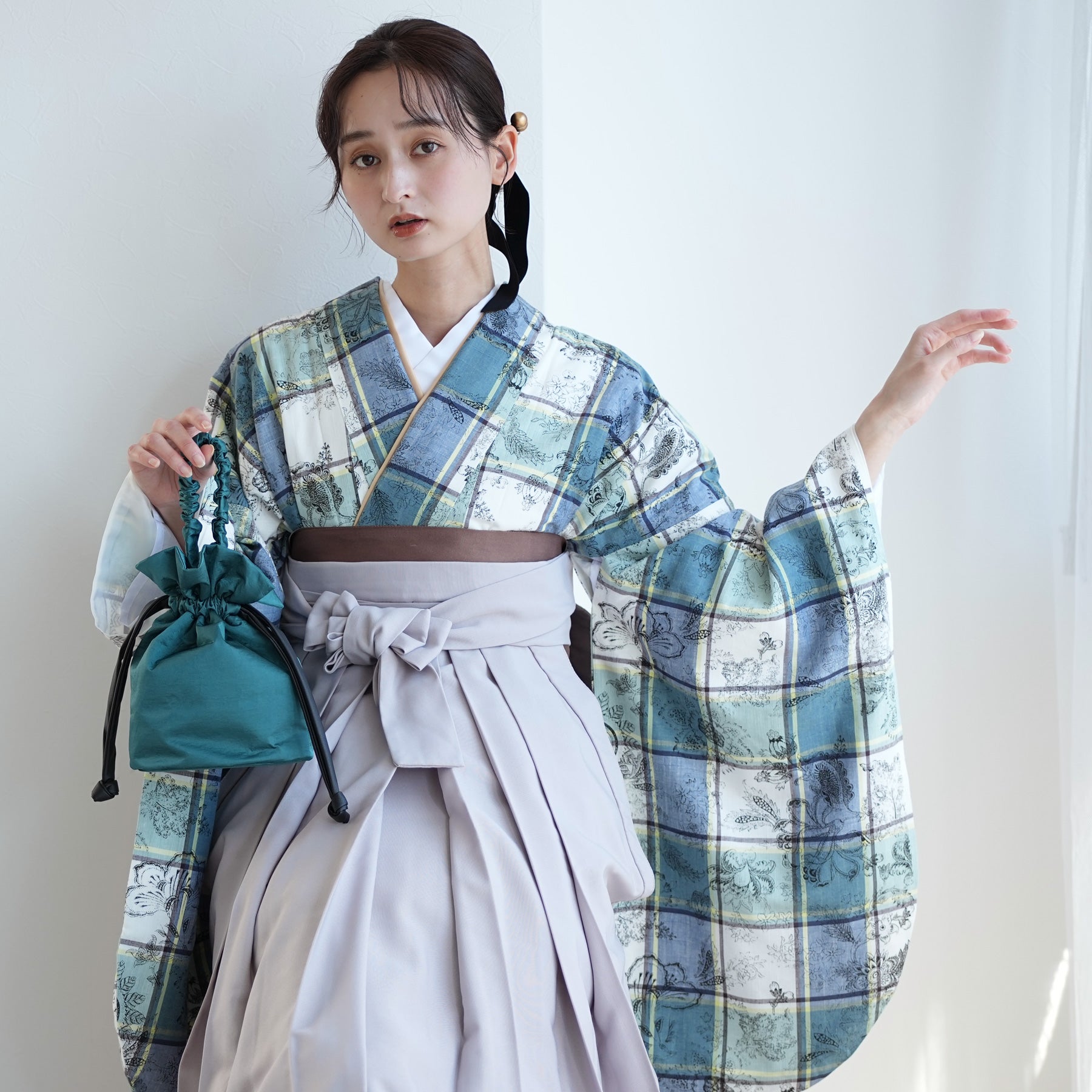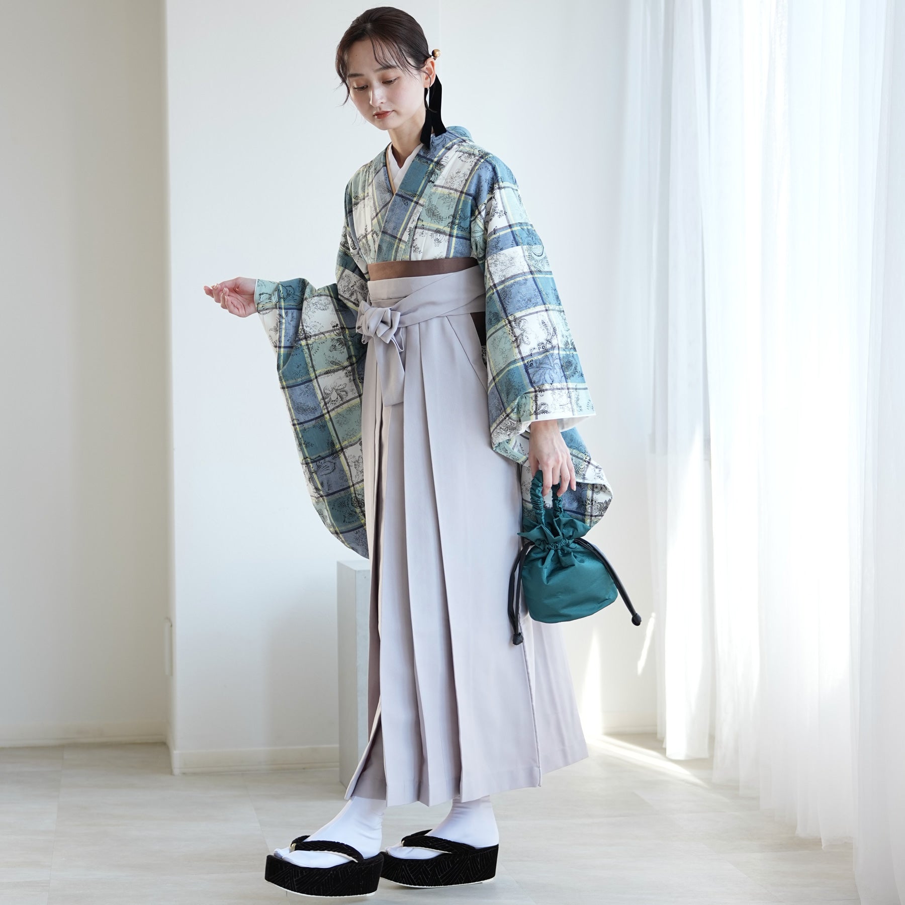 着物・袴・草履・バッグ・重ね襟(着物に縫い付済)・半巾帯・肌襦袢+長襦袢一体化インナー(白無地半襟付き)・前板・着付けベルト・ウエストベルト・腰ひも3本セット・伊達締め ・マジックベルト・衿芯・足袋(プレゼント)