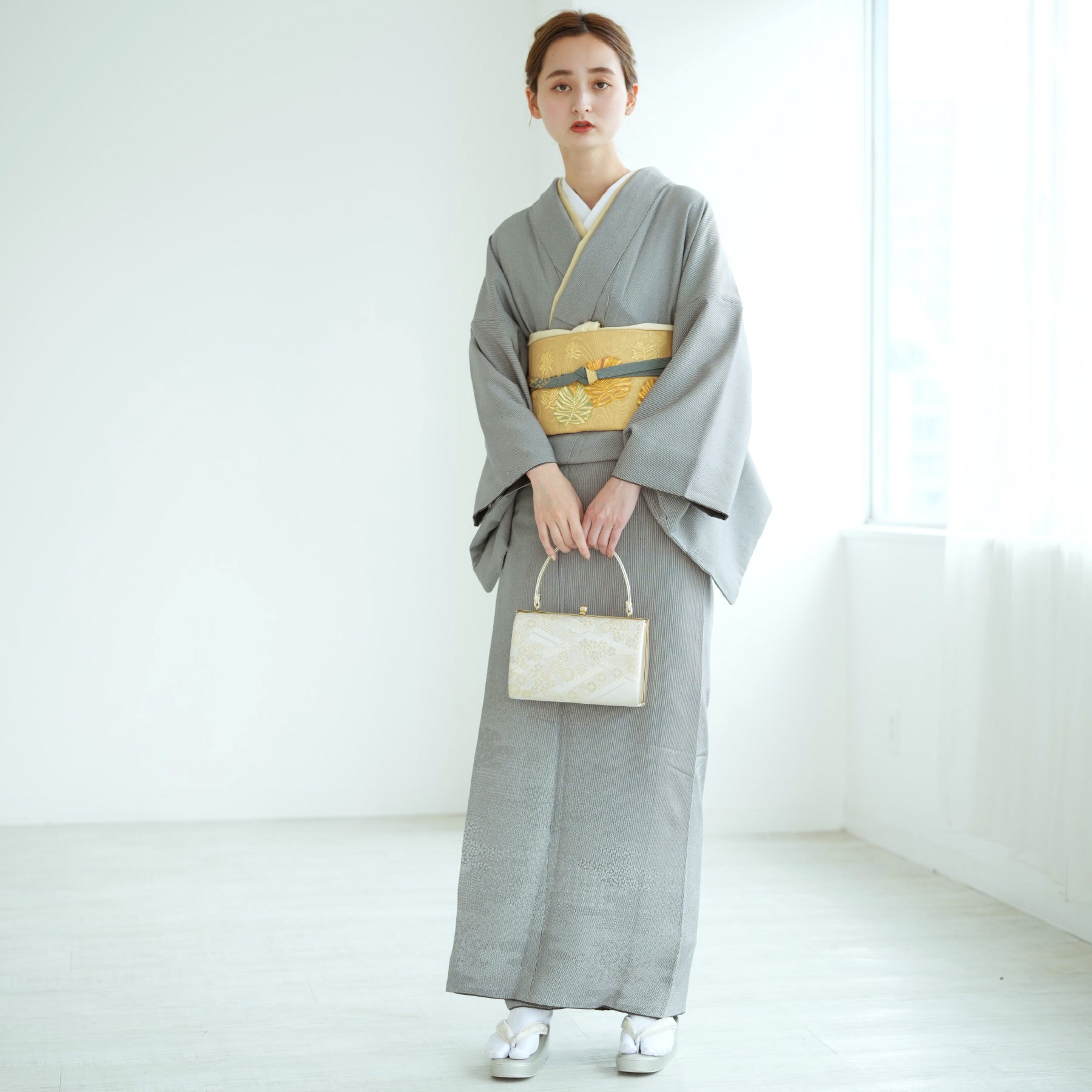 着物・袋帯・草履・バッグ・長襦袢・帯〆・帯揚げ・重ね衿・肌襦袢・前板・着付けベルト・ウエストベルト・腰ひも3本セット・帯まくら・伊達締め・マジックベルト・衿芯・足袋(プレゼント)