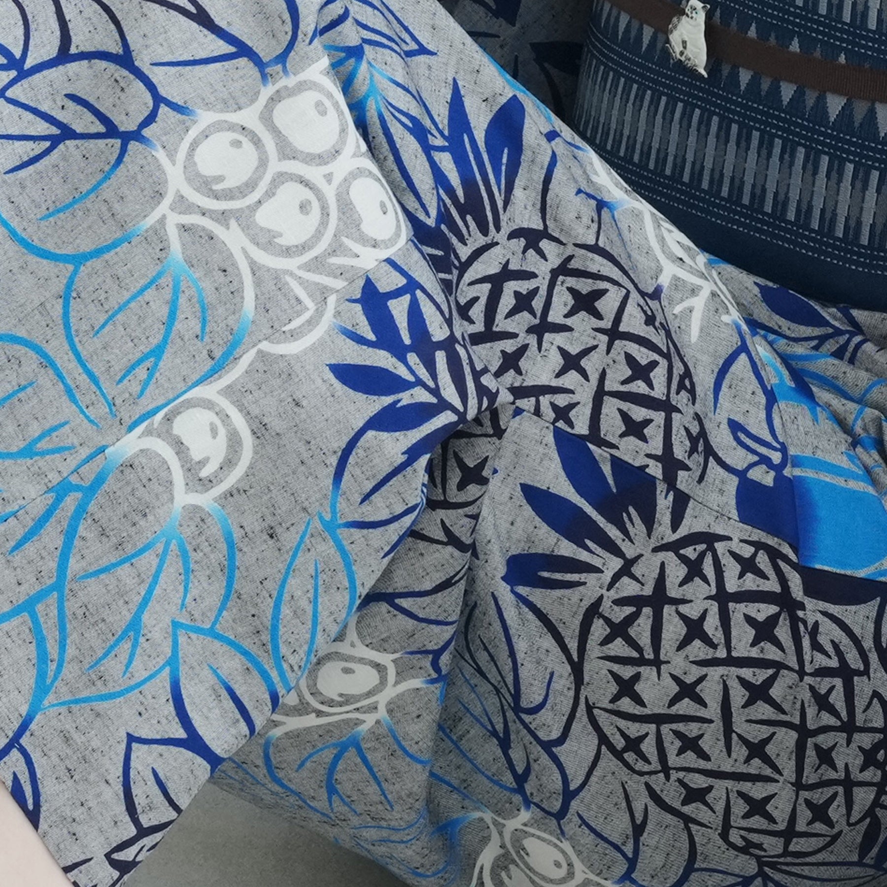 【utatane × 注染工房 浴衣3点セット(ゆかた・帯・下駄)赤坂紬 上品グレーに南国果物】フリーサイズ 日本製 小幅生地使用 特選シリーズ 注染 本染め 手縫い併用国内縫製 奈良の職人さんの手染め (5010263911)