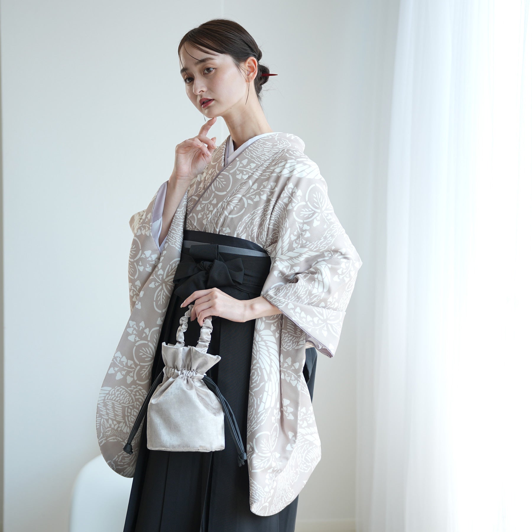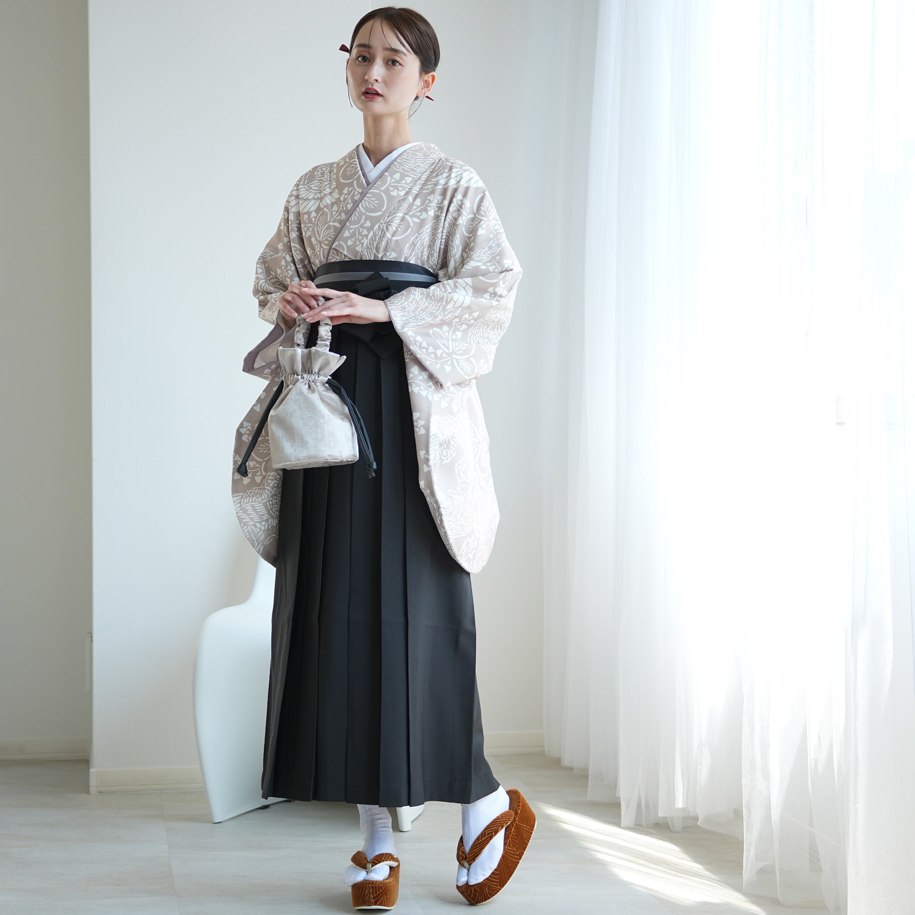 ワントーンで仕上げた古典柄にシックなブラックの袴がポイント。