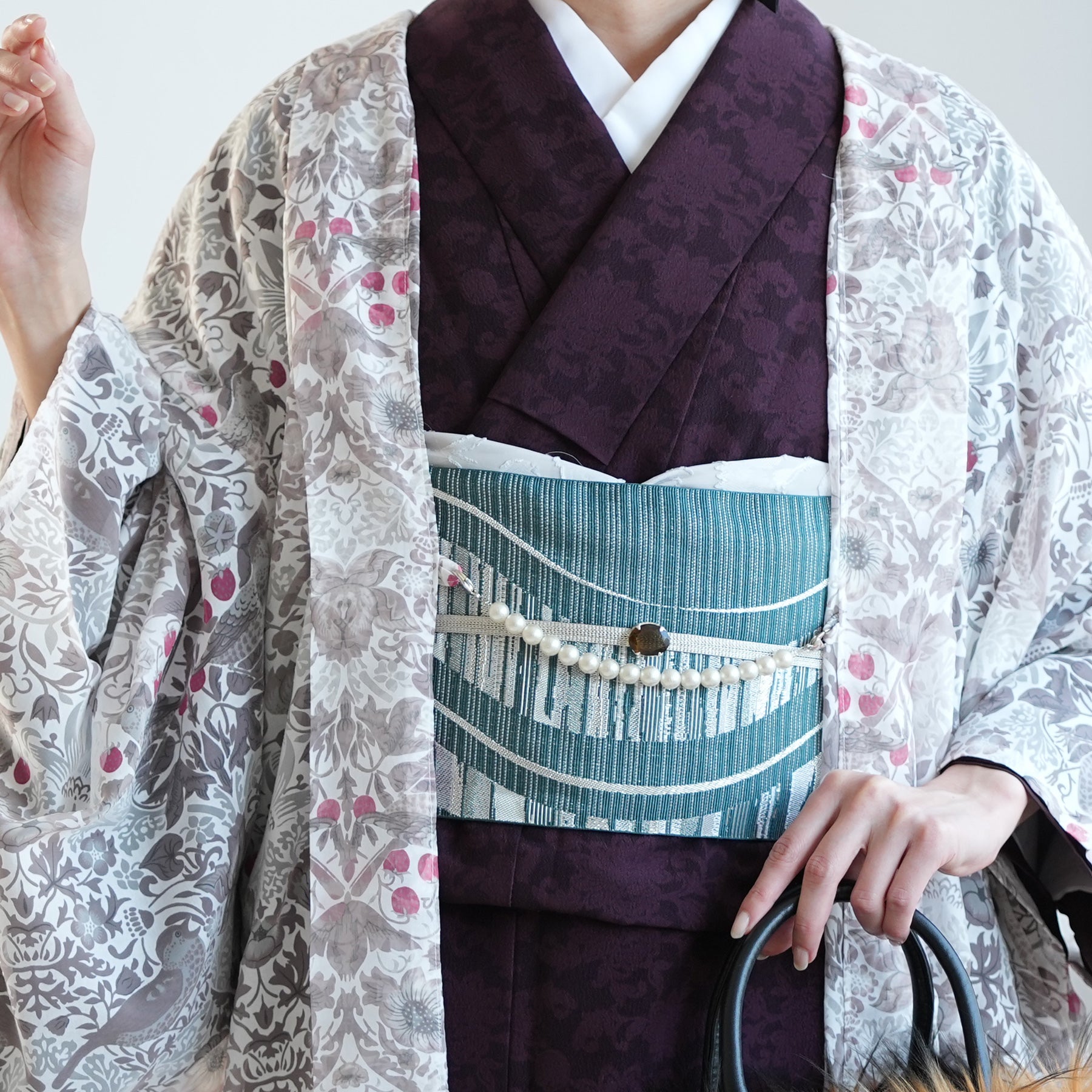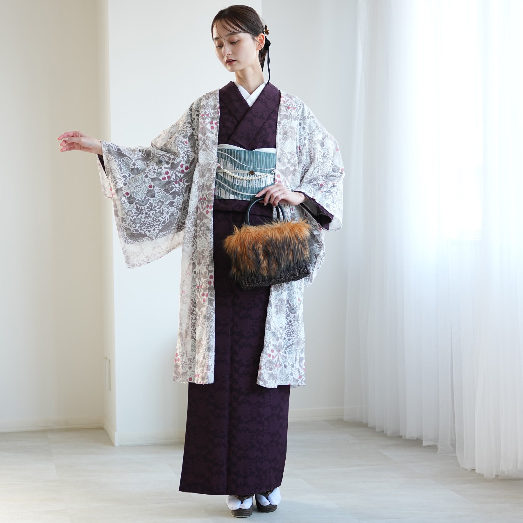 浴衣や小紋などの上にさらりと羽織るだけで、季節を感じる装いに。