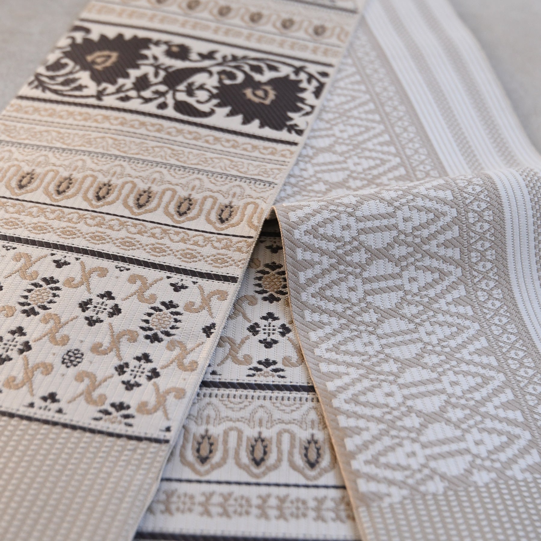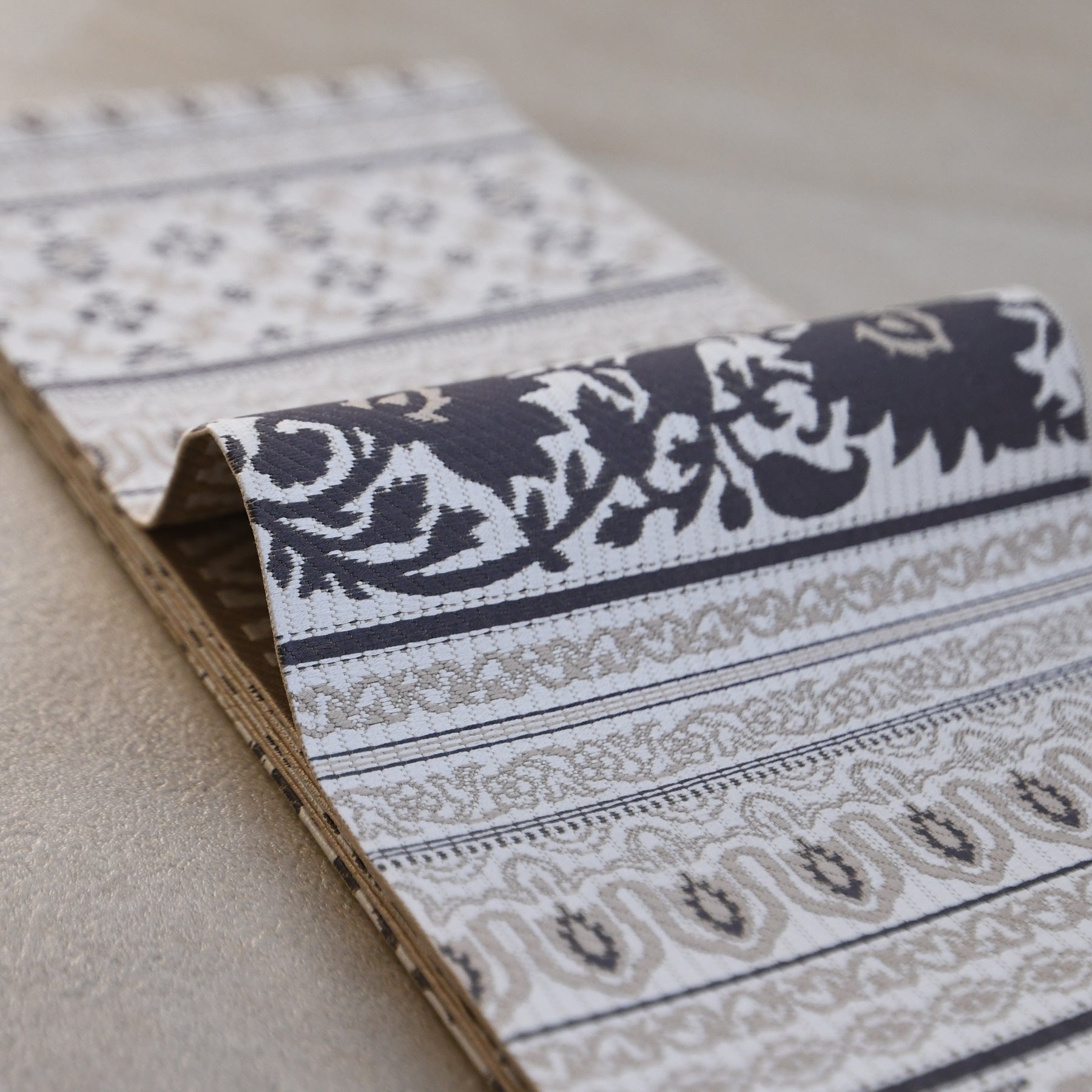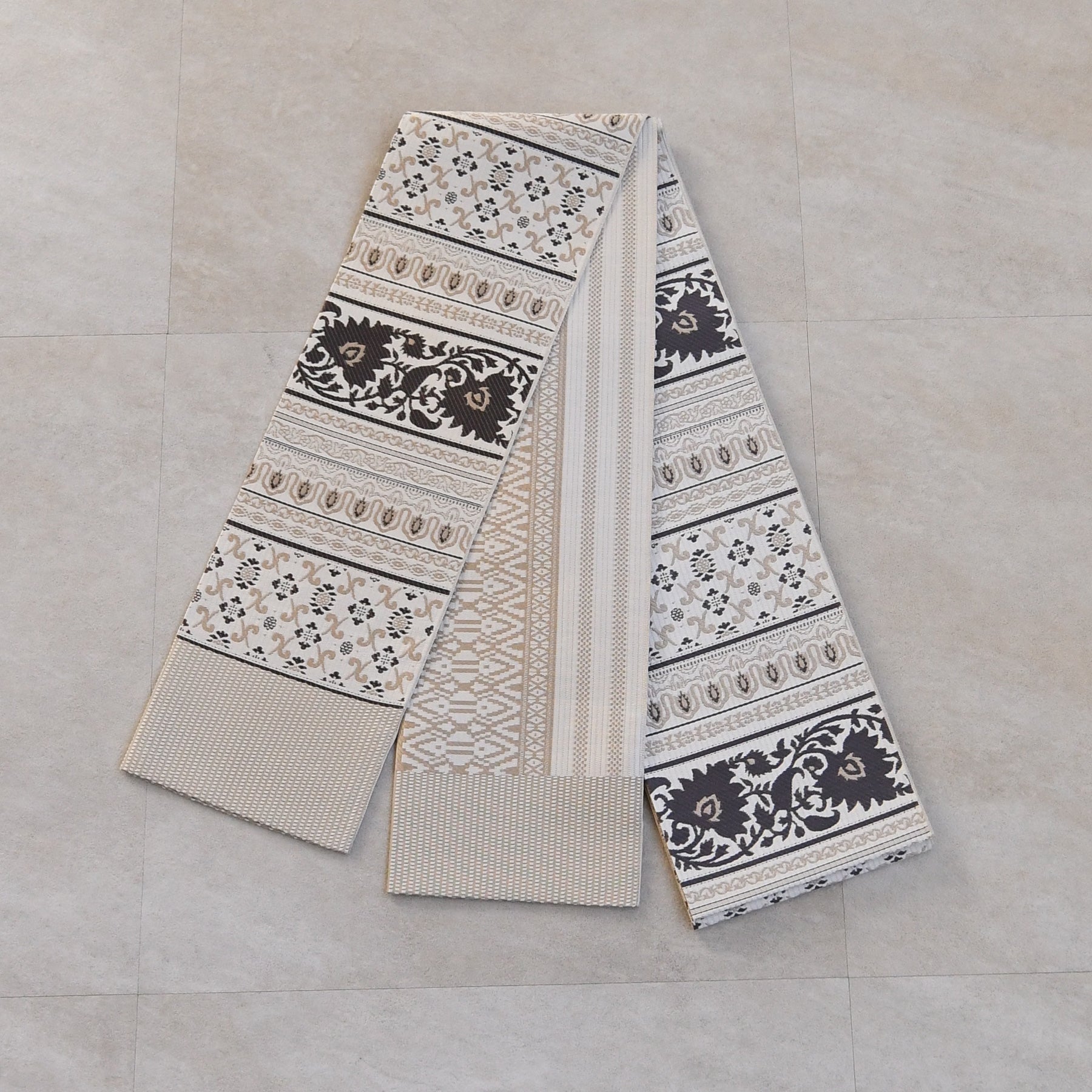 【半幅帯 博多織 インド更紗献上 ベージュ】帯単品 小袋帯 長尺 正絹 リバーシブル 日本製 本場筑前博多織 紋小巾袋帯 証紙付き(5279625100)