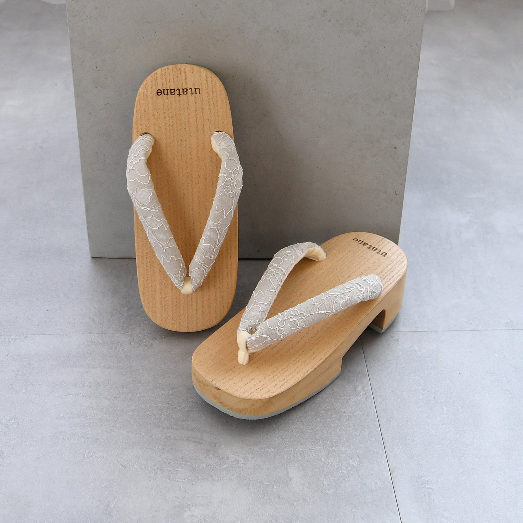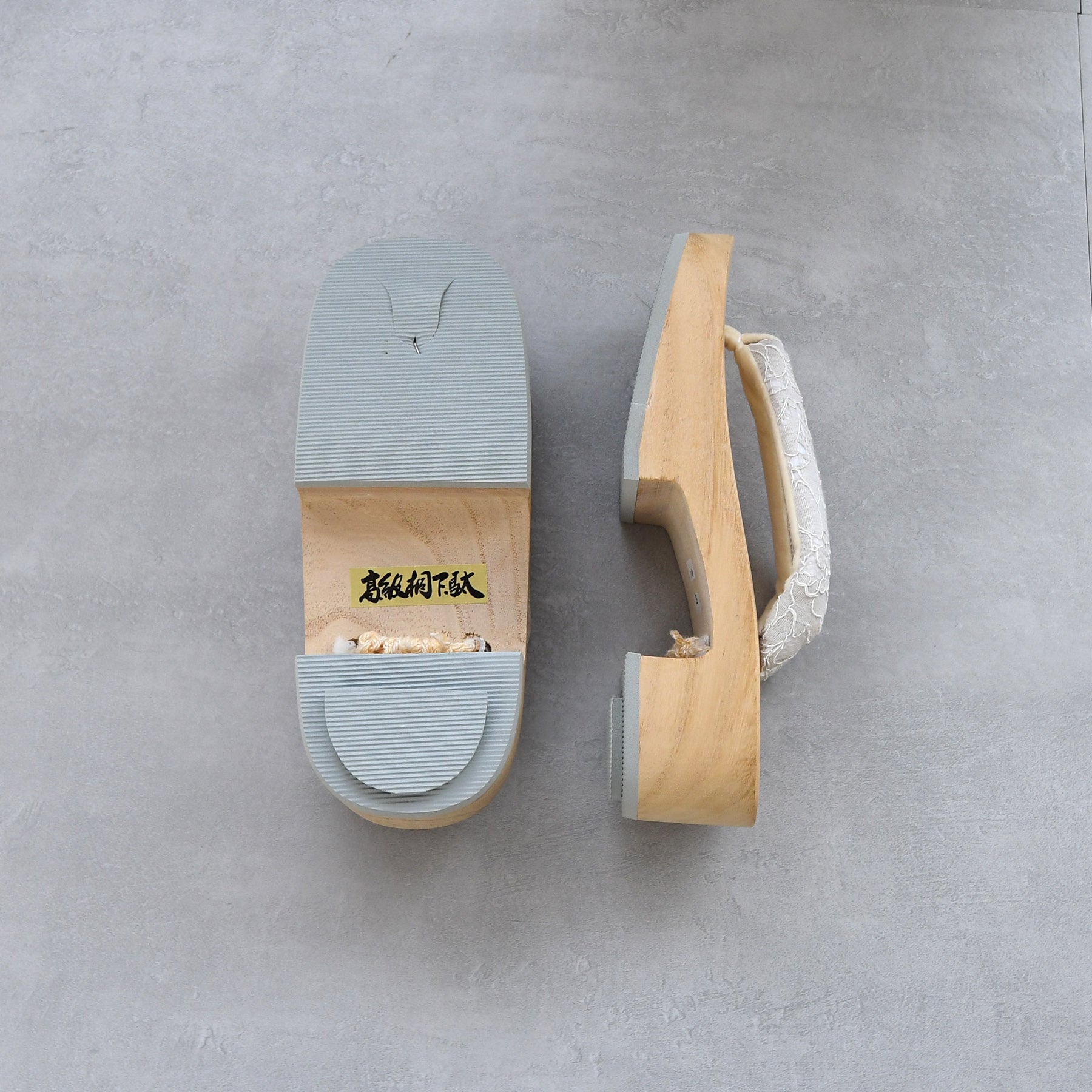 汗を吸収し足裏もベタつきにくいので履き心地が爽やかな白木台座になります。