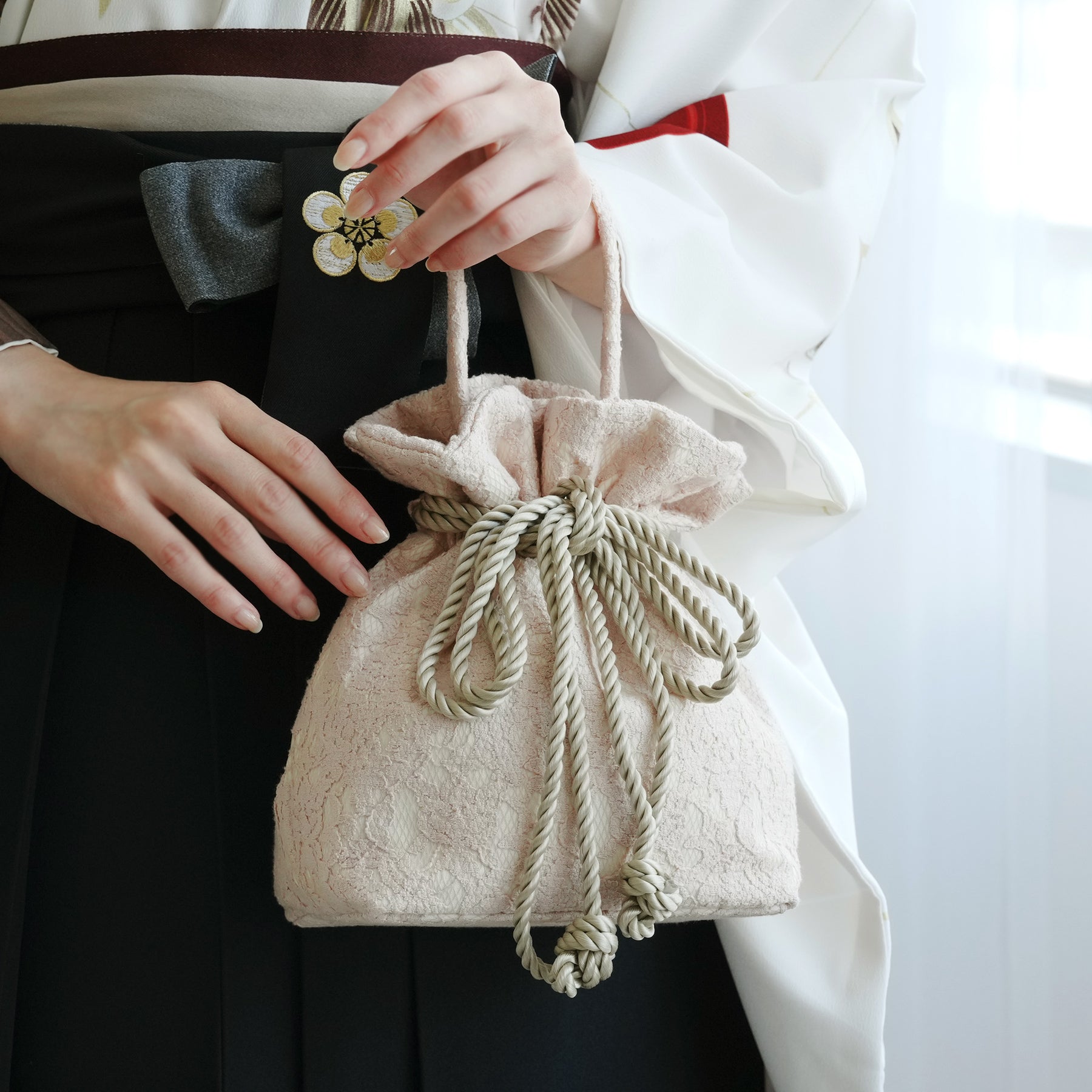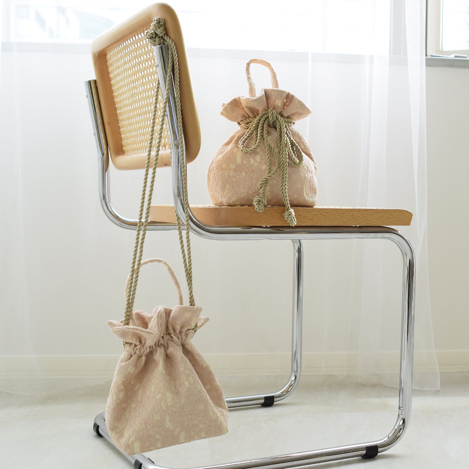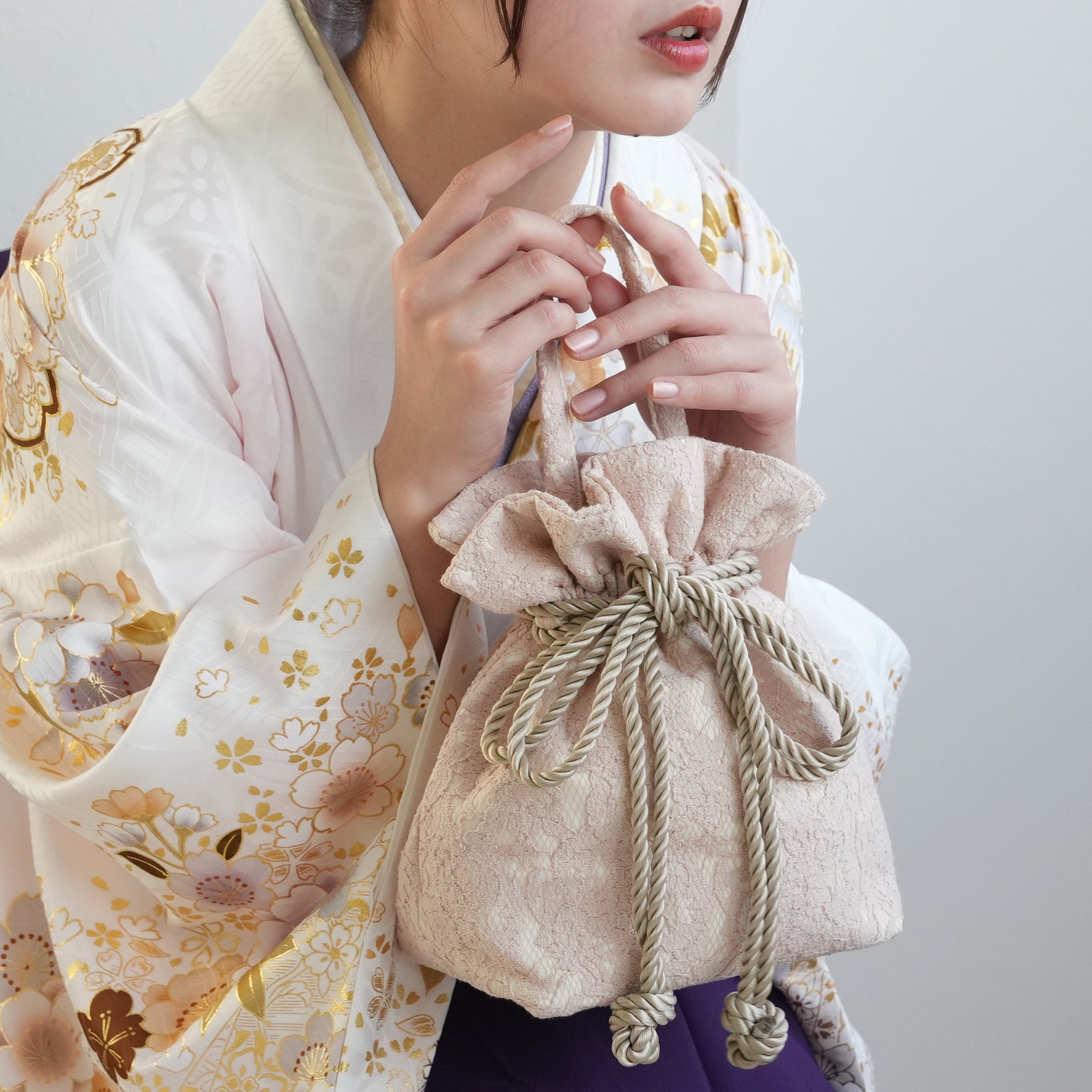 和装にも普段着にもお使いいただきやすい巾着バッグ。