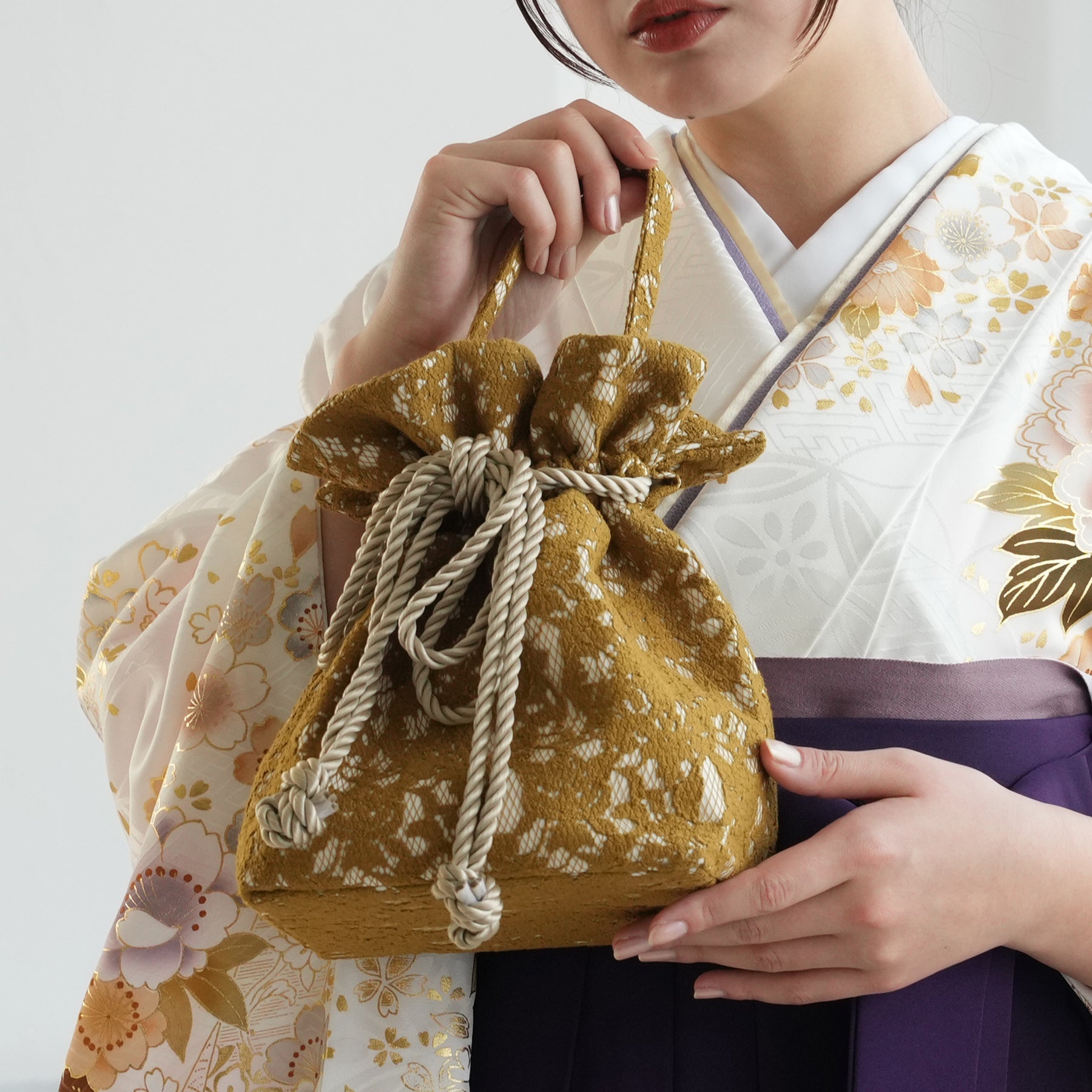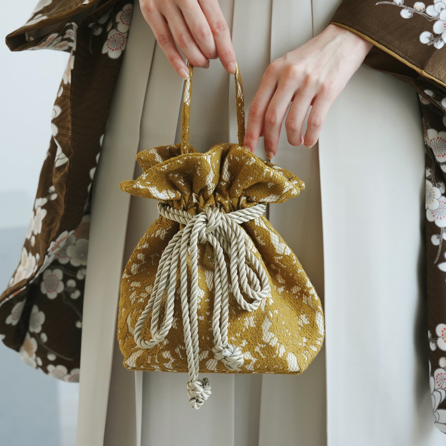 和装にも普段着にもお使いいただきやすい巾着バッグ。