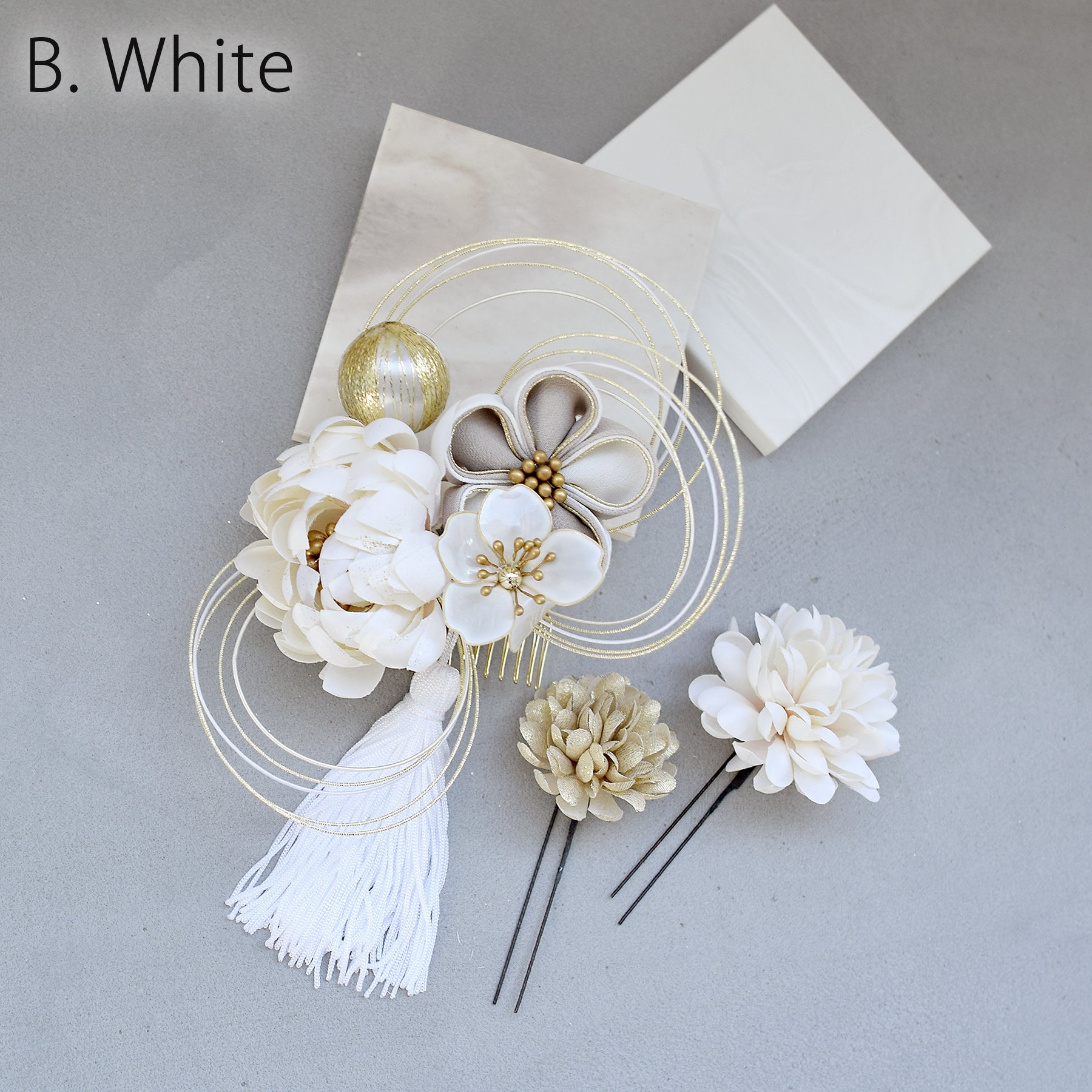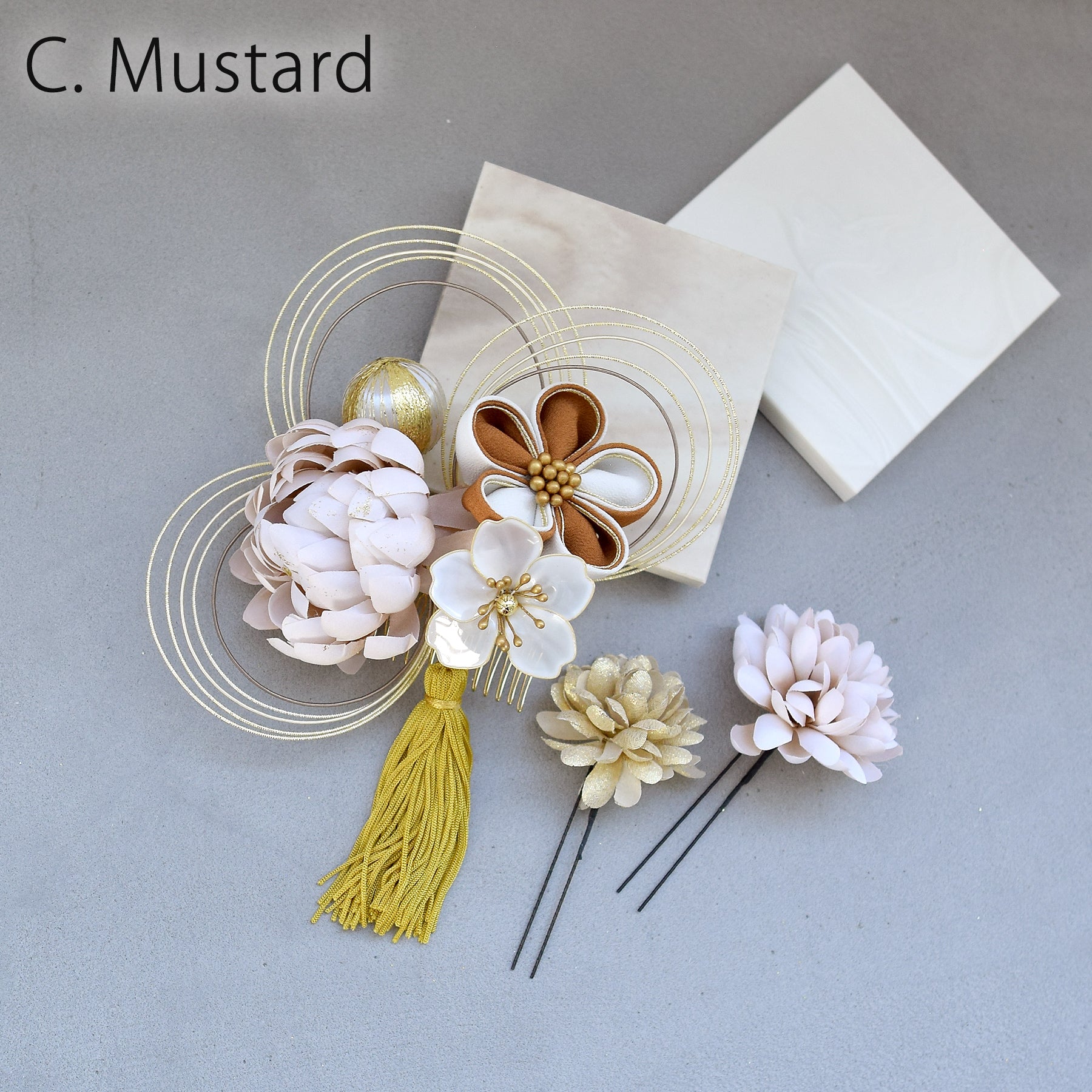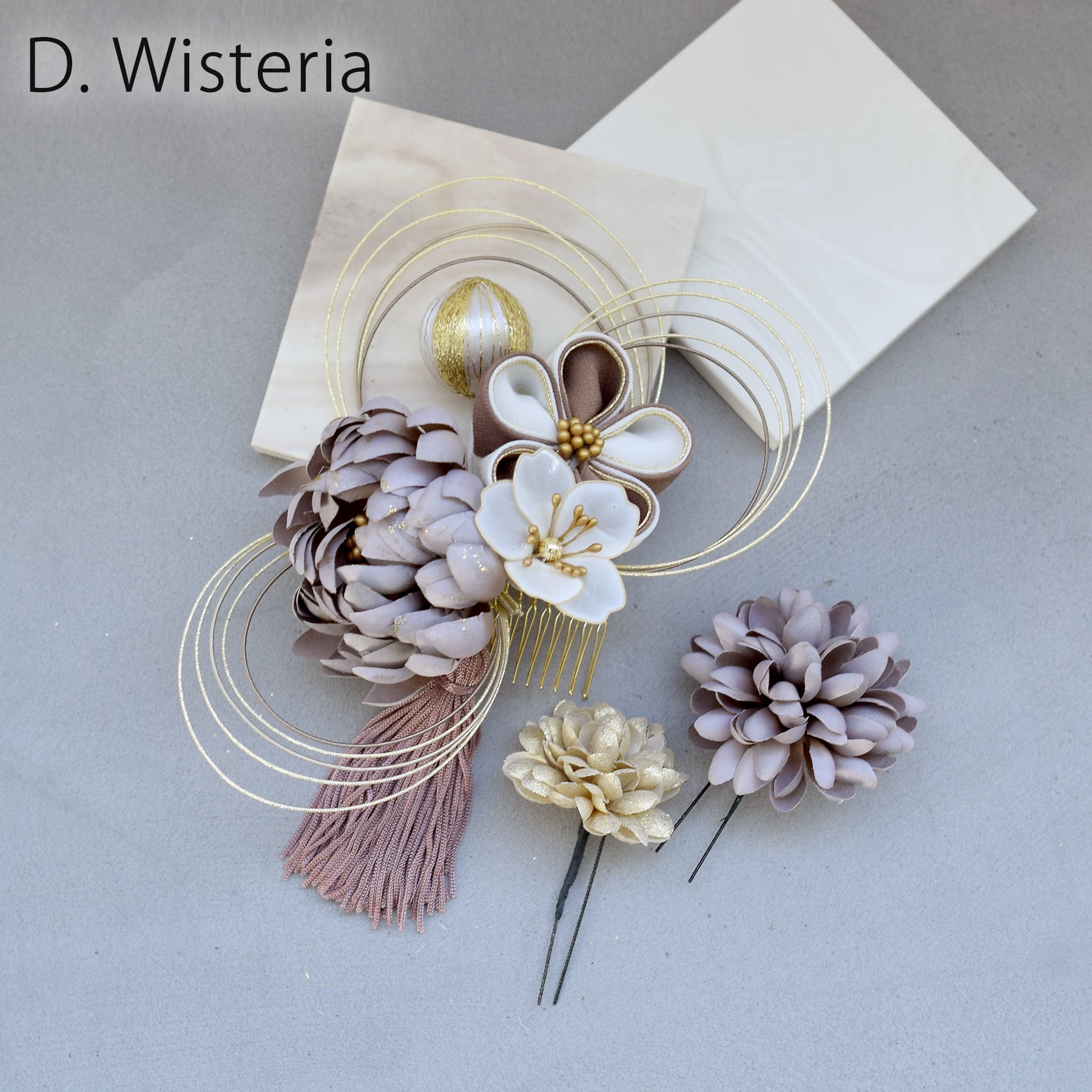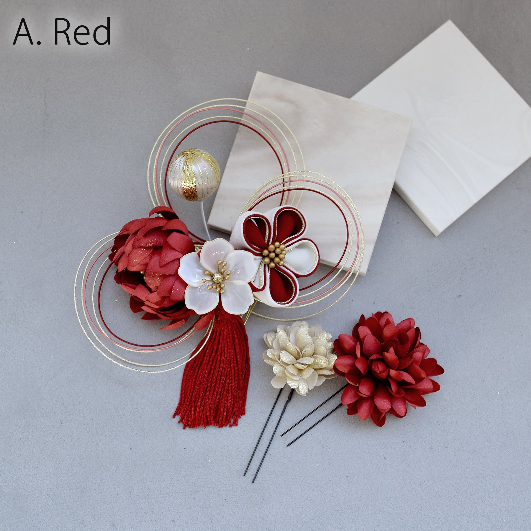 【髪飾り 菊梅桜・水引 コームUピン3点セット】タッセル つまみ細工 アメリカンフラワー ヘアアクセサリー 日本製 成人式振袖や卒業式袴にも(5432636301)【取り寄せ品】