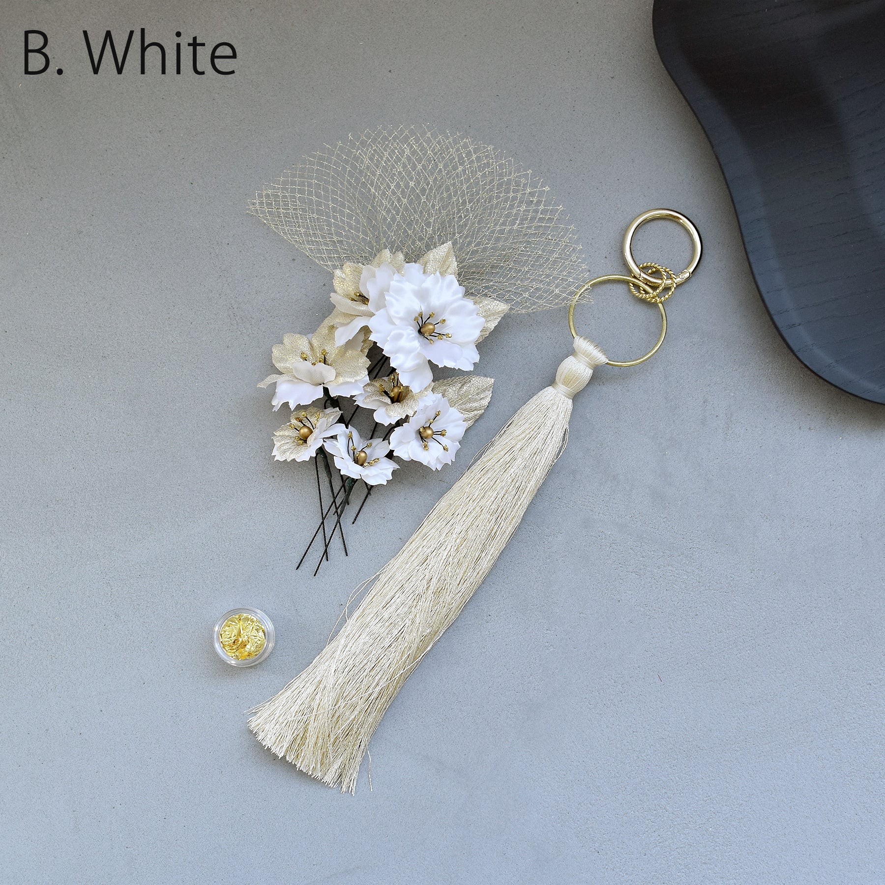 【髪飾り 桜花・リングタッセル Uピン金箔9点セット】ポニーテールリング ヘアアクセ ヘアアクセサリー 日本製 成人式振袖や卒業式袴にも(5432636701)【取り寄せ品】