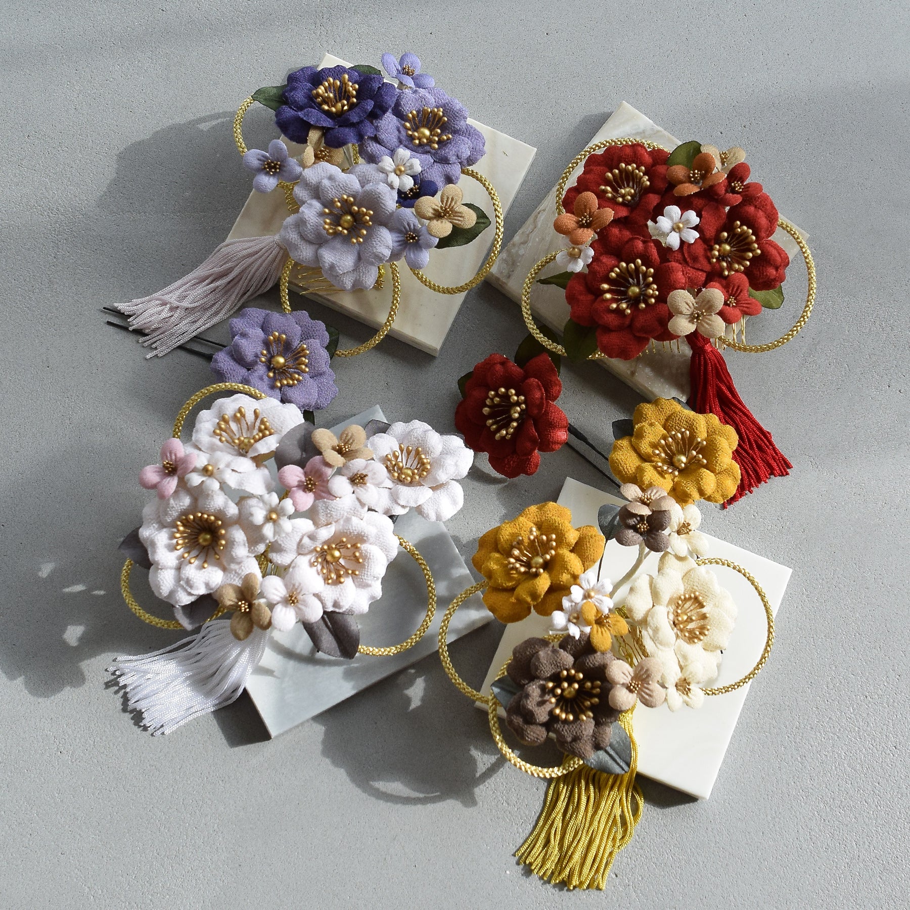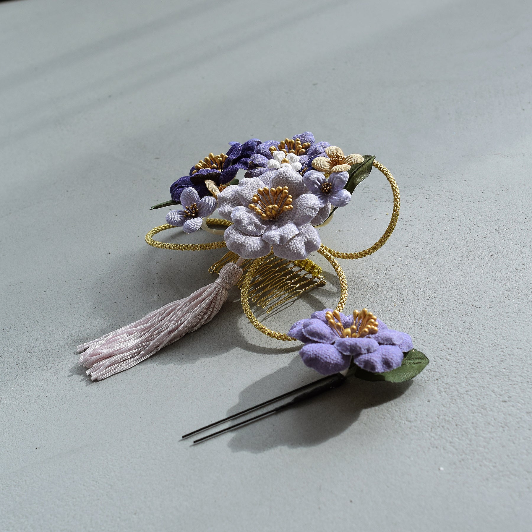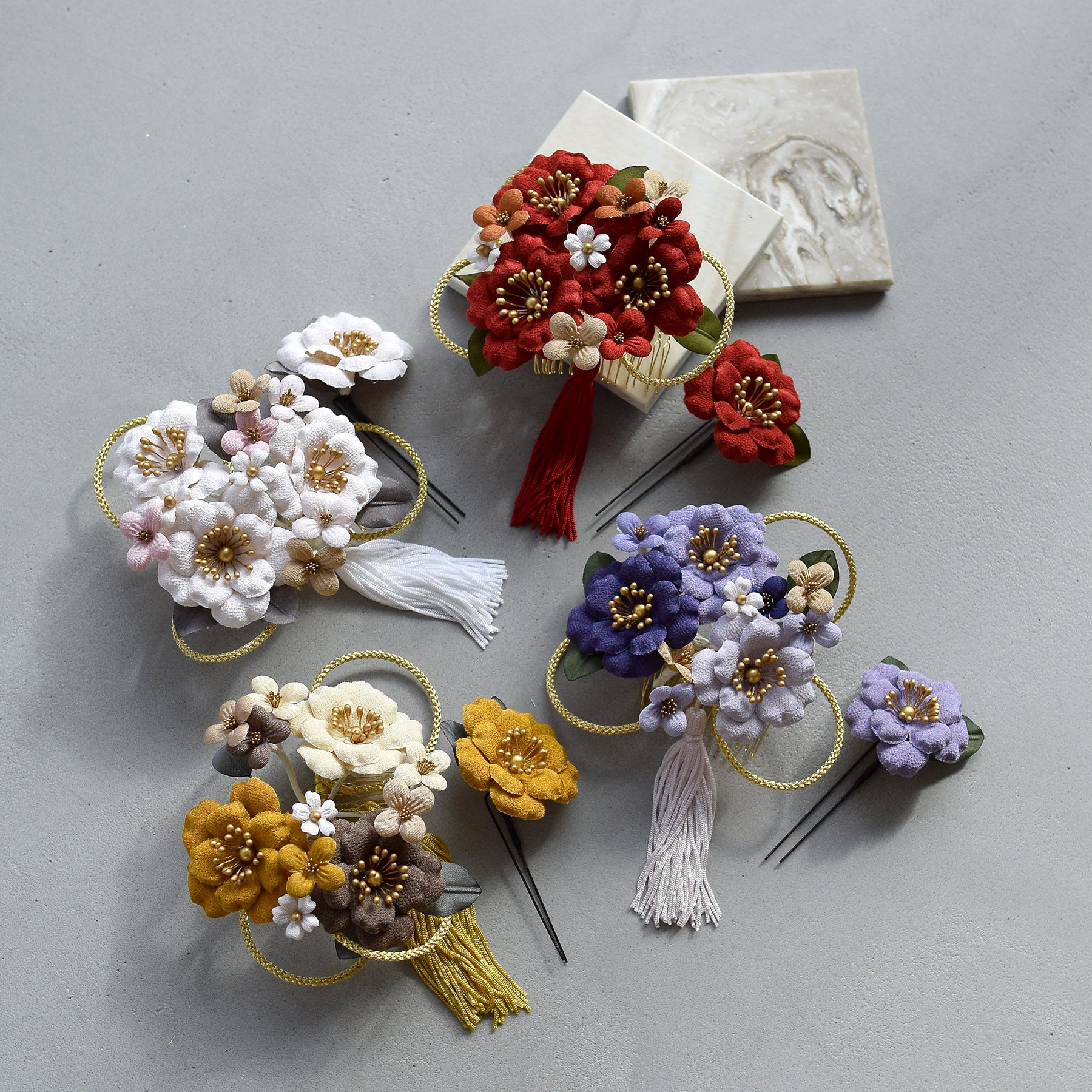 【髪飾り 大正レトロ梅&タッセル コームUピン2点セット】 ヘアアクセサリー 日本製 成人式振袖や卒業式袴にも(5432638801)【取り寄せ品】