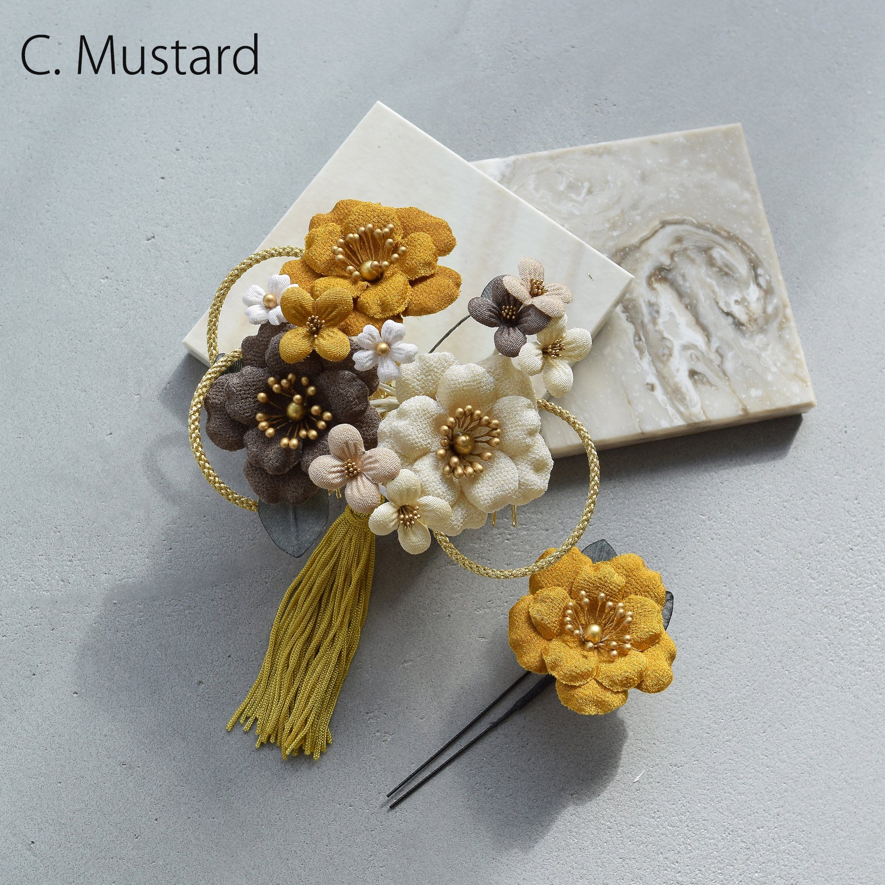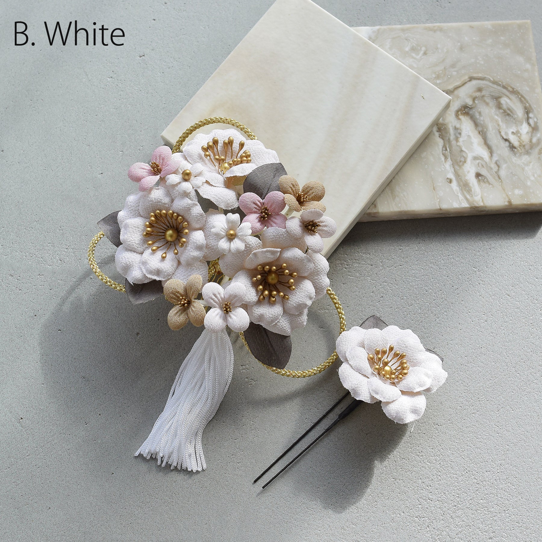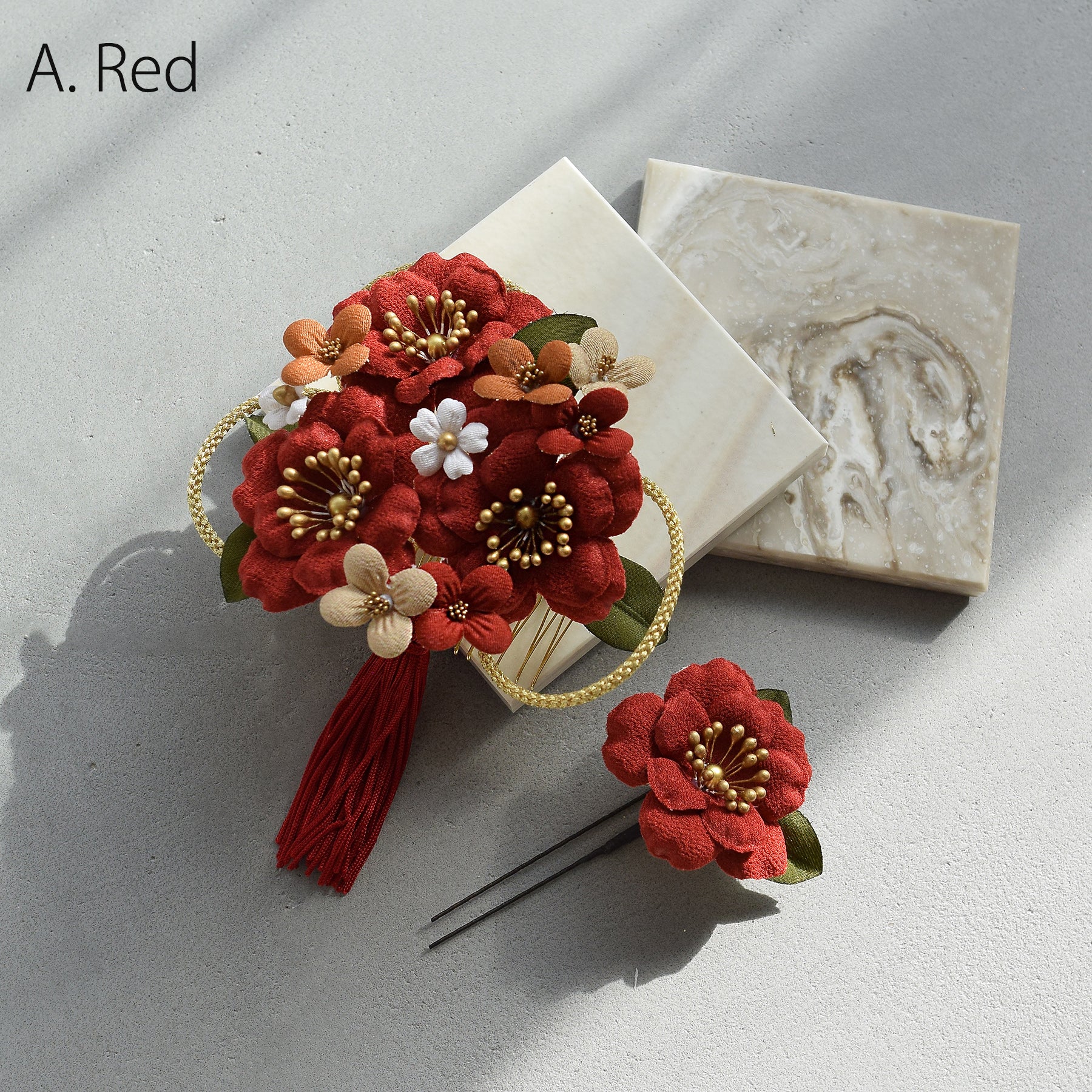 【髪飾り 大正レトロ梅&タッセル コームUピン2点セット】 ヘアアクセサリー 日本製 成人式振袖や卒業式袴にも(5432638801)【取り寄せ品】