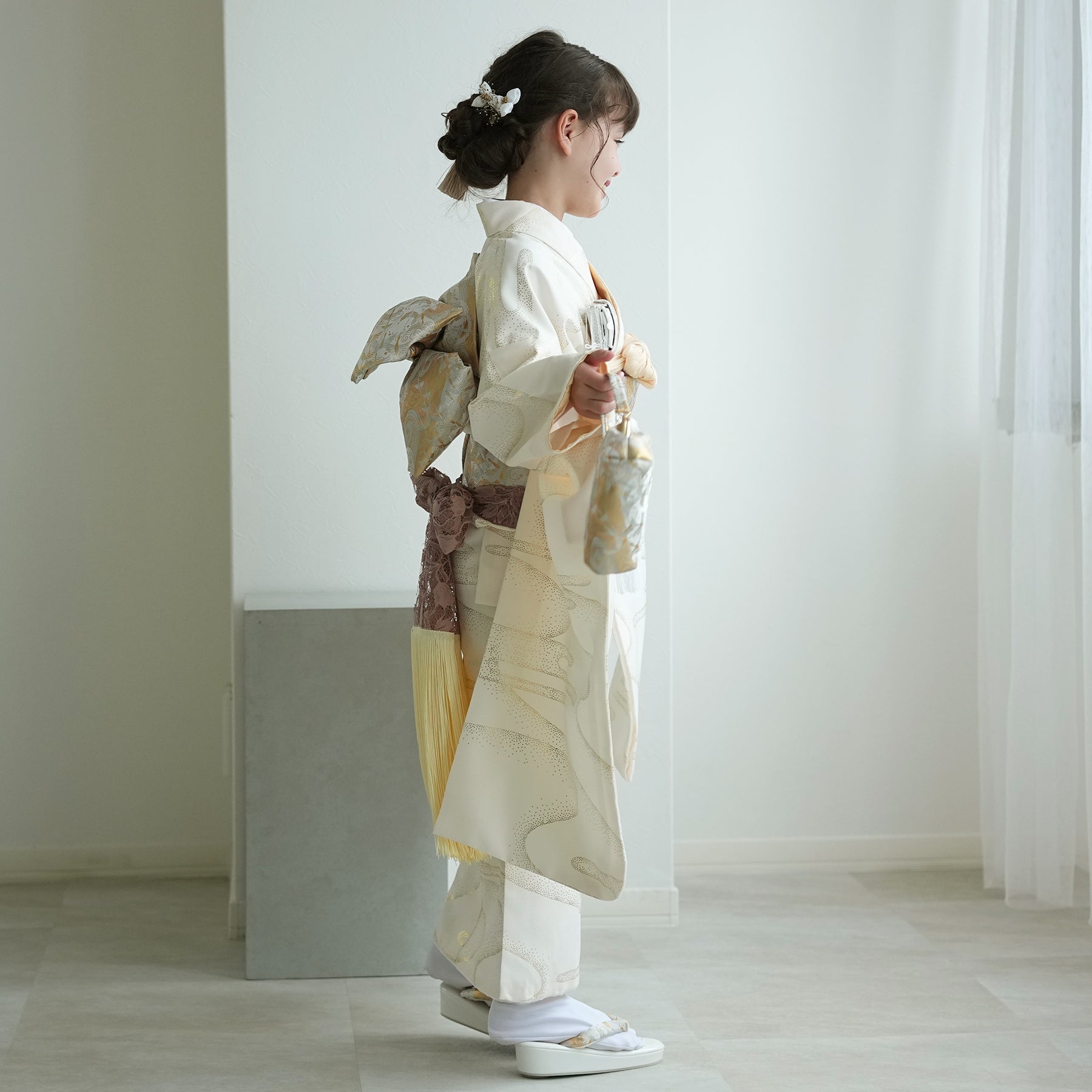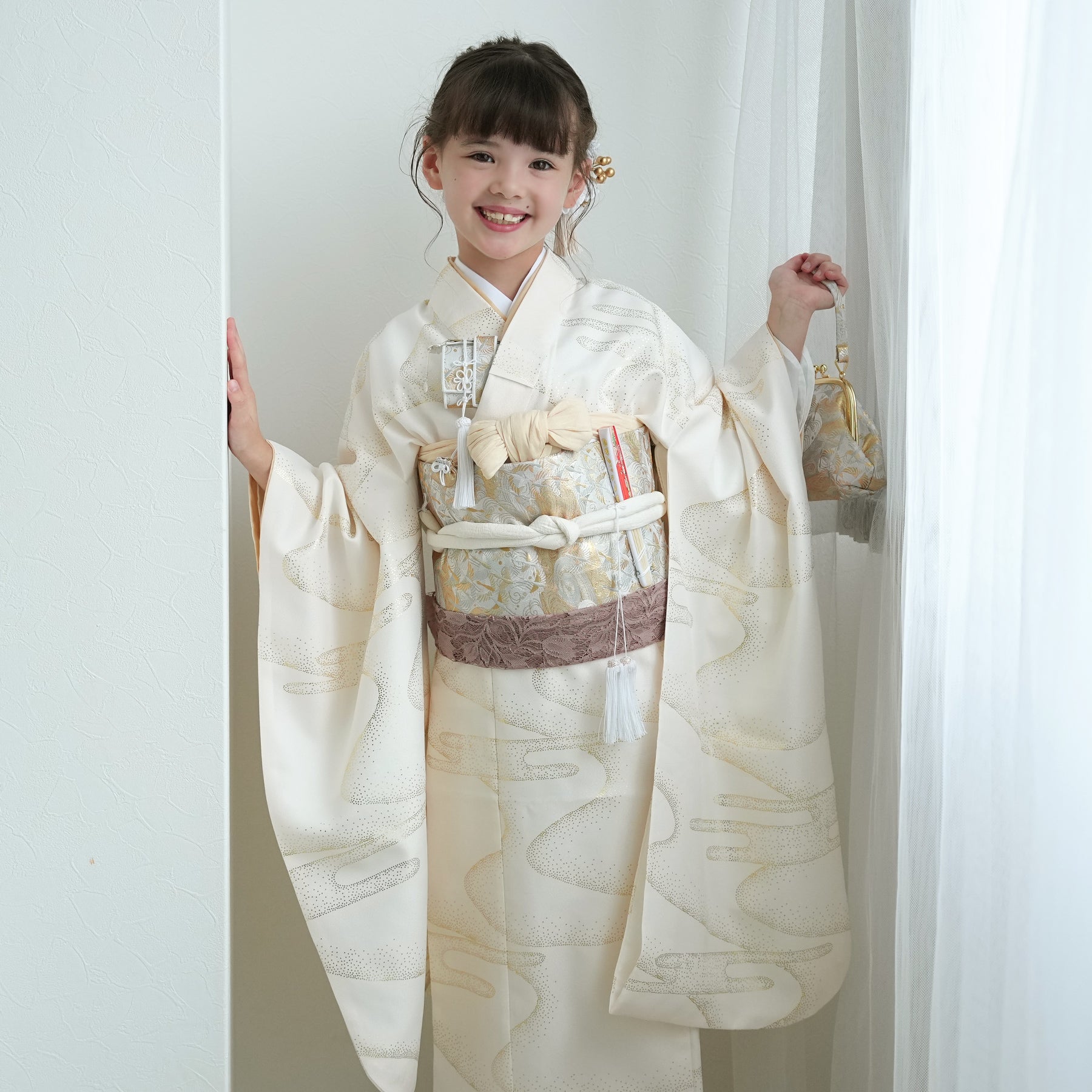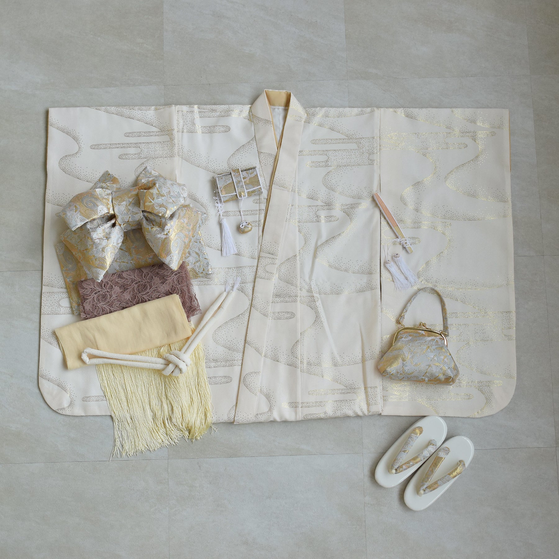 【七五三着物 7歳 女の子 着物セット】販売品 四つ身 クリーム金彩・流水 ひよこ商店(6728613800)