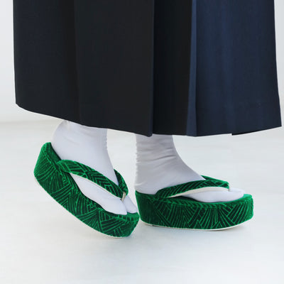 【ニコアンティーク 草履 単品 シャモン・フォレスト 】 緑 モケット生地 成人式振袖や卒業式袴にも (5329612100)