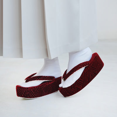 【ニコアンティーク 草履 単品 シャモン・フレイム 】 赤 モケット生地 成人式振袖や卒業式袴にも (5329612200)