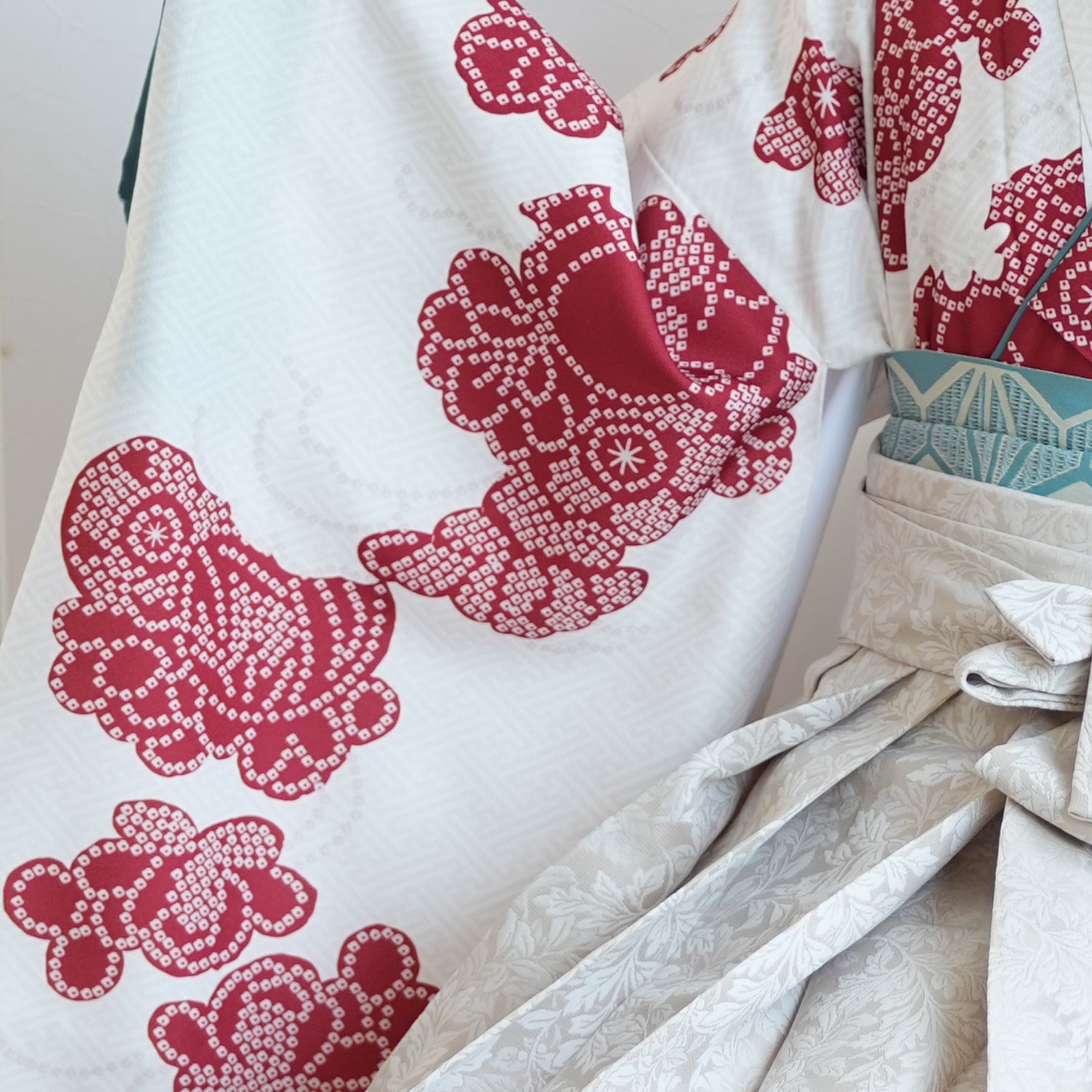 ひよこ商店オリジナル二尺袖着物・袴のセット。