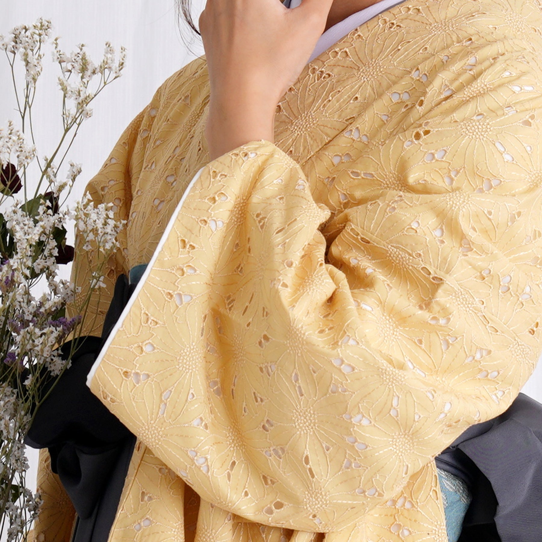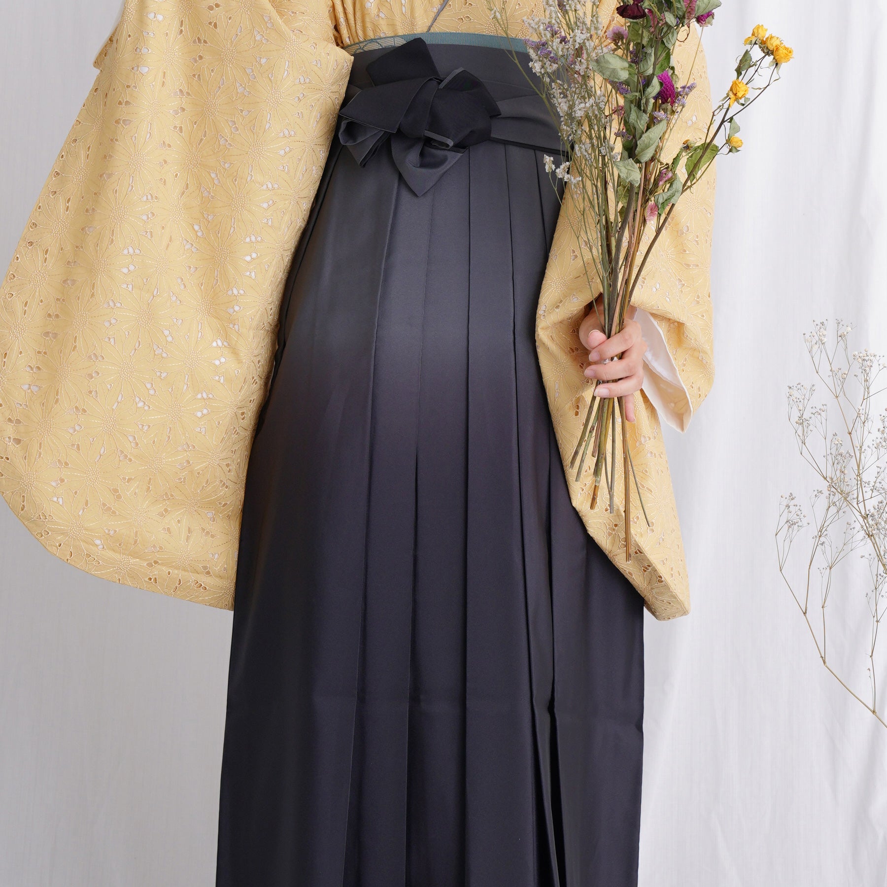 【リサイクル着物】 2尺袖着物 袴 2点セット 販売品 中古 USED  レース 花柄 黄色系  袴91cm(身長153-158cm)卒業式 大学生 (5182682611)【中古販売】