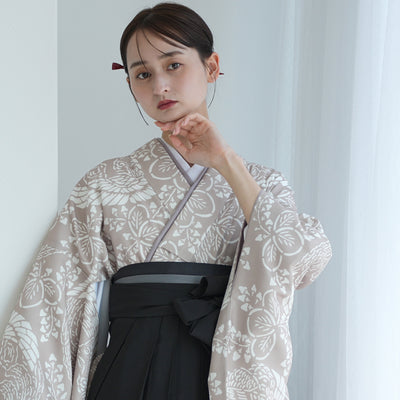 袴 2点セット 2尺袖着物 ひよこ商店 卒業式 販売 袴91cm(身長153-158cm) 半身 アイスグレー銀彩×グレージュ雪輪 重ね衿縫い付済 (5178721011)