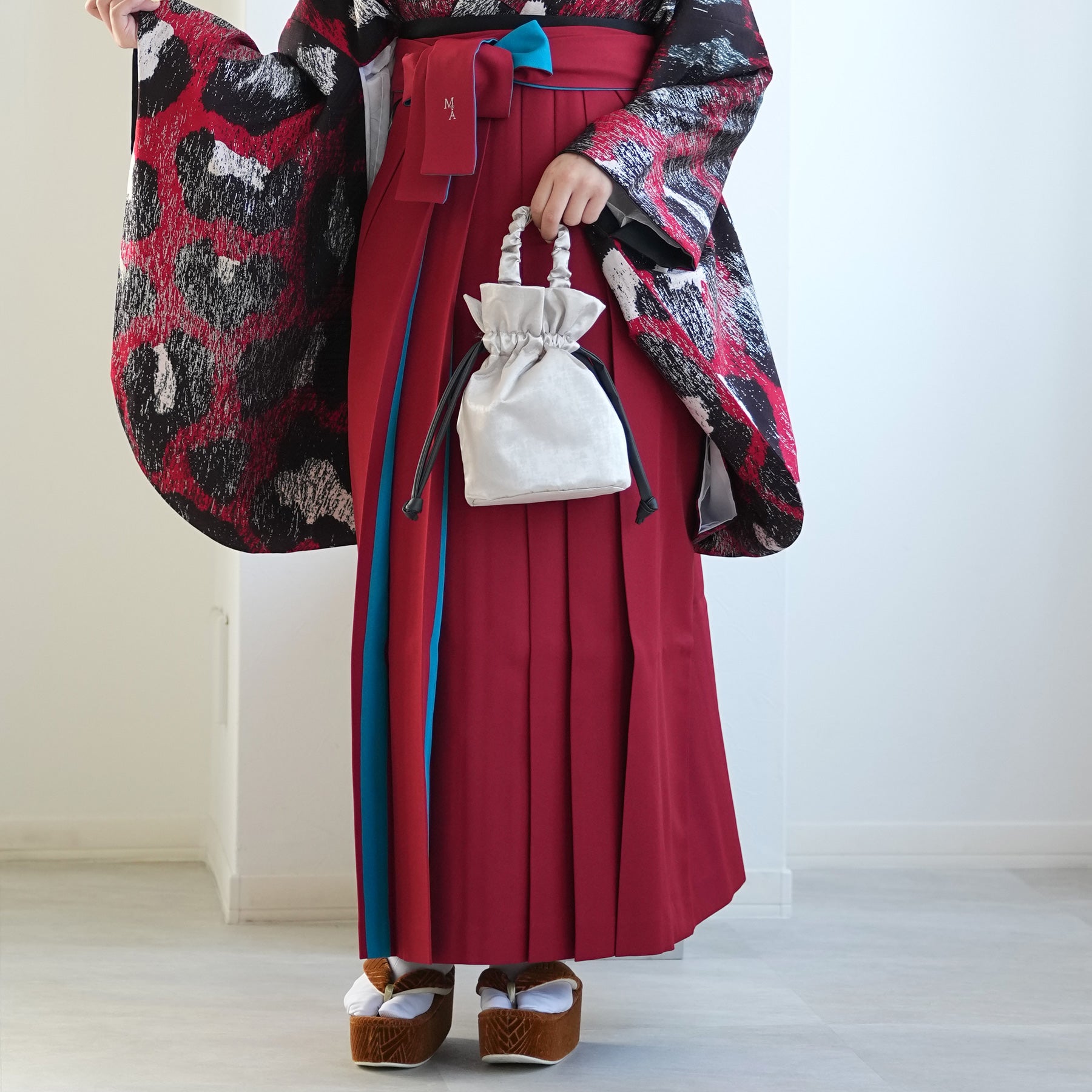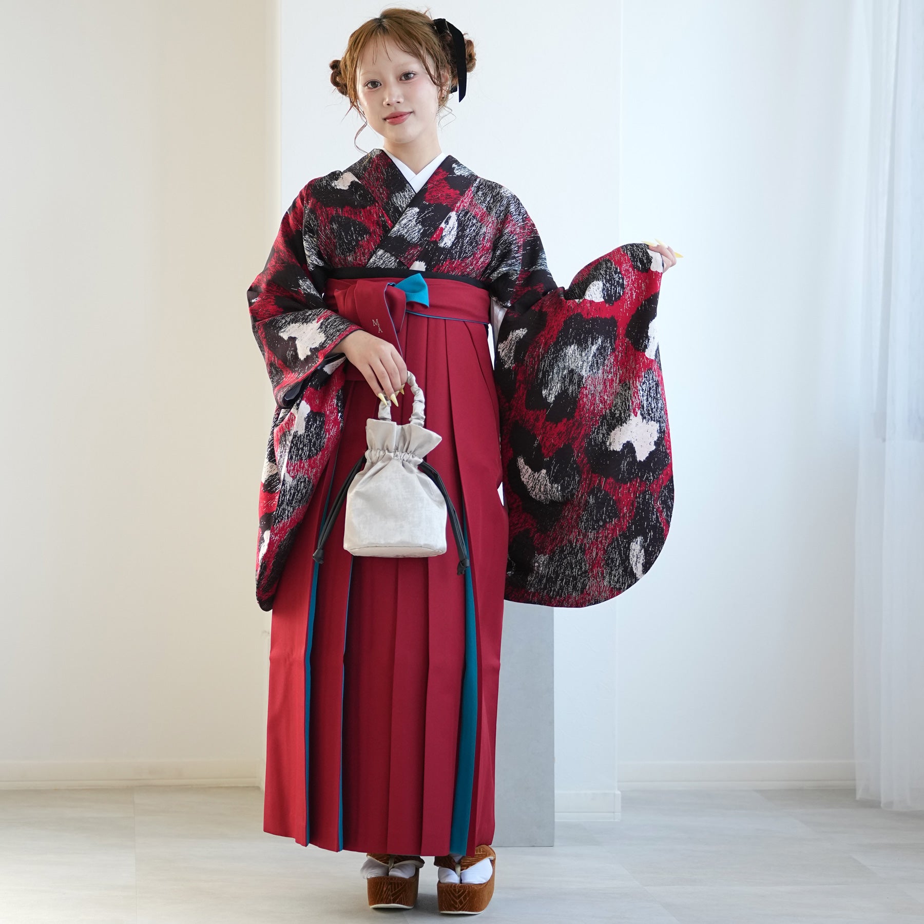 着物・袴・草履・バッグ・重ね襟(着物に縫い付済)・半巾帯・肌襦袢+長襦袢一体化インナー(白無地半襟付き)・前板・着付けベルト・ウエストベルト・腰ひも3本セット・伊達締め ・マジックベルト・衿芯・足袋(プレゼント)