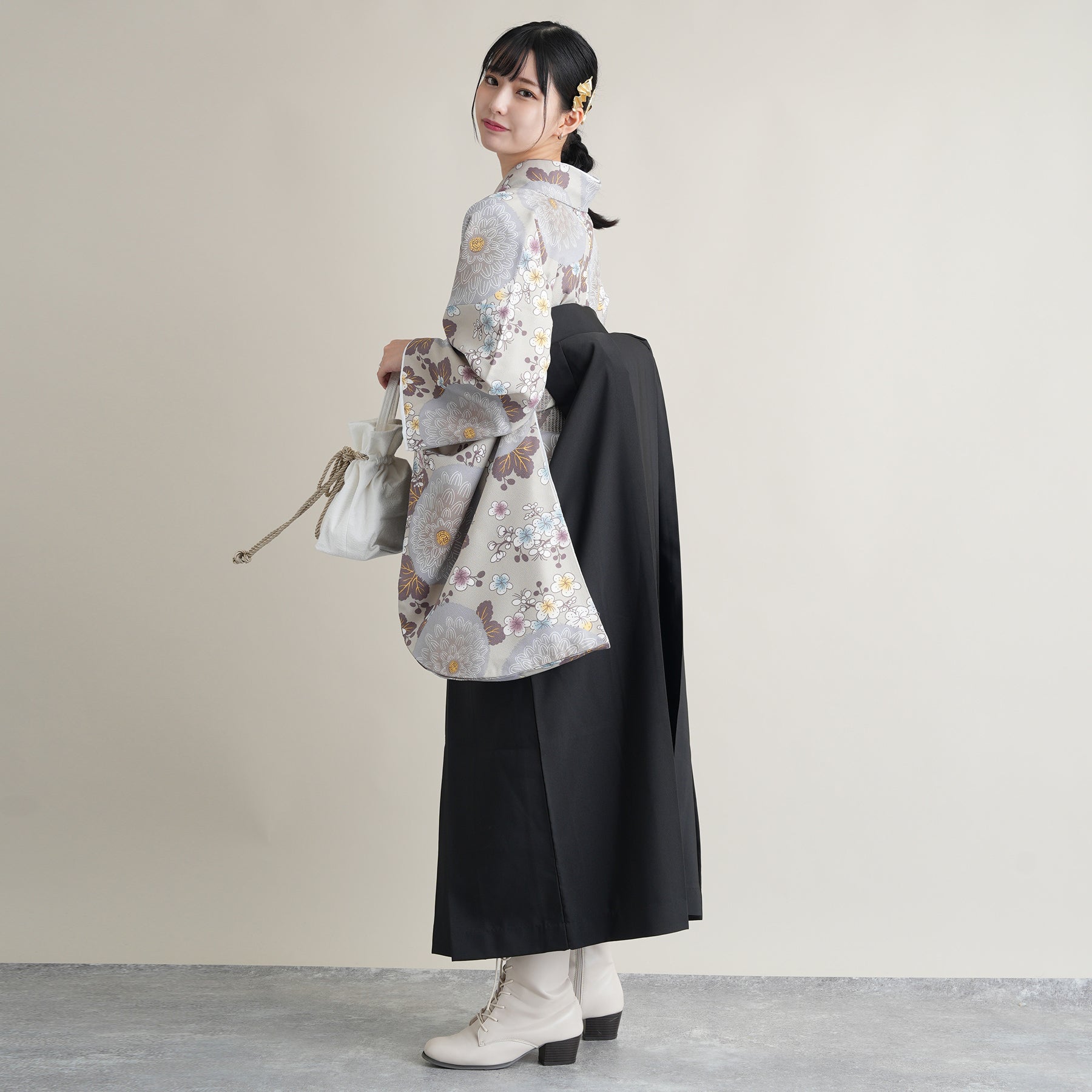 【リサイクル着物】 2尺袖着物 袴 2点セット 販売品 中古 USED  グレー 菊 袴91cm(身長153-158cm)卒業式 大学生 ひよこ商店(5182673513)【中古販売】