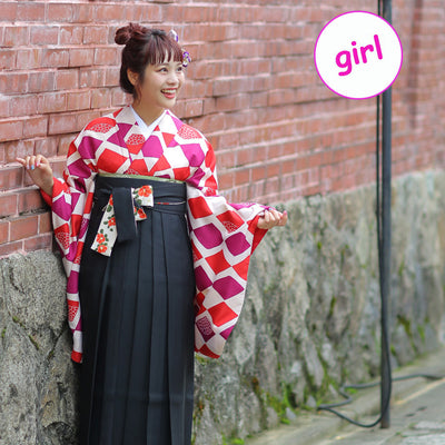 【リサイクル着物】着物単品 販売品 中古 USED 袴用 短丈 赤 紫 菱 ジュニア 小学生 卒業式 ひよこ商店(6751633400)【中古販売】
