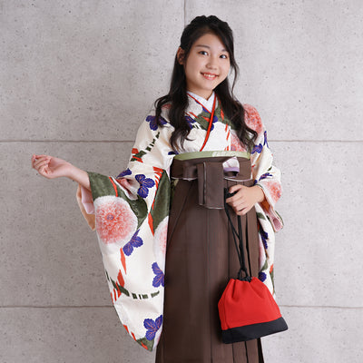 【レンタル】ひよこ商店 2尺袖 袴 15点セット 袴83cm(身長138-145cm)袴87cm(身長145-152cm) レトロモダン系 菊 アイボリー系(1420673203)