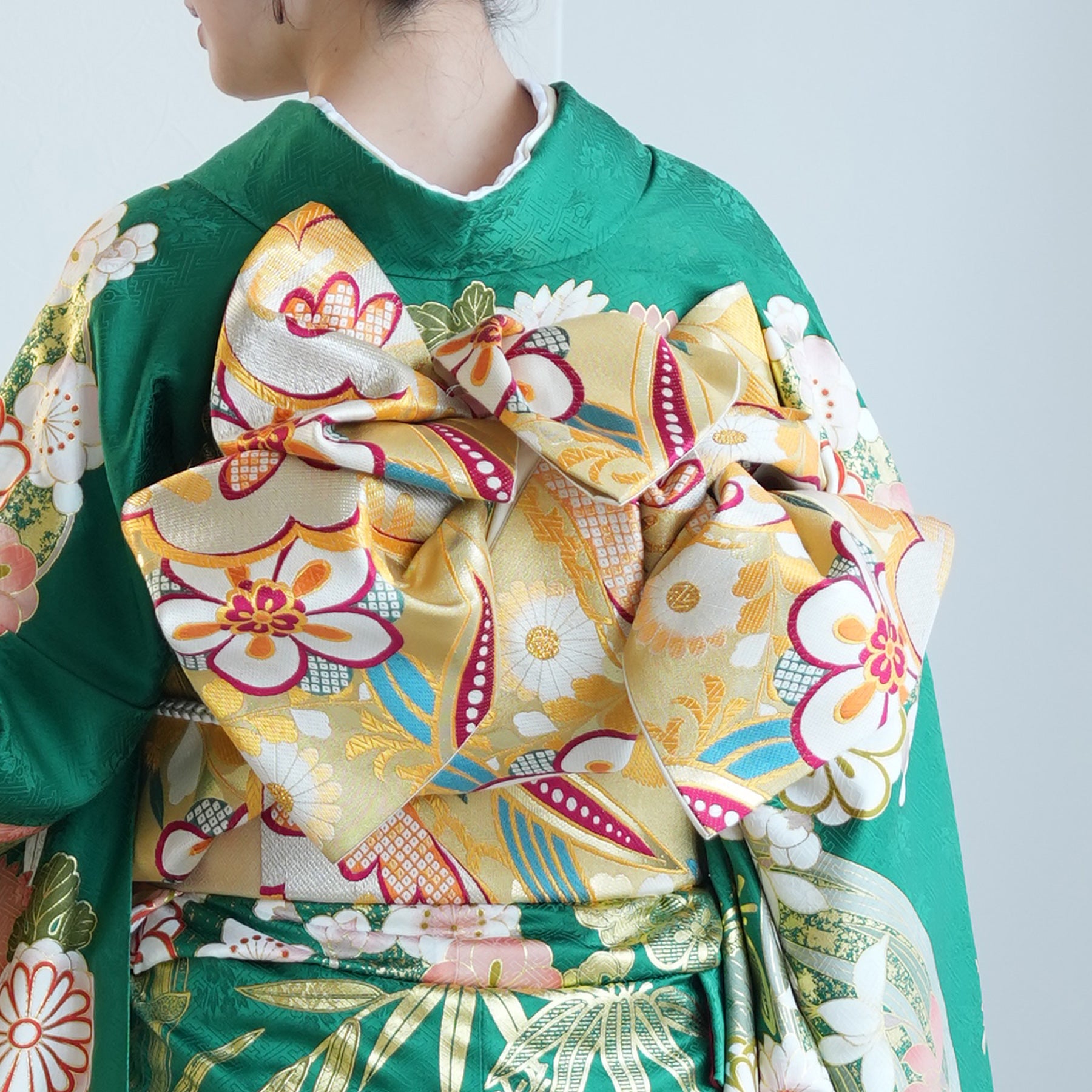 振袖・袋帯・草履・バッグ・長襦袢・帯〆・帯揚げ・重ね衿・肌襦袢・前板・着付けベルト・ウエストベルト・三重仮紐・腰ひも3本セット・帯まくら・伊達締め ・マジックベルト・衿芯・足袋(プレゼント)