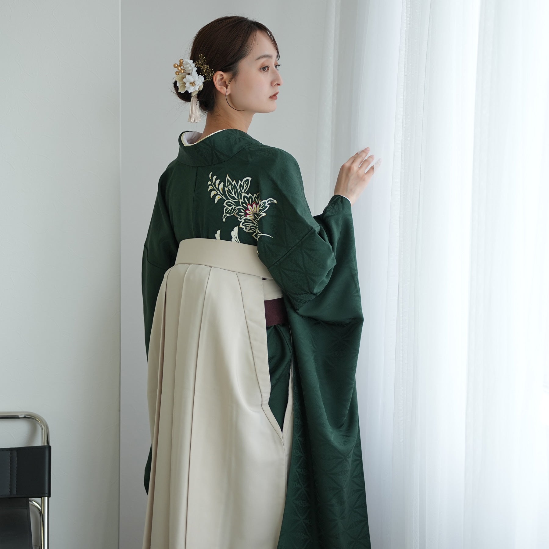 振袖着物と袴の組み合わせで華やかな印象に。