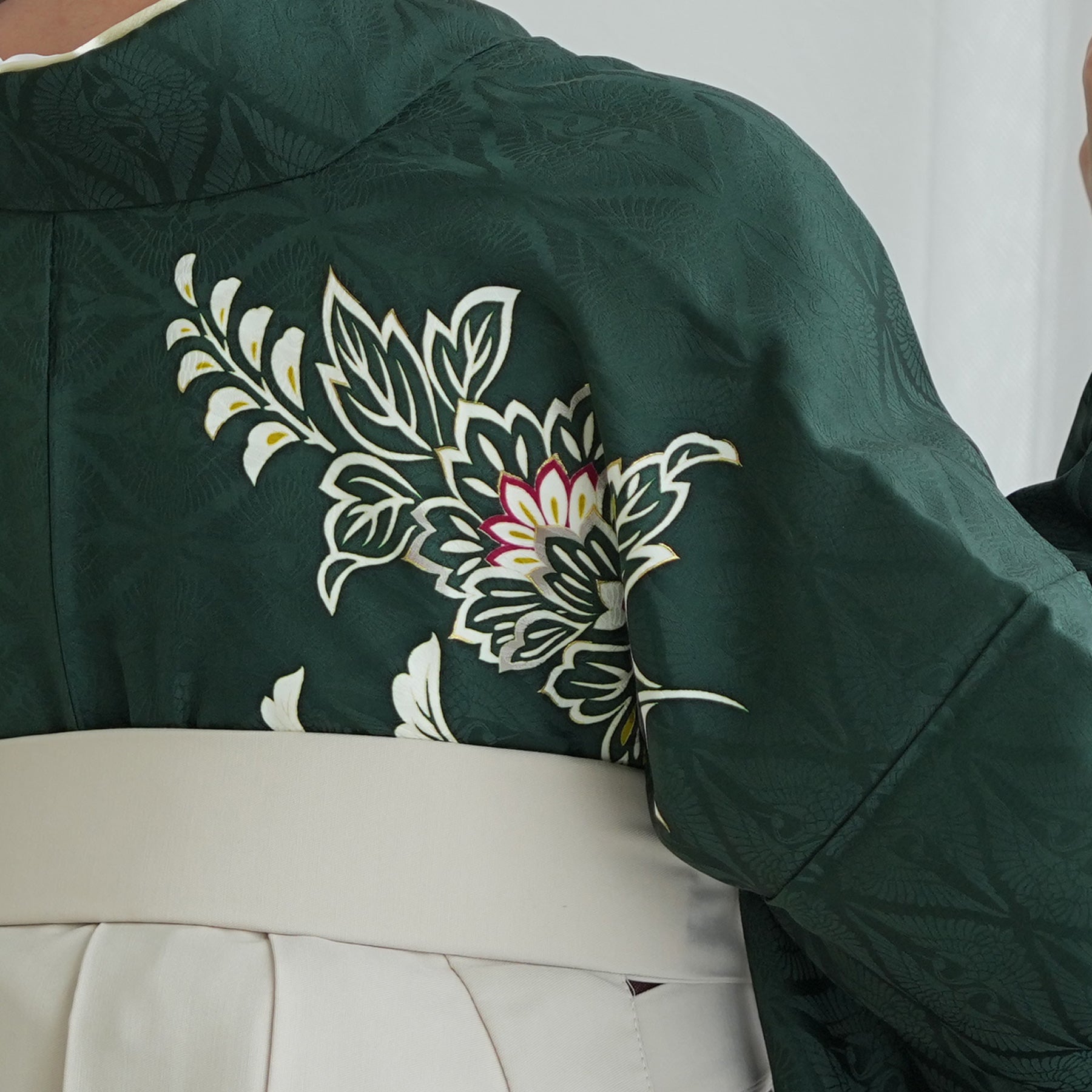 【レンタル】 袴 18点セット 暗緑の鶴菱紋 正絹振袖着物 袴91cm(身長153-158cm) ブーツ着用時165cmまで適応  卒業式 大学生にも(1014651211)