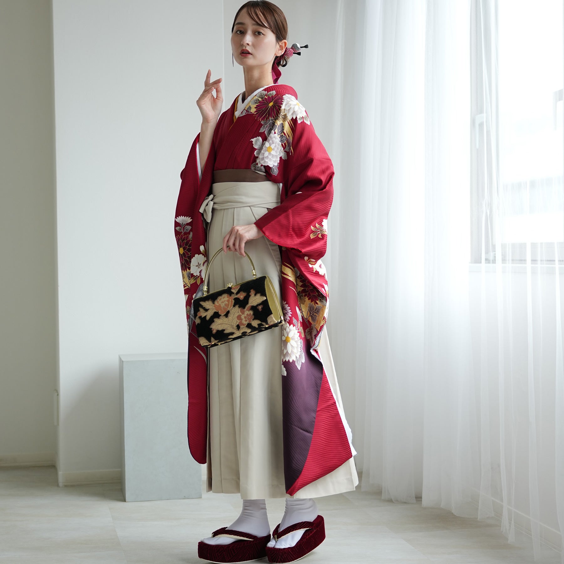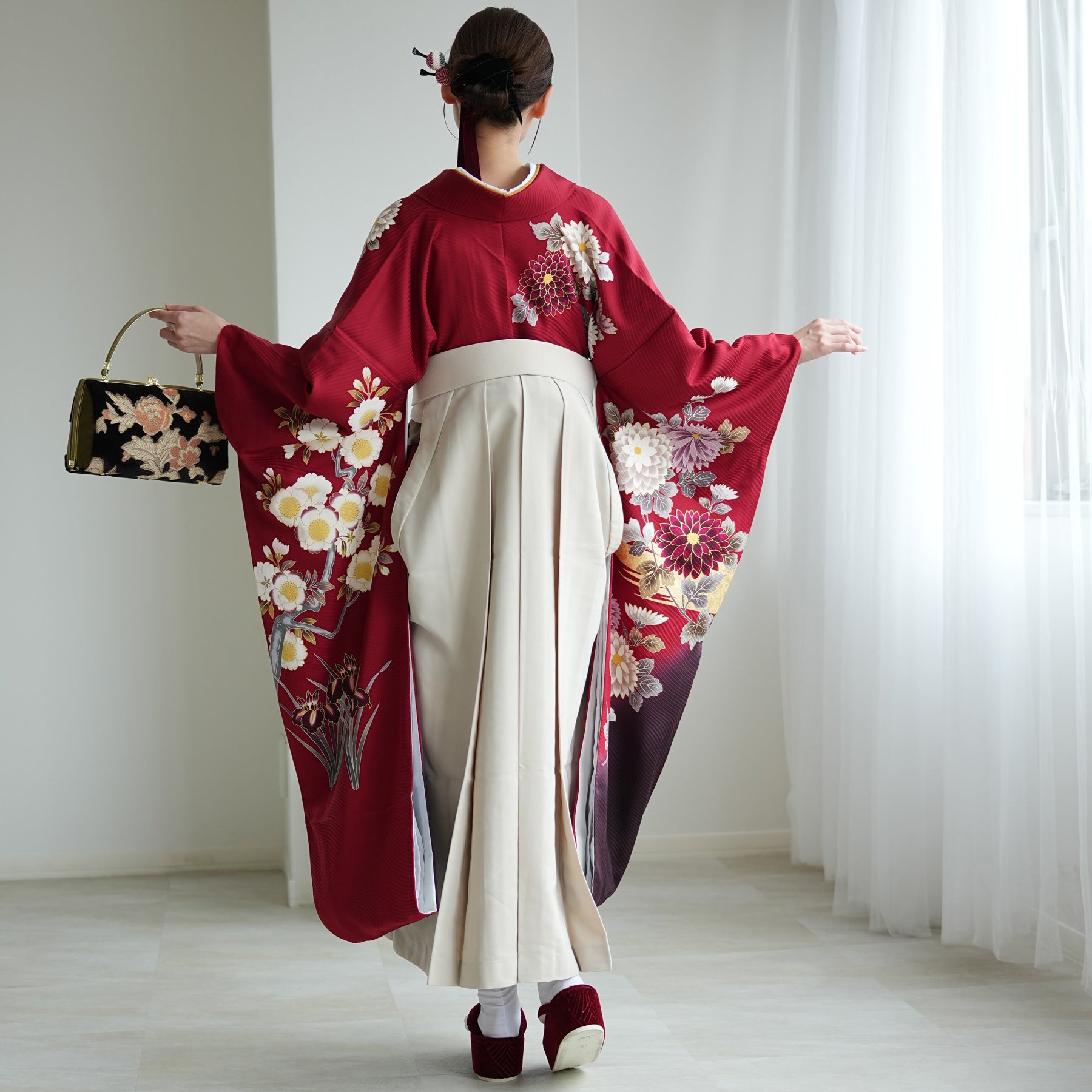 振袖着物と袴の組み合わせで華やかな印象に。