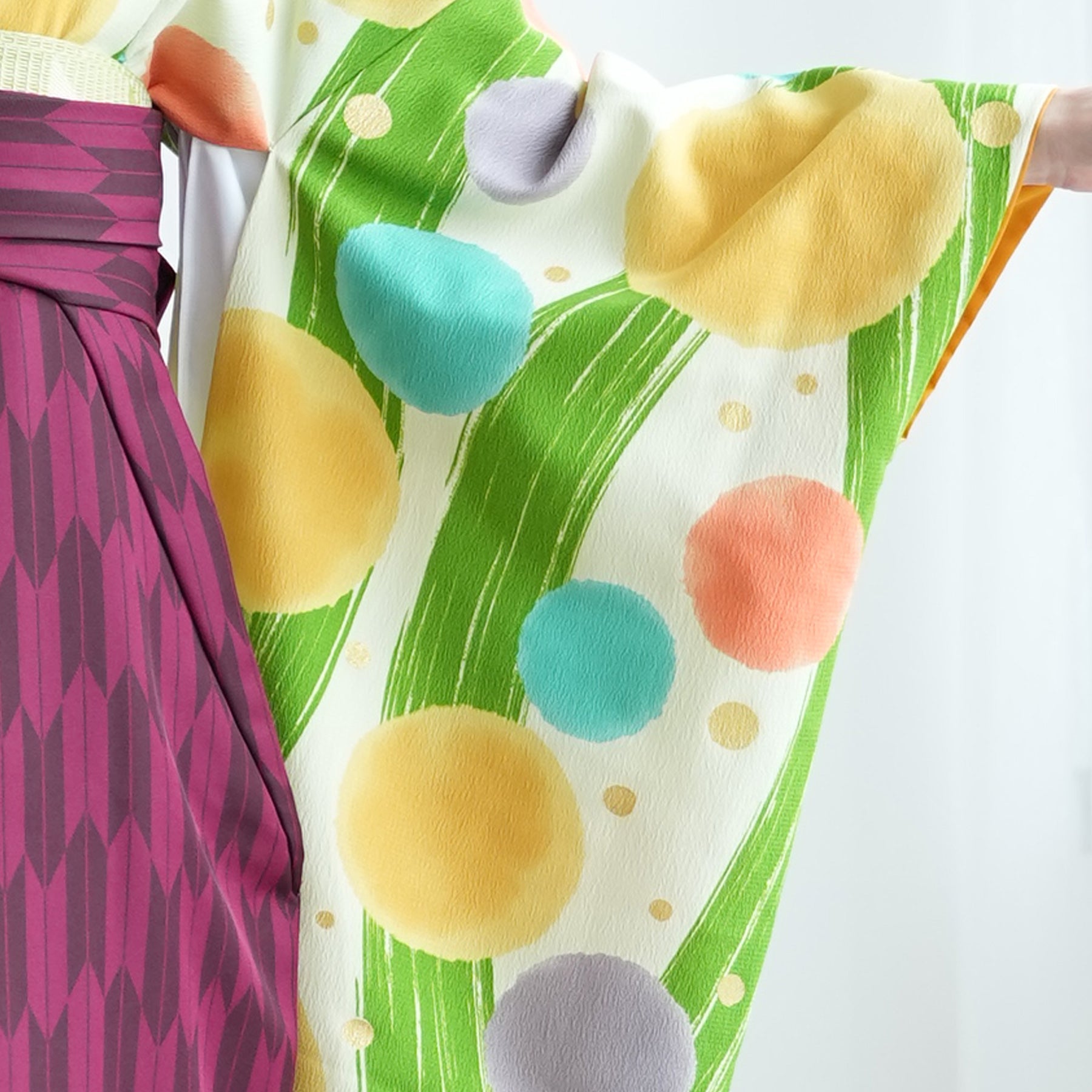 ふわふわと浮かぶシャボン玉がかわいらしいお着物。