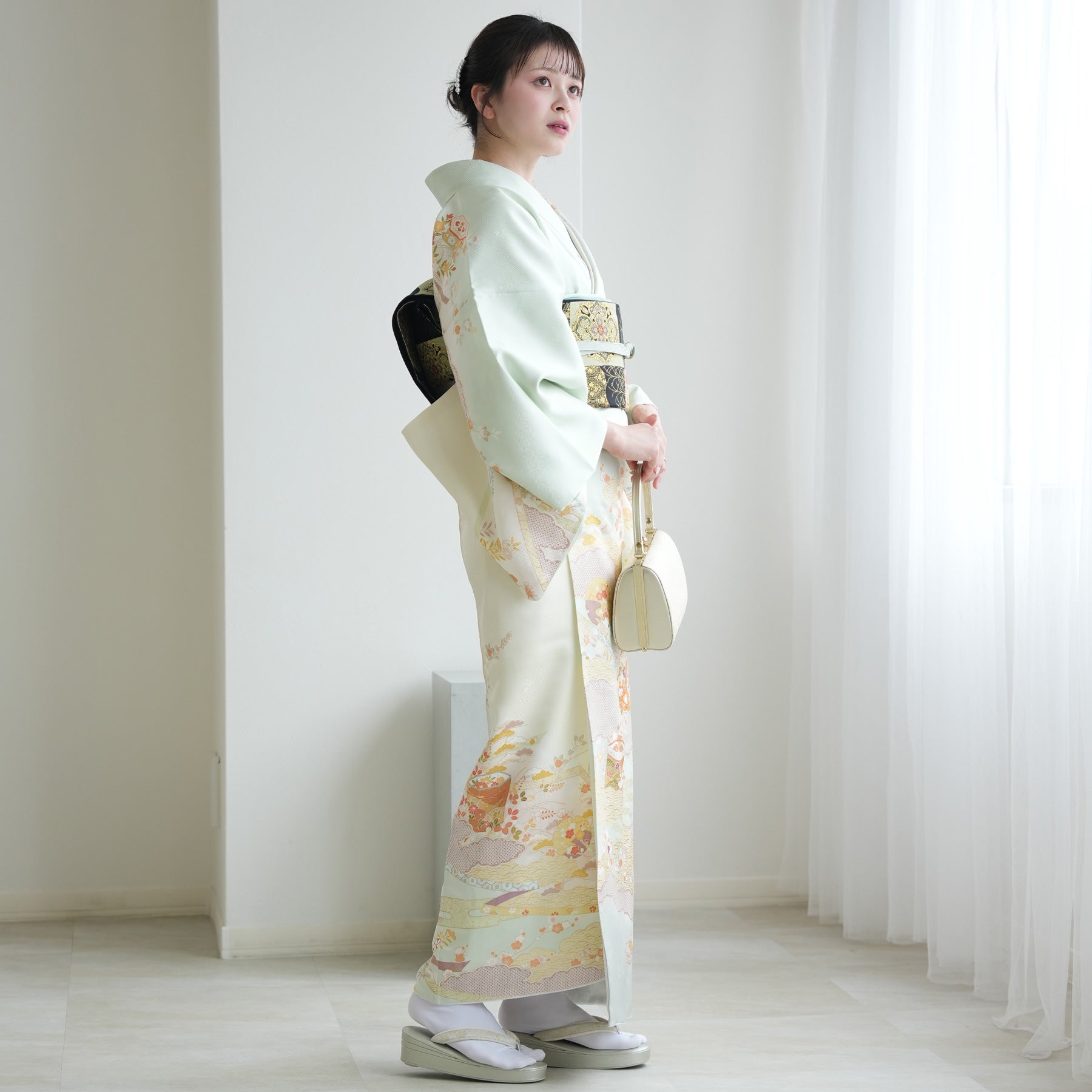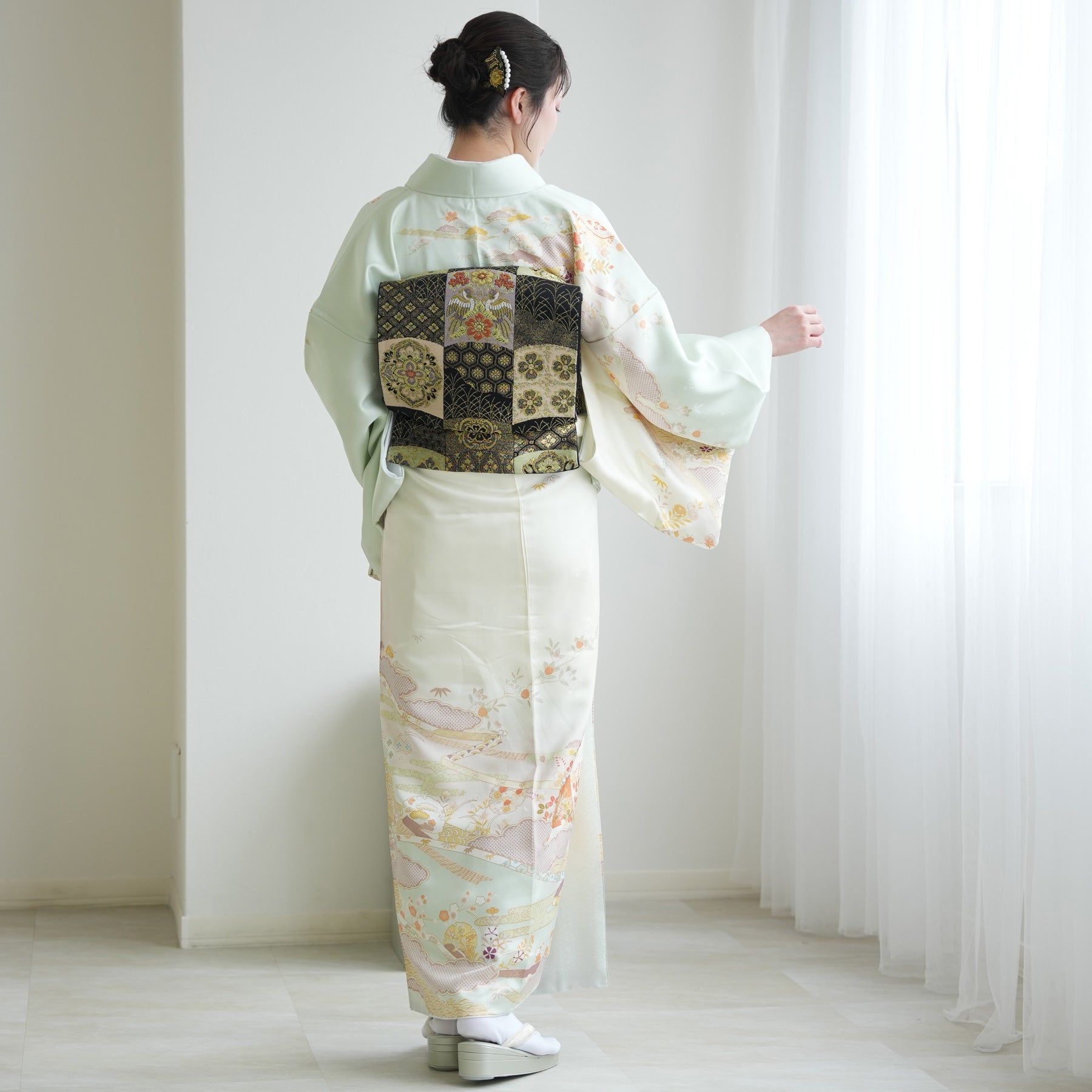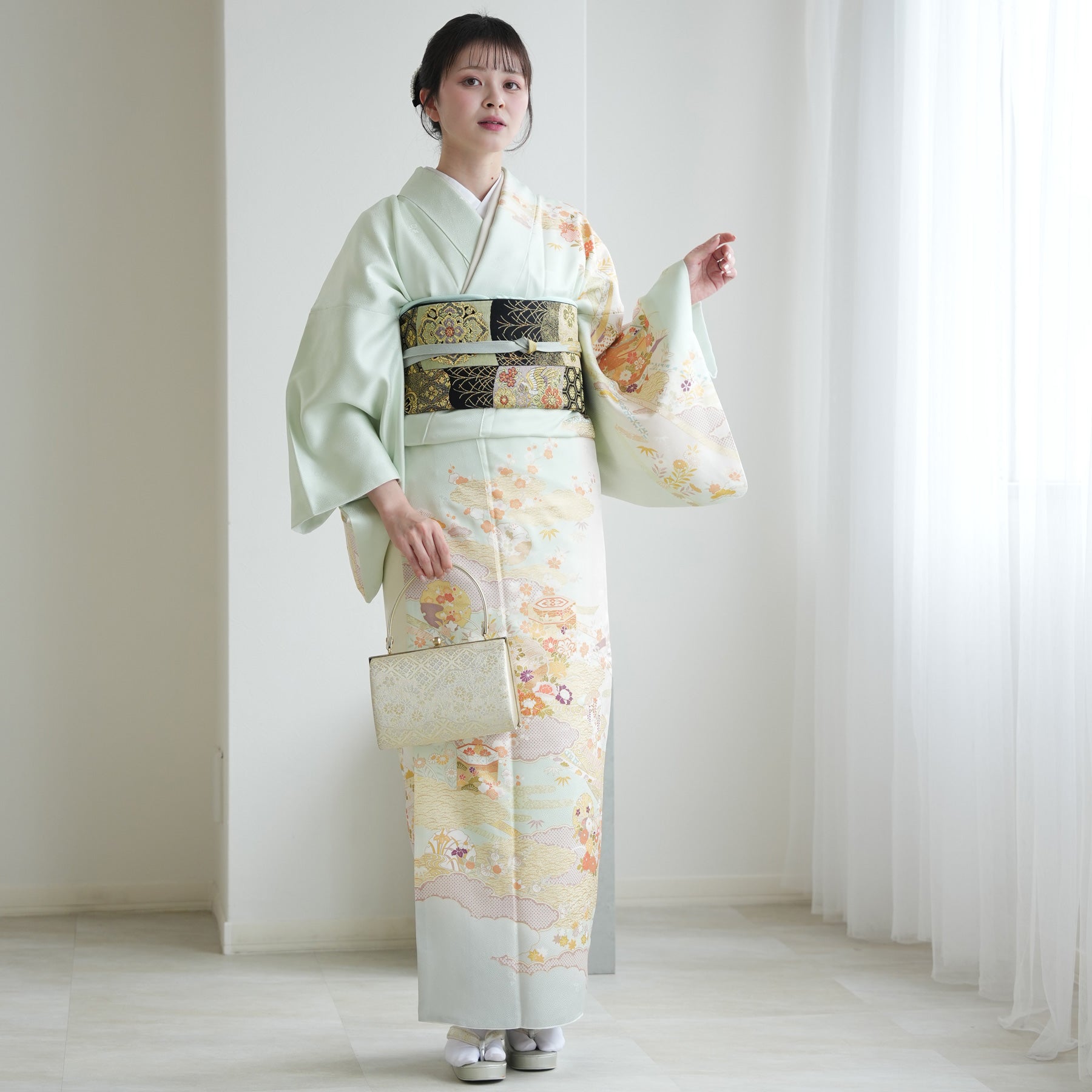 着物・袋帯・草履・バッグ・長襦袢・帯〆・帯揚げ・重ね衿・肌襦袢・前板・着付けベルト・ウエストベルト・腰ひも3本セット・帯まくら・伊達締め・マジックベルト・衿芯・足袋(プレゼント)