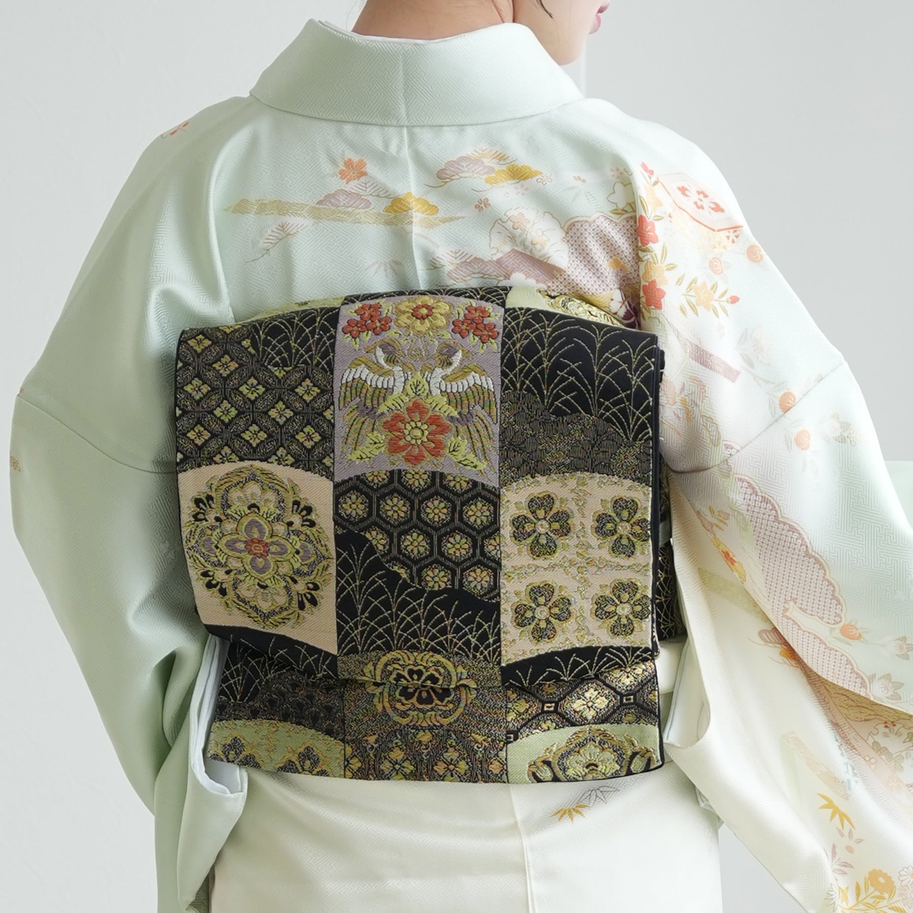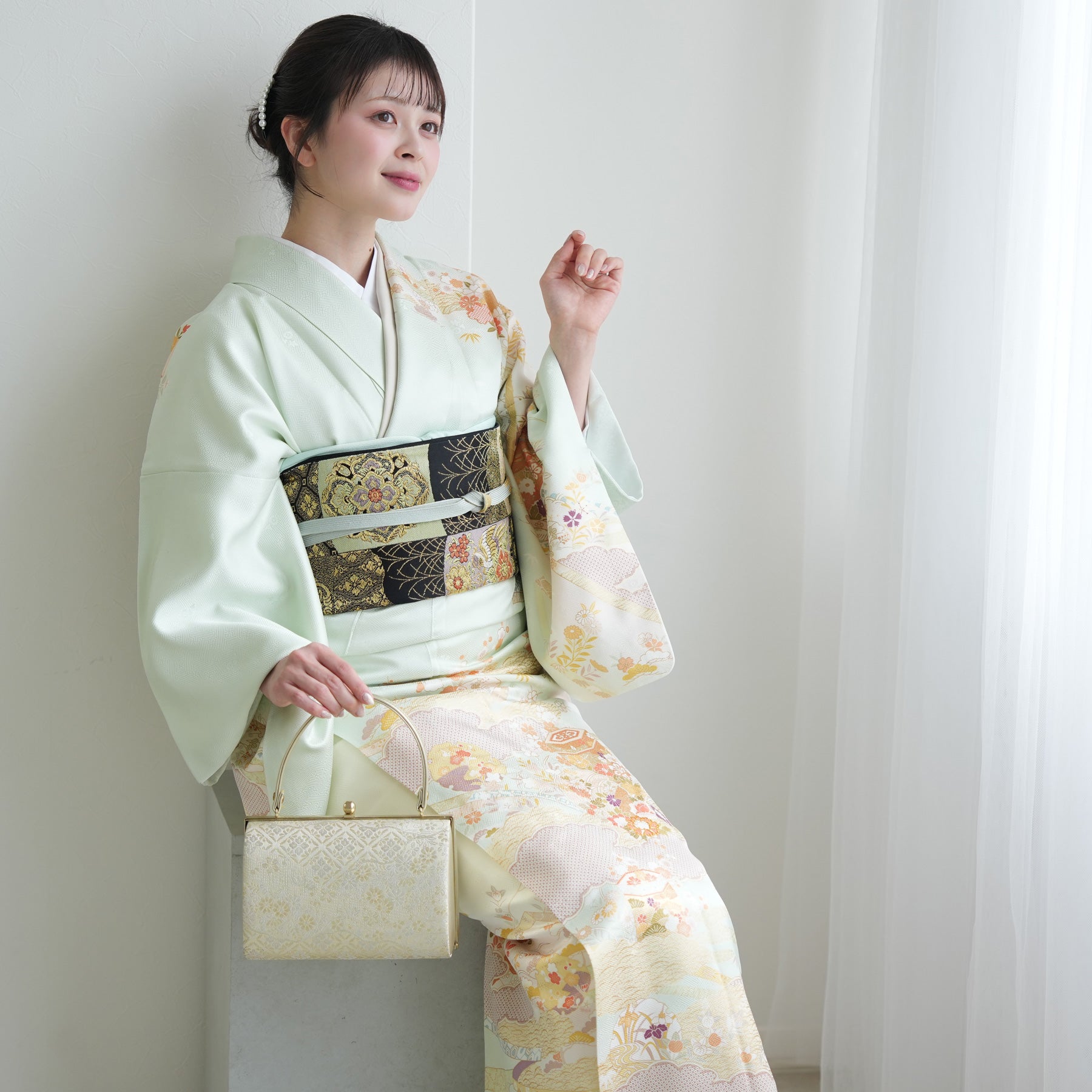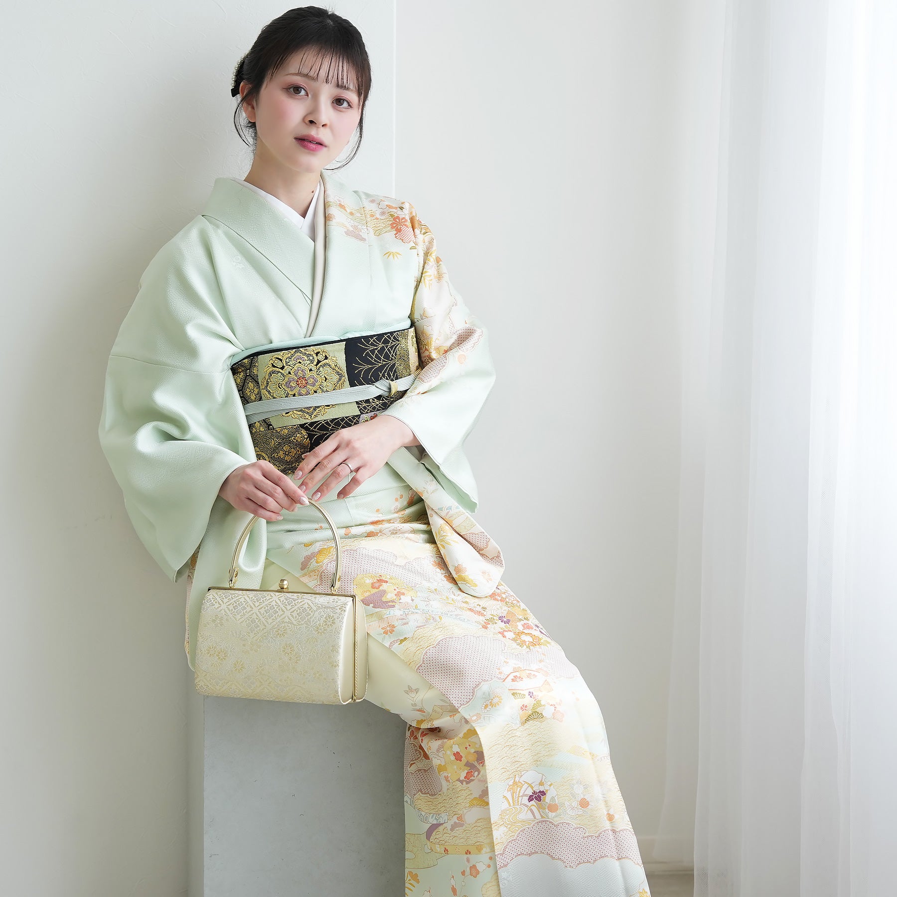 着物・袋帯・草履・バッグ・長襦袢・帯〆・帯揚げ・重ね衿・肌襦袢・前板・着付けベルト・ウエストベルト・腰ひも3本セット・帯まくら・伊達締め・マジックベルト・衿芯・足袋(プレゼント)