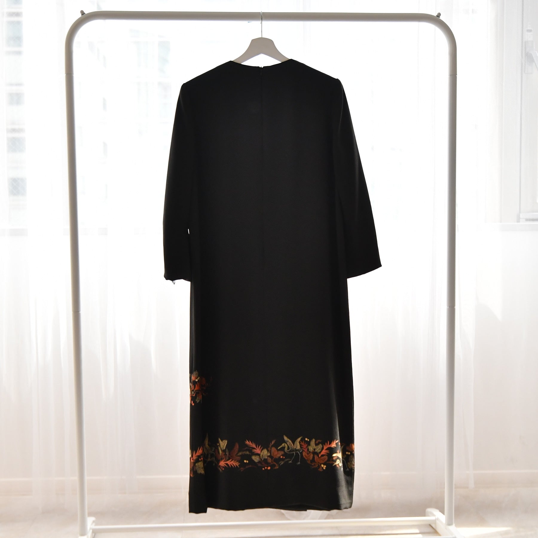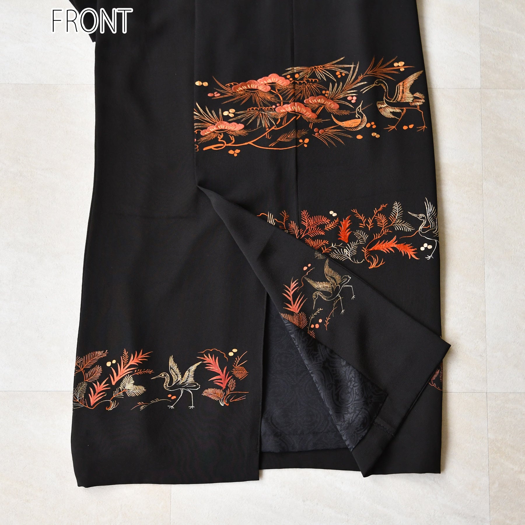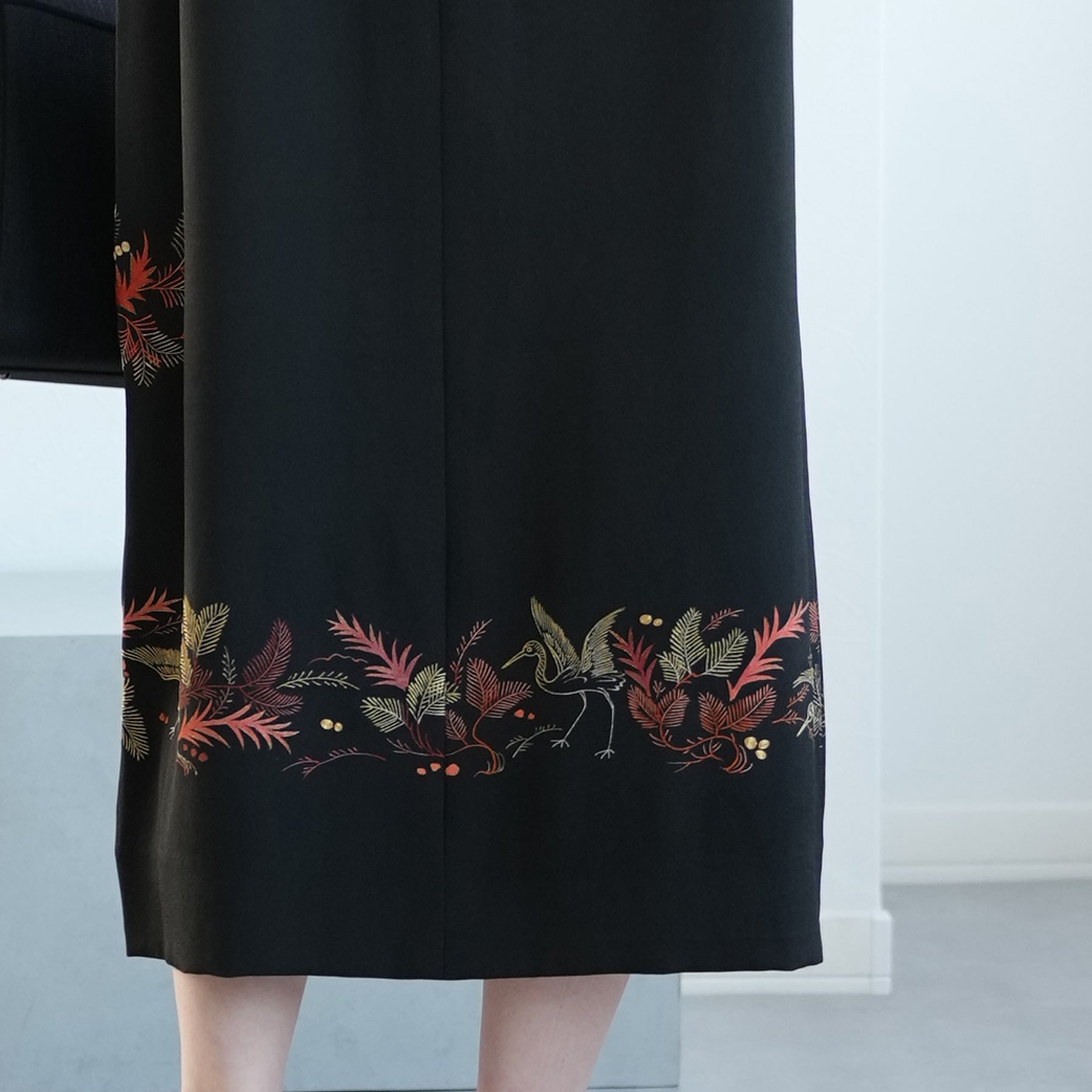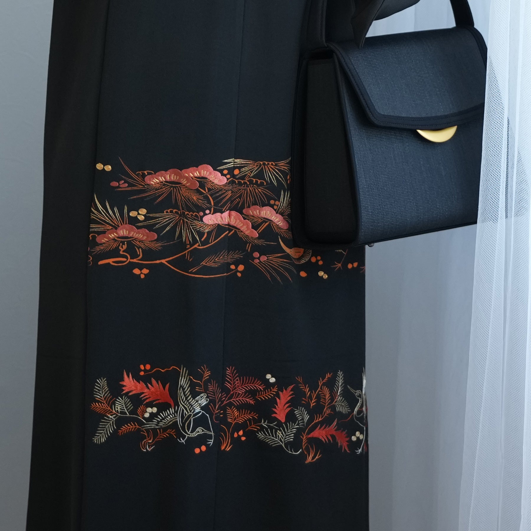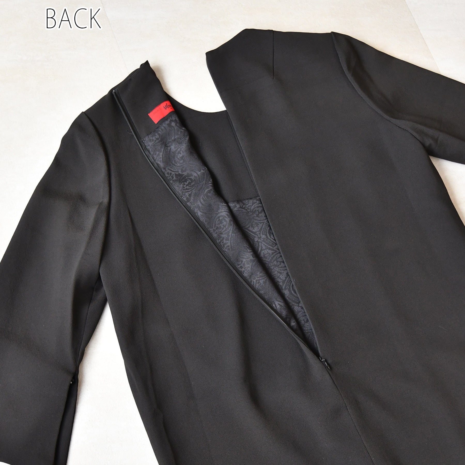 日本の伝統衣装である留袖の美しさをそのままに、洋装として仕立てることで、着物に引けを取らない格調と華やかさを実現しました。