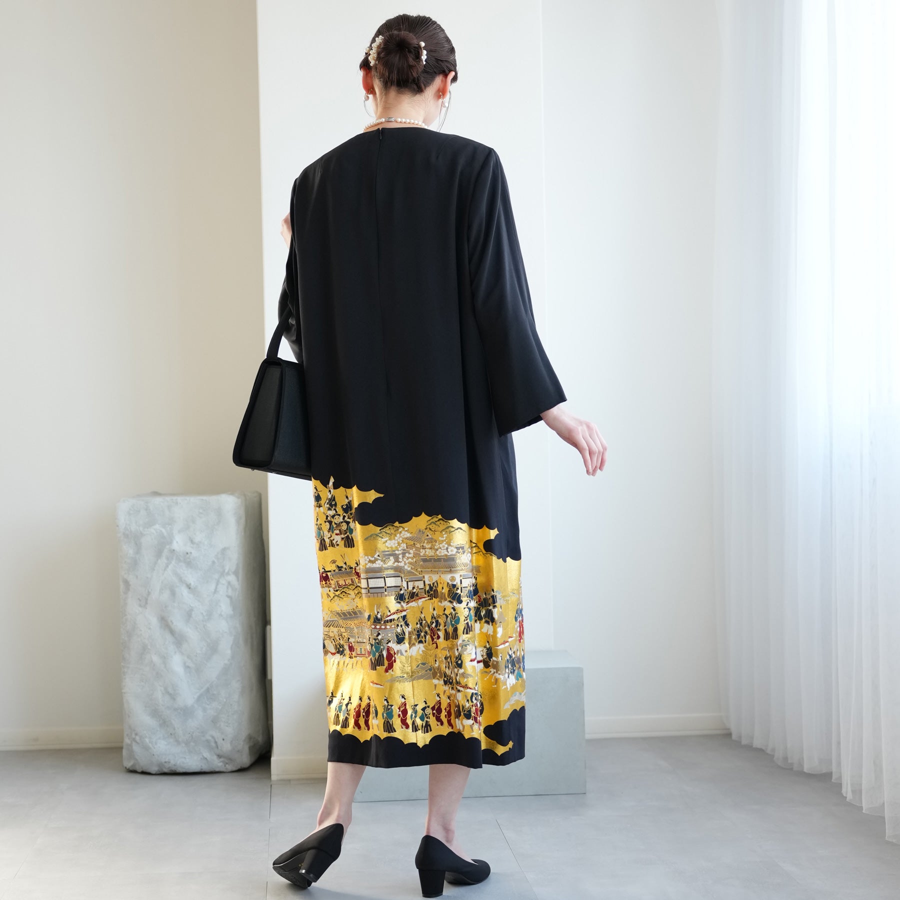 格式高い黒留袖をドレスにリメイクした気品あふれる一着。