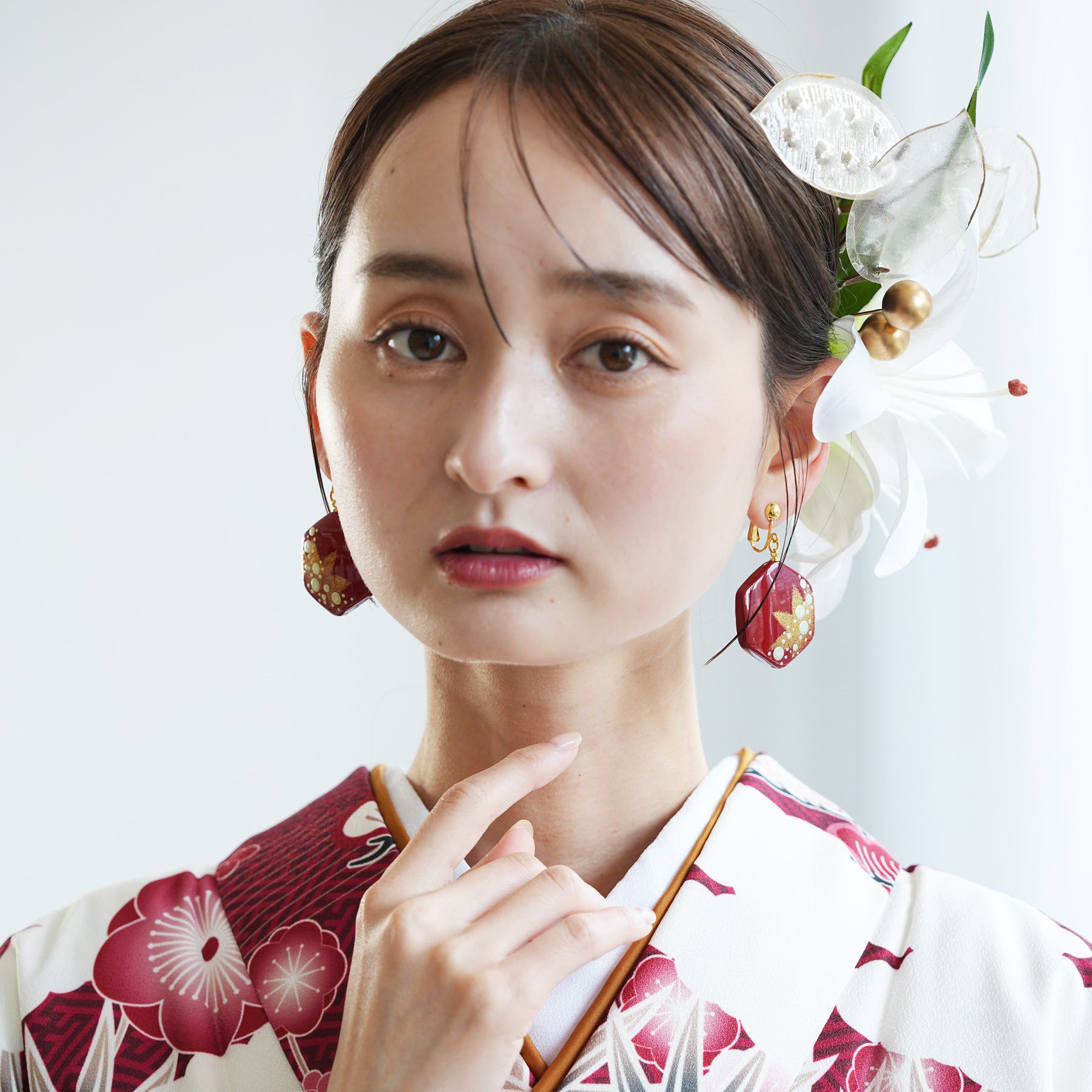 まるで和の美を閉じ込めたような優雅なデザインが、顔まわりを華やかに彩ります。