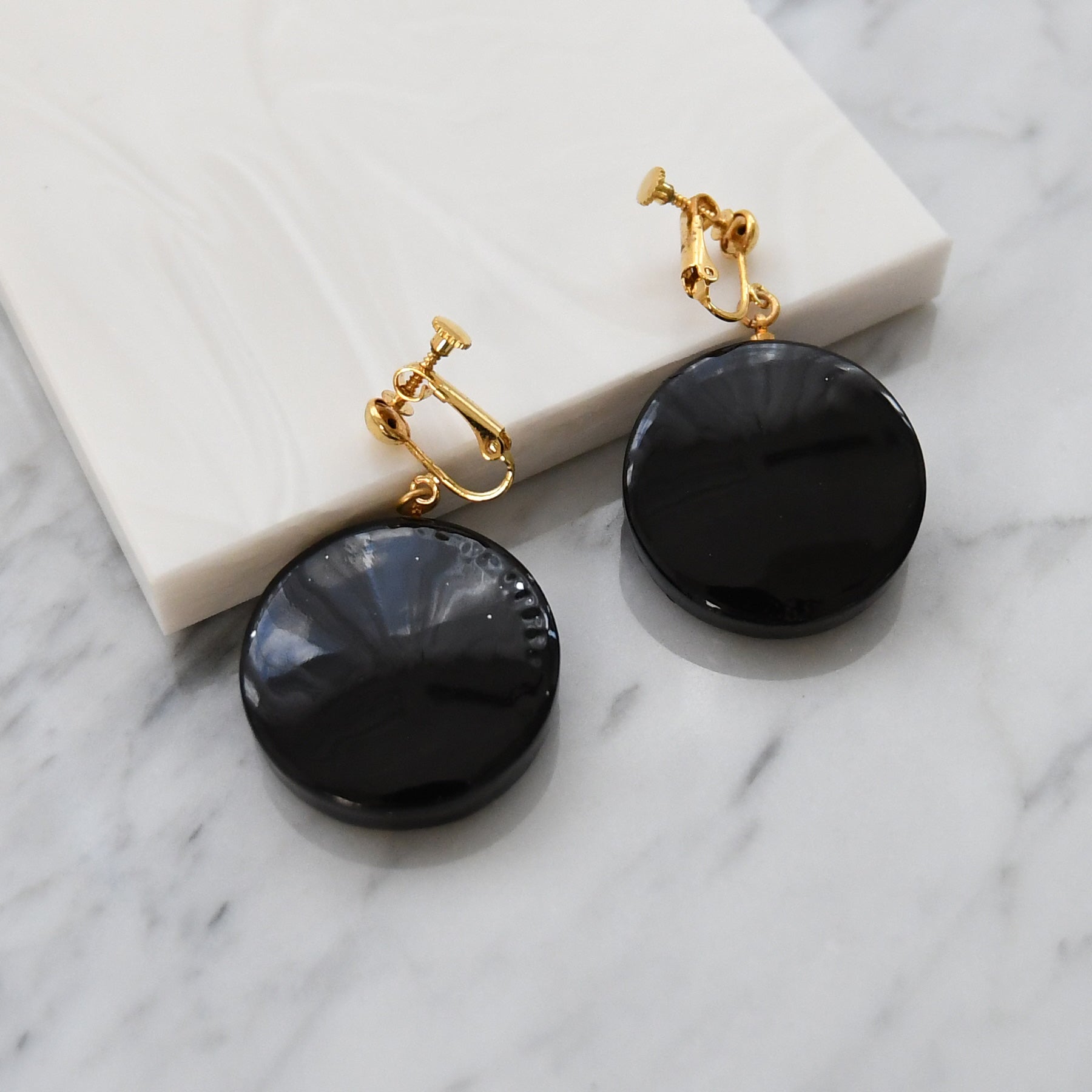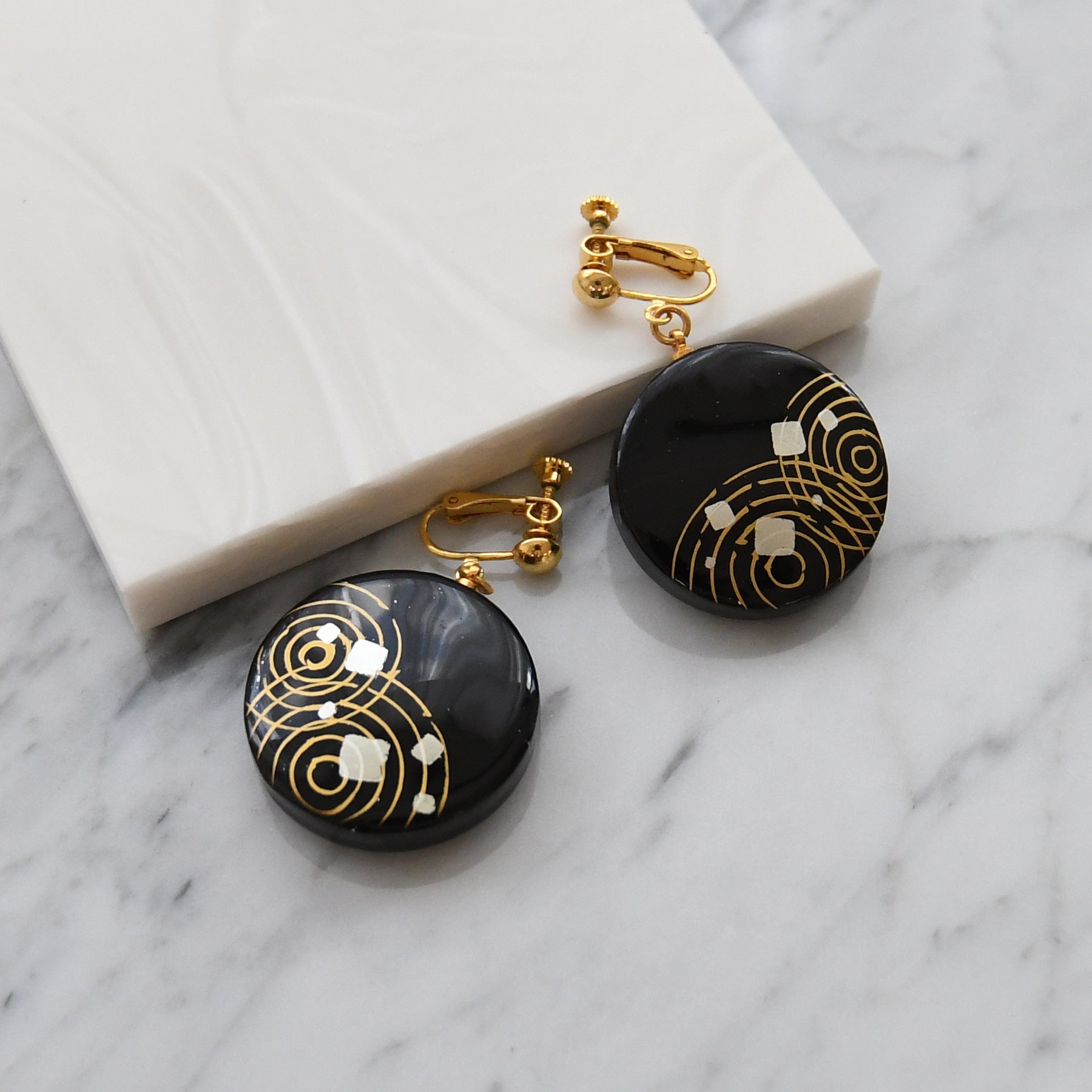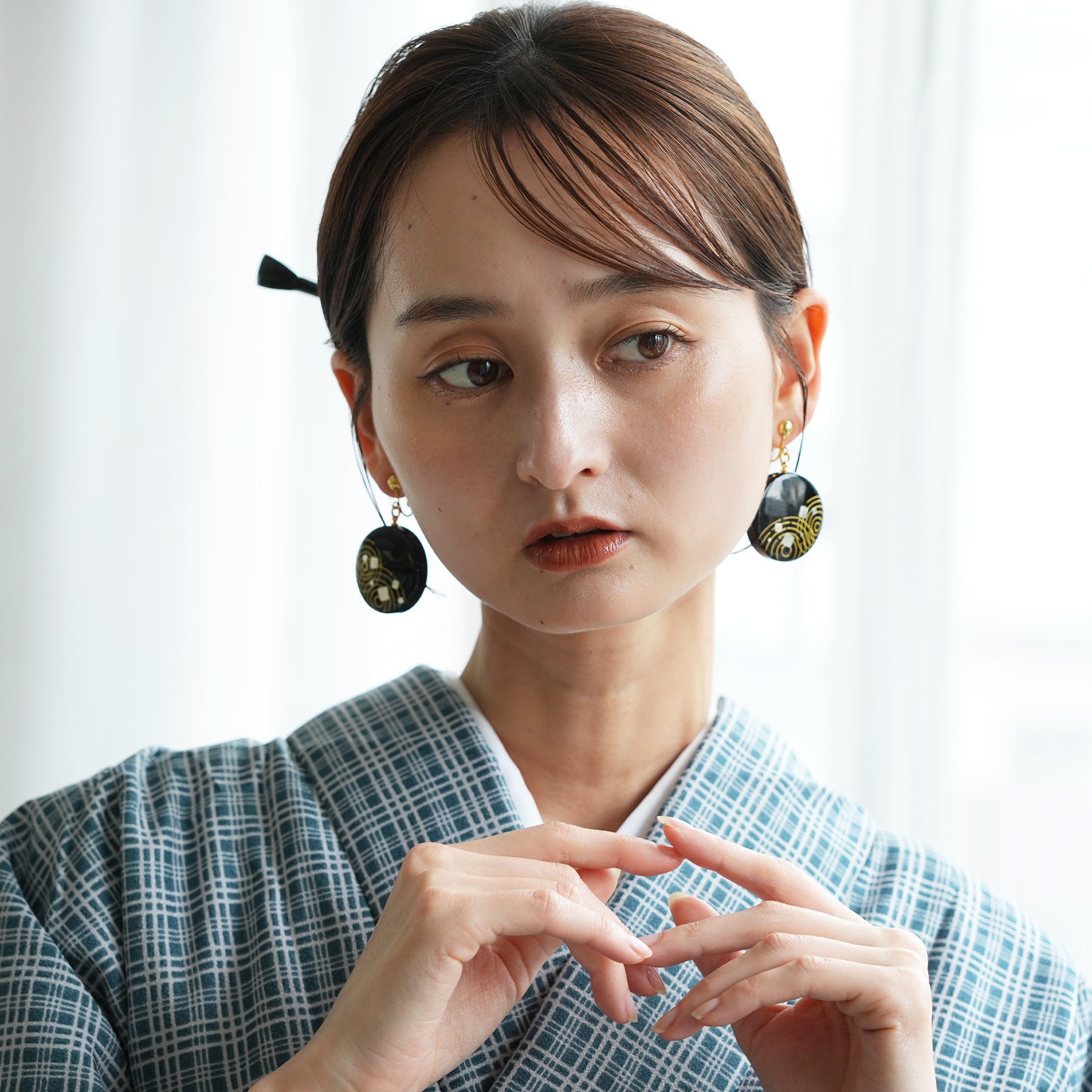 深みのある黒色に、金箔の輝きを添えたイヤリング。