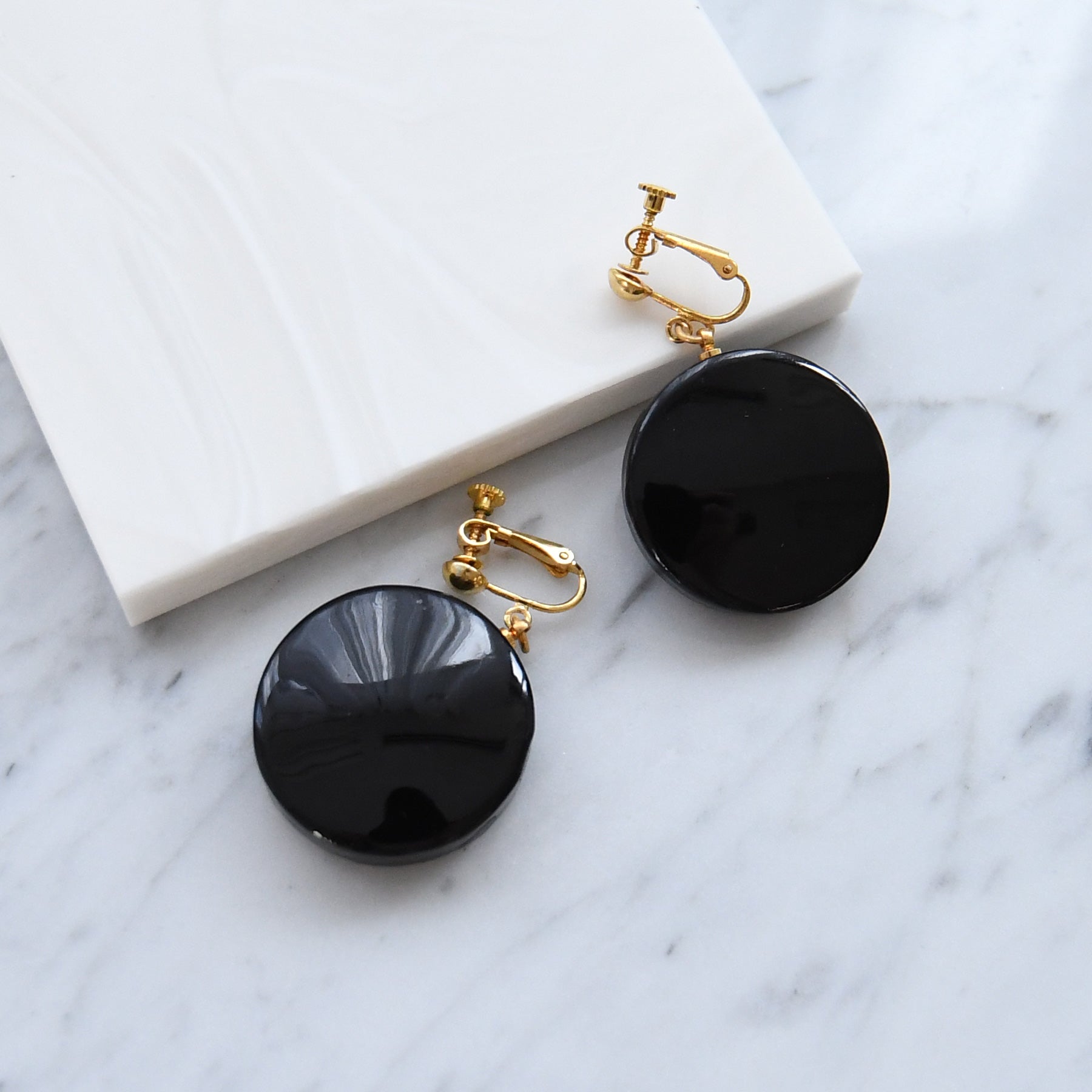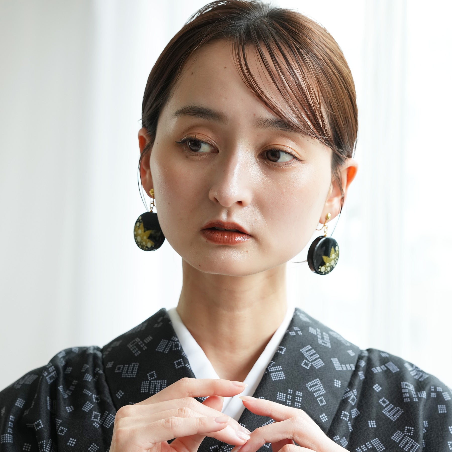 深みのある黒色に、金箔の輝きを添えたイヤリング。
