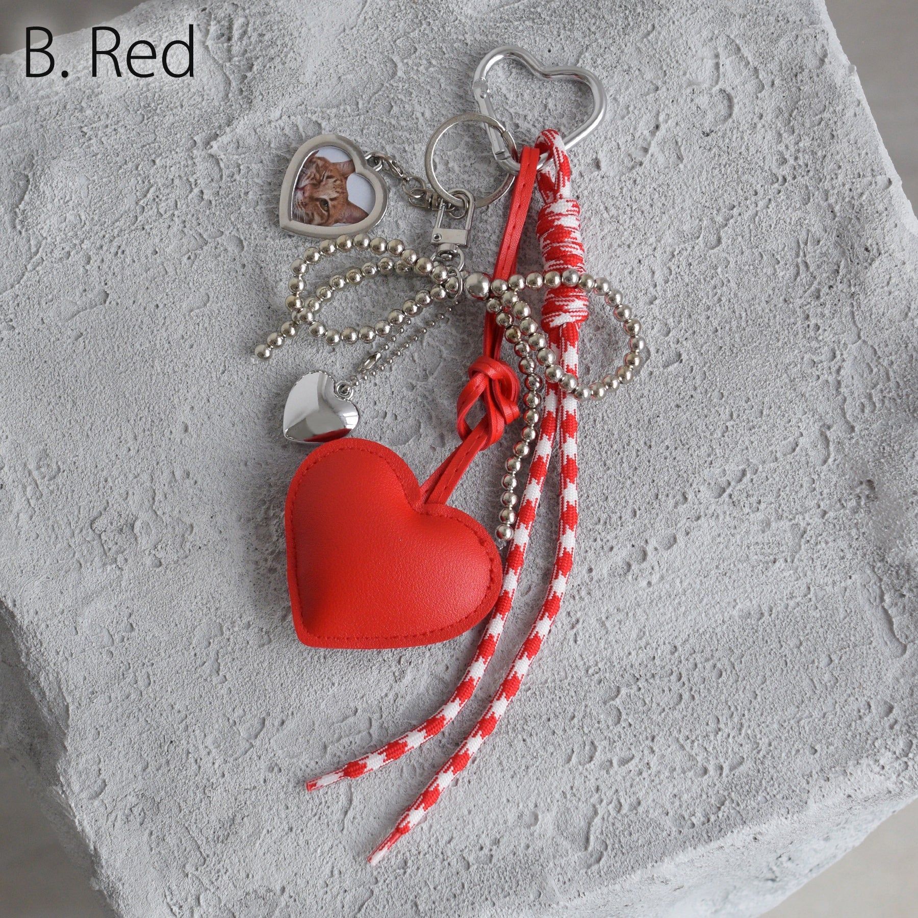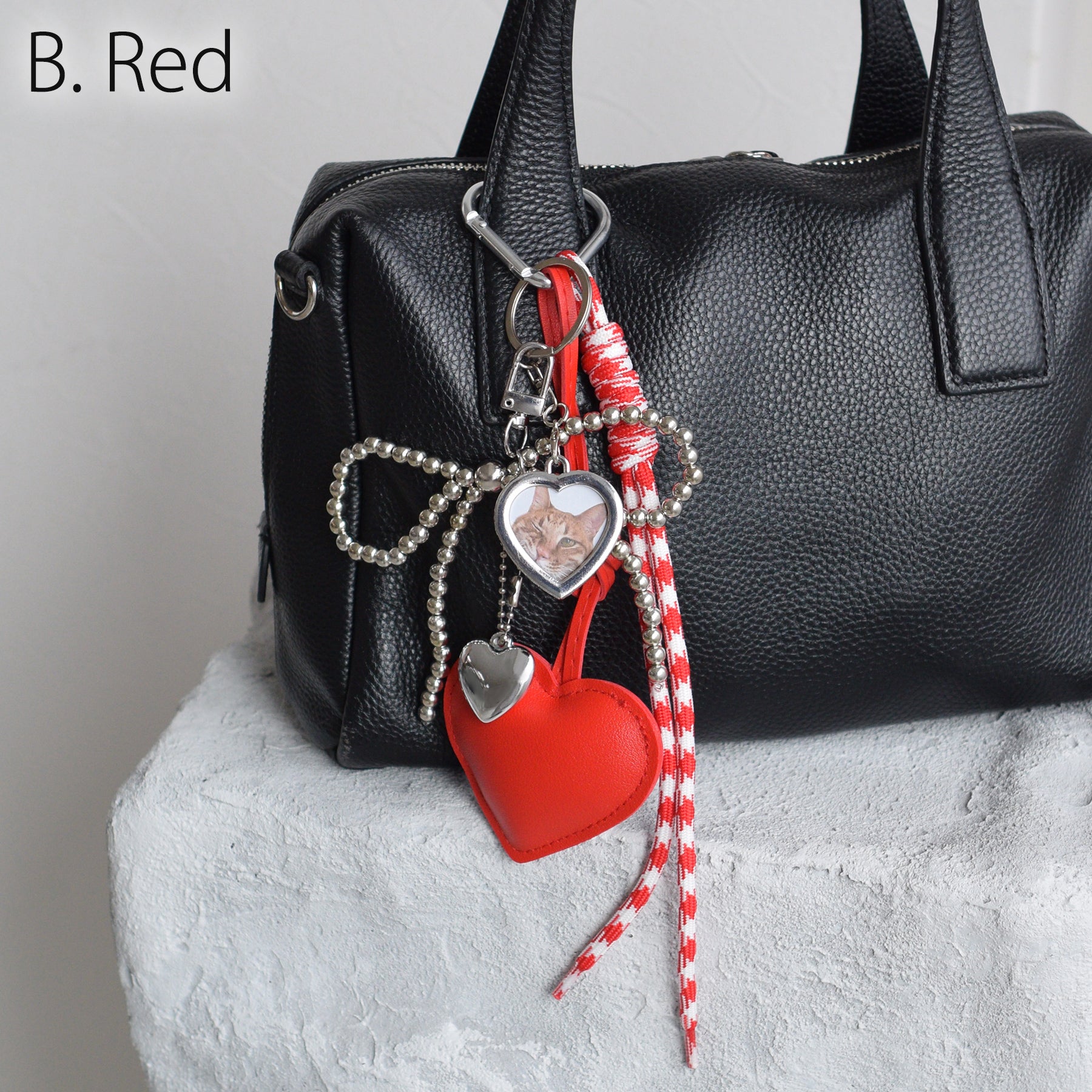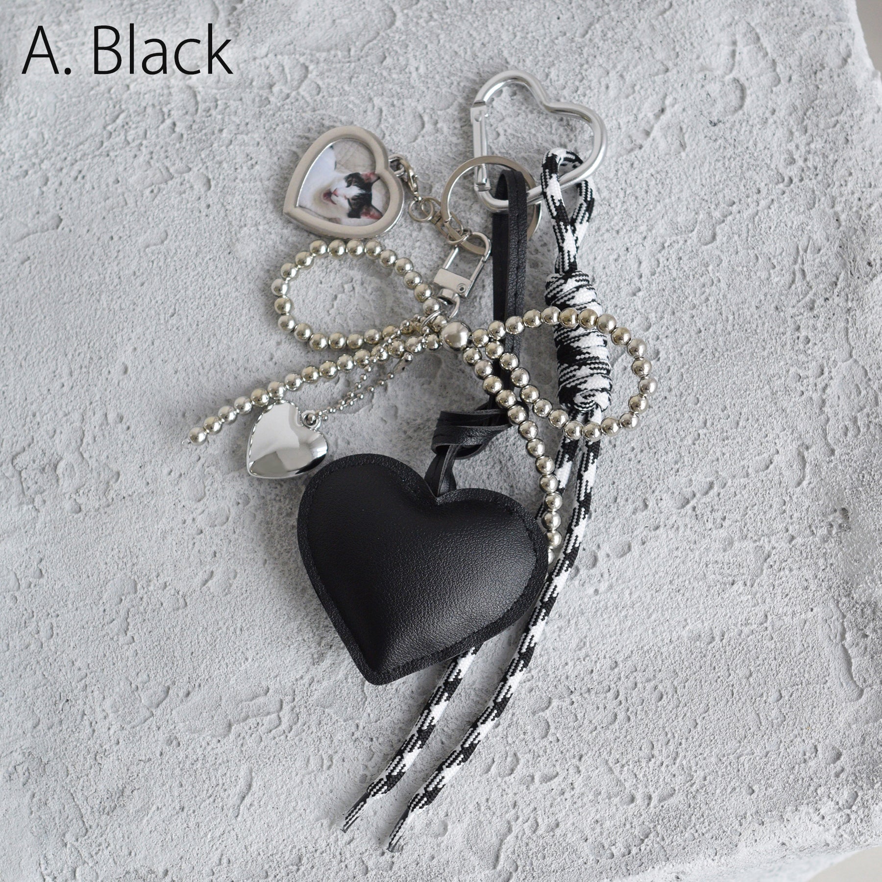 レザー調のぷっくりとしたハート&シルバーのハートモチーフ。