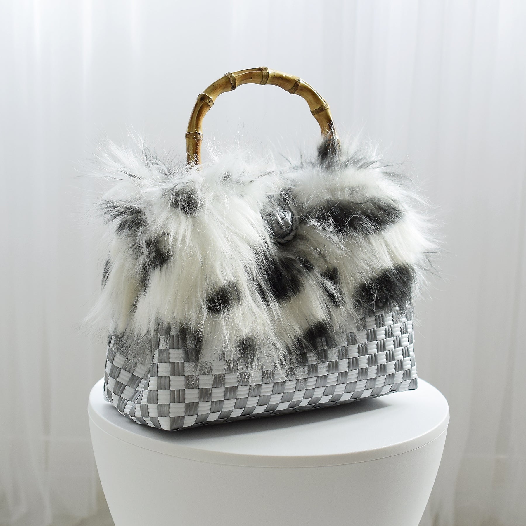 「プレミアム」といわれる素材を使用したリサイクルカゴバッグ。