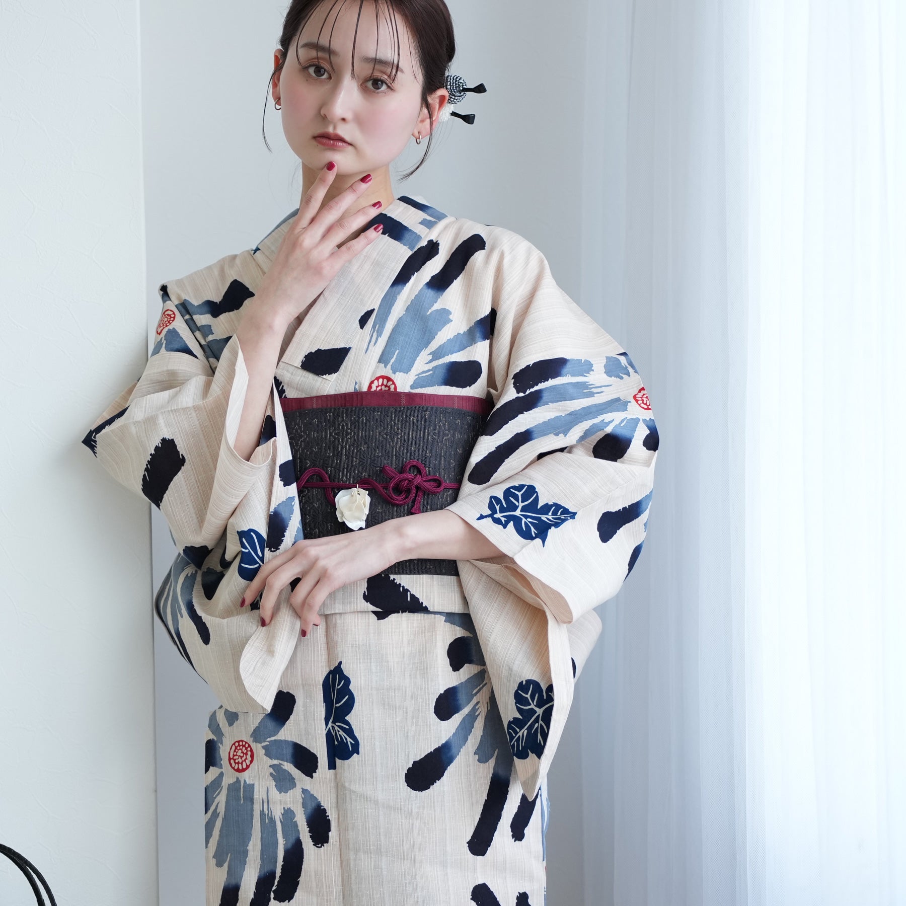 〇アクセサリー: 帯留めにシルバーやガラス素材を合わせると、より涼やかさが際立ちます。