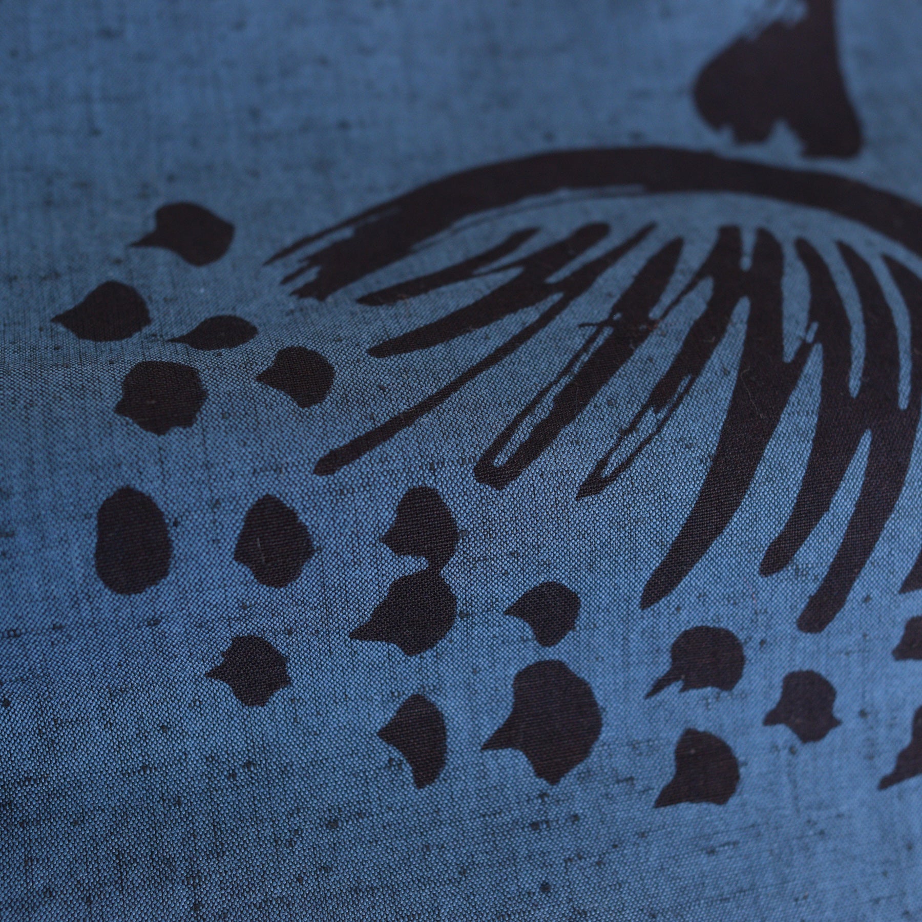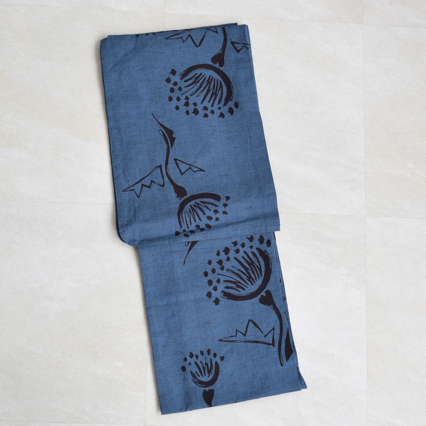落ち着いた青藍(せいらん)の地に、静かに浮かび上がる紺の花々。大人の品格と伝統の技が響き合う、「utatane × 注染工房」の特選シリーズです。