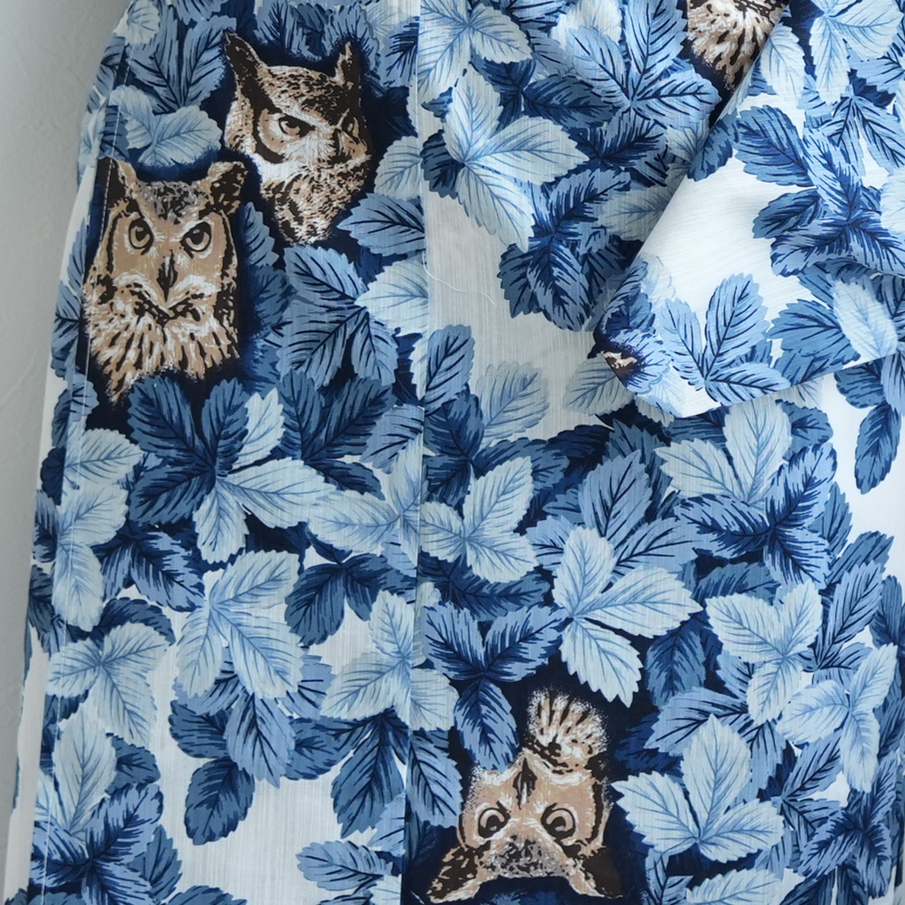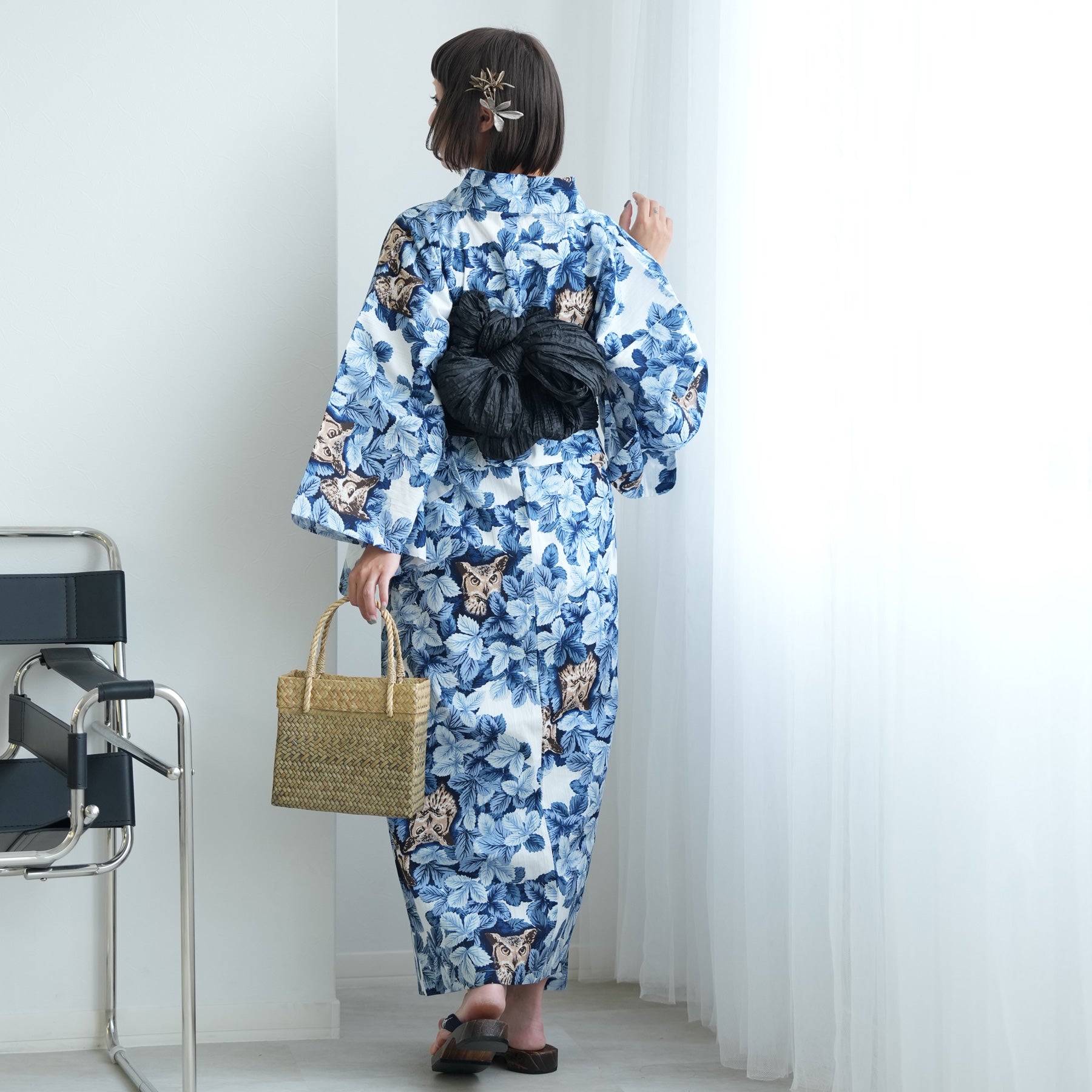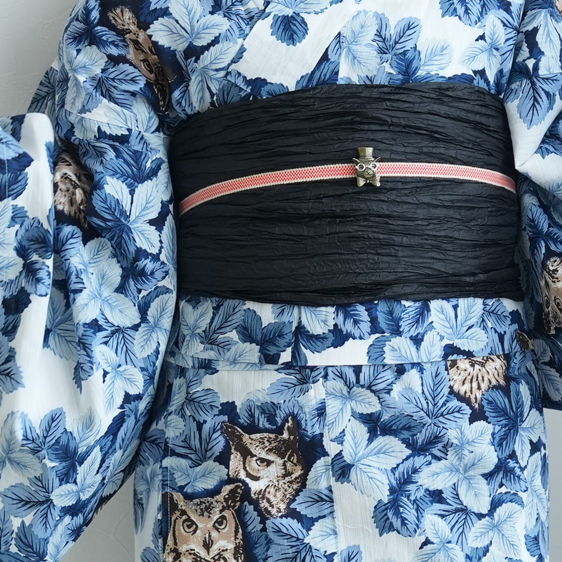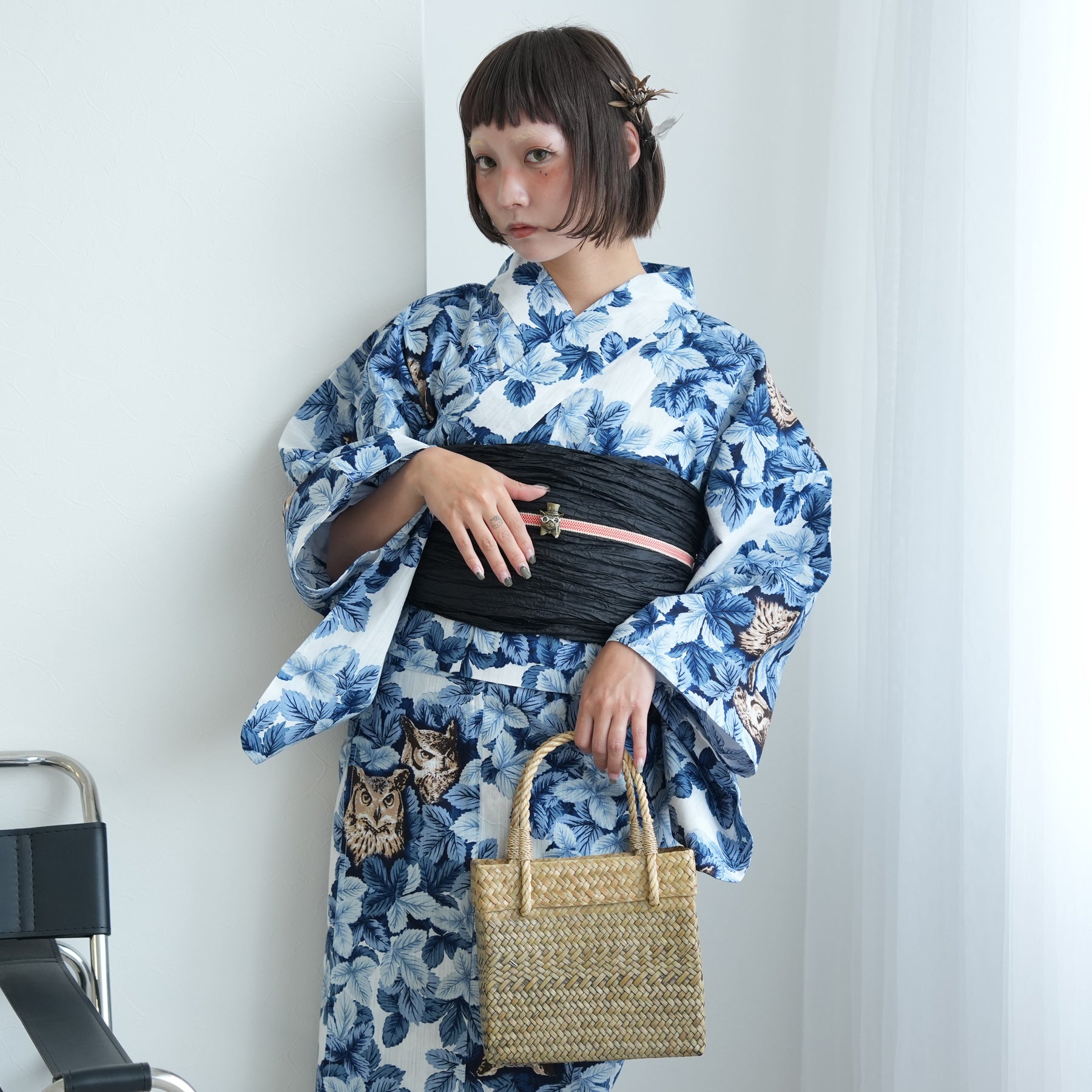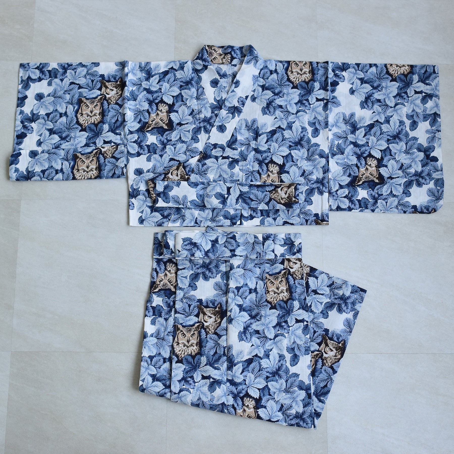【セパレート高級変わり織 二部式浴衣3点セット ( ゆかた上下・帯・下駄 ) 梟の森 宵】フリーサイズ 国産生地 国内染色 ニコアンティーク (5016282611)