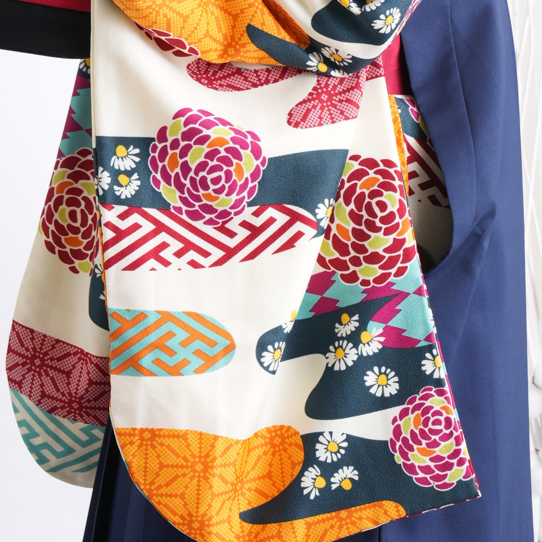 【リサイクル着物】二尺袖着物 単品  販売品 中古 USED 袴用 短丈 菊 雲取  卒業式 ひよこ商店 (5175633200)【中古販売】